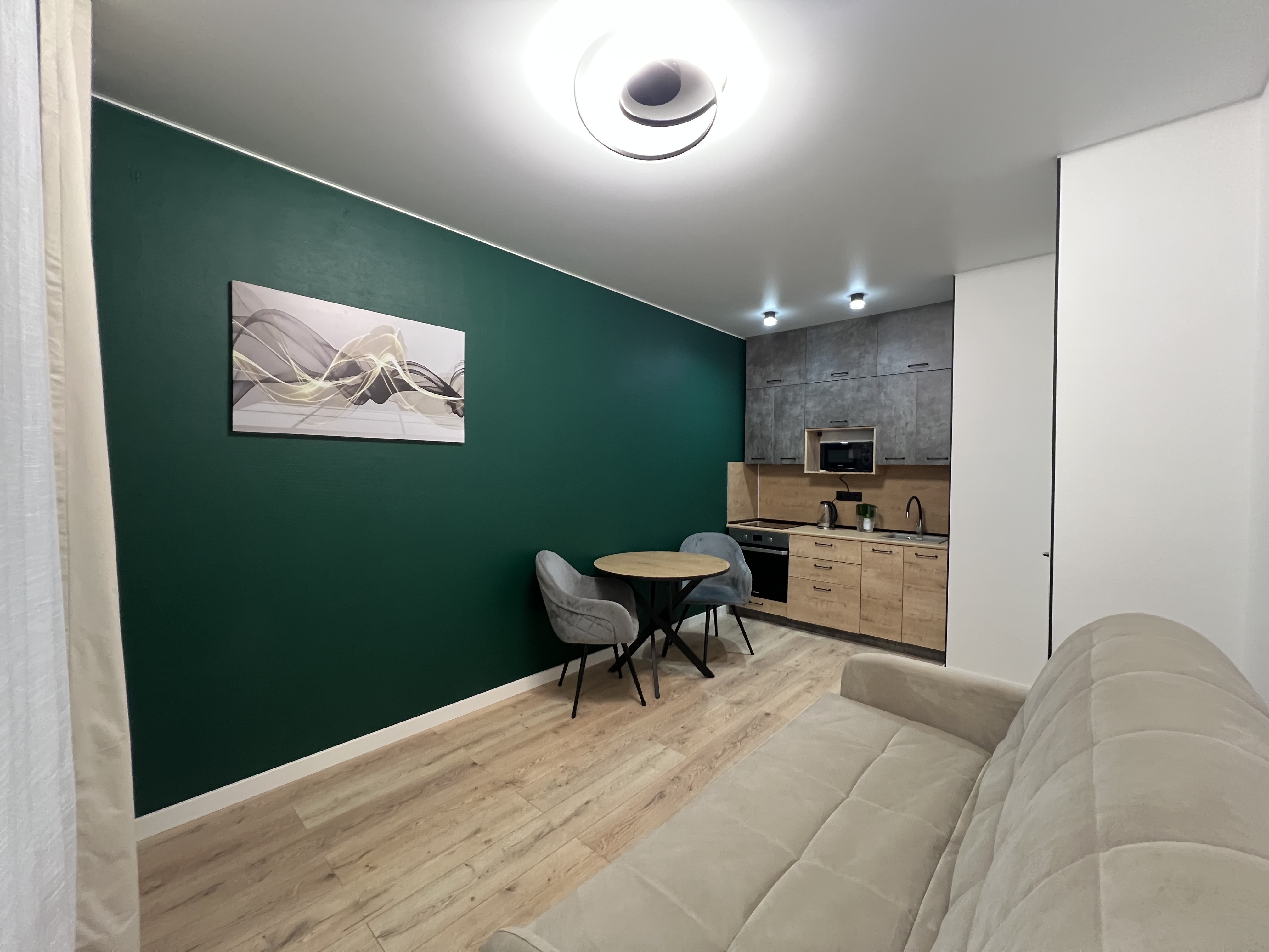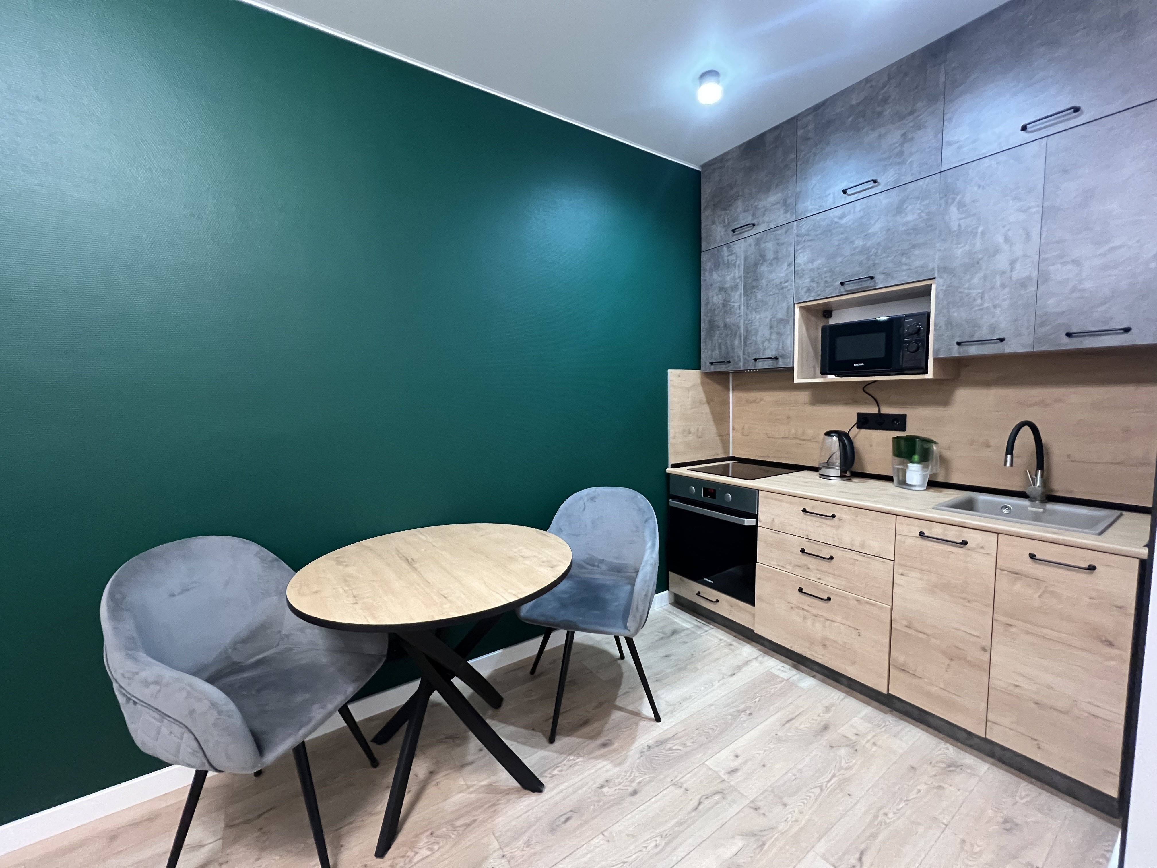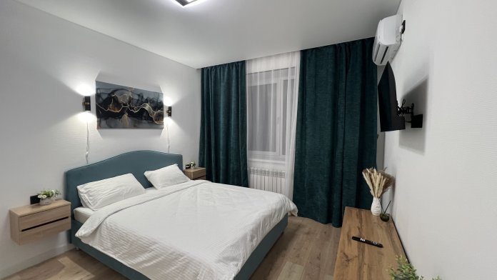 В квартире есть все необходимое: двухспальная кровать, диван, кухонный гарнитур, плита, микроволновка, чайник, стиральная машина, телевизор, шкаф, обеденная зона, гладильные принадлежности, Wi-Fi. Предоставляются туалетно-косметические принадлежности.