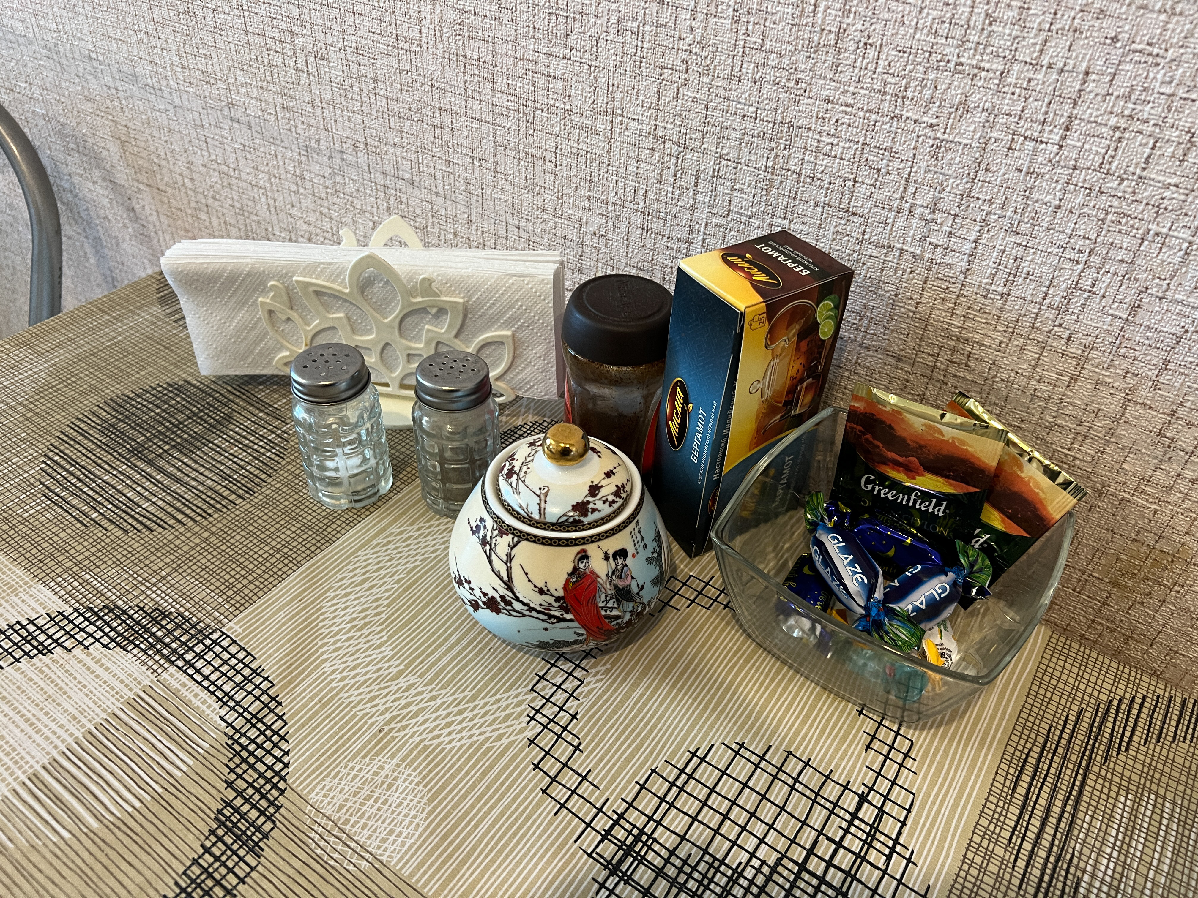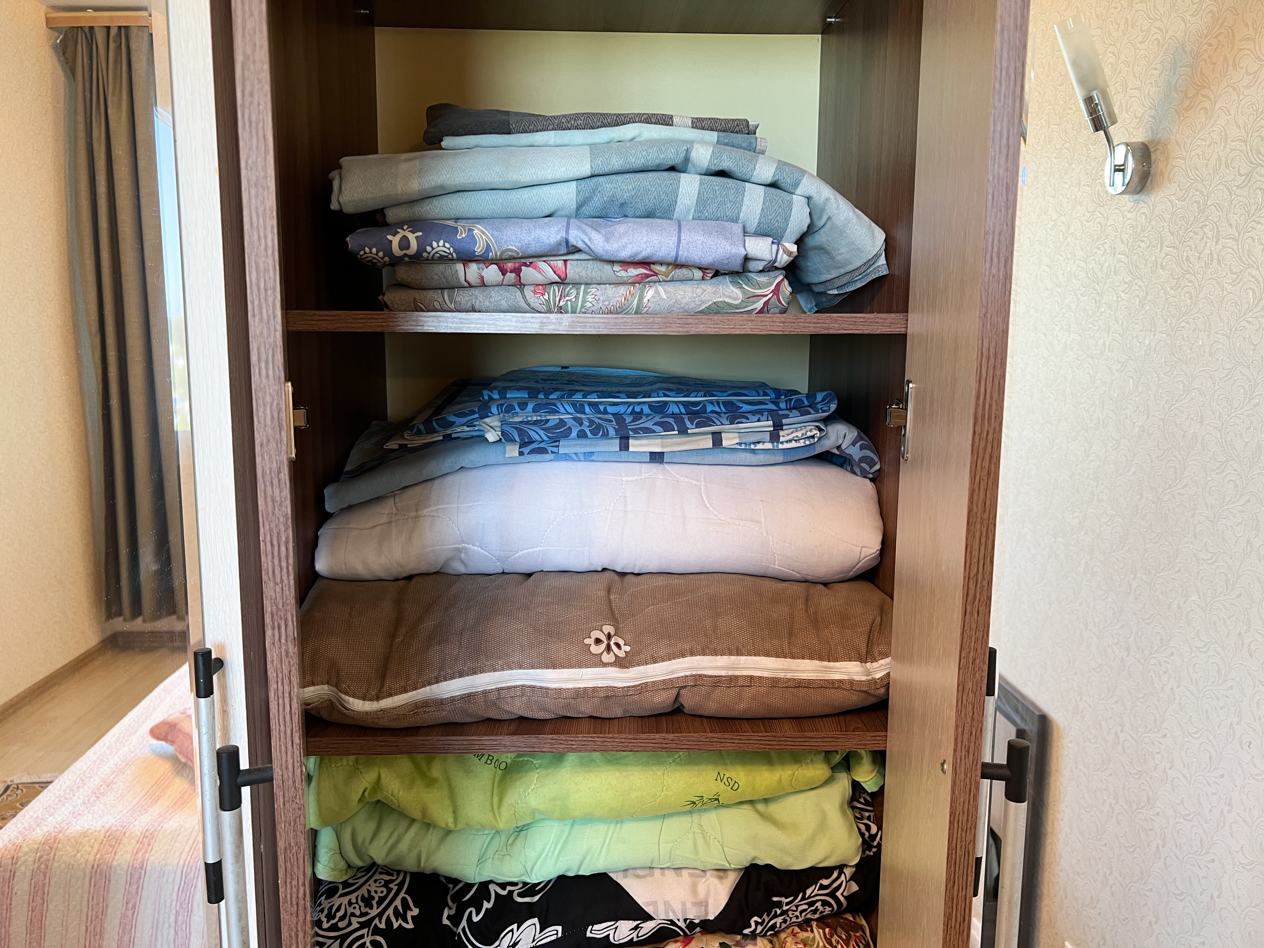 В квартире 2 комплекта постельного белья, дополнительный комплект - 500 руб.