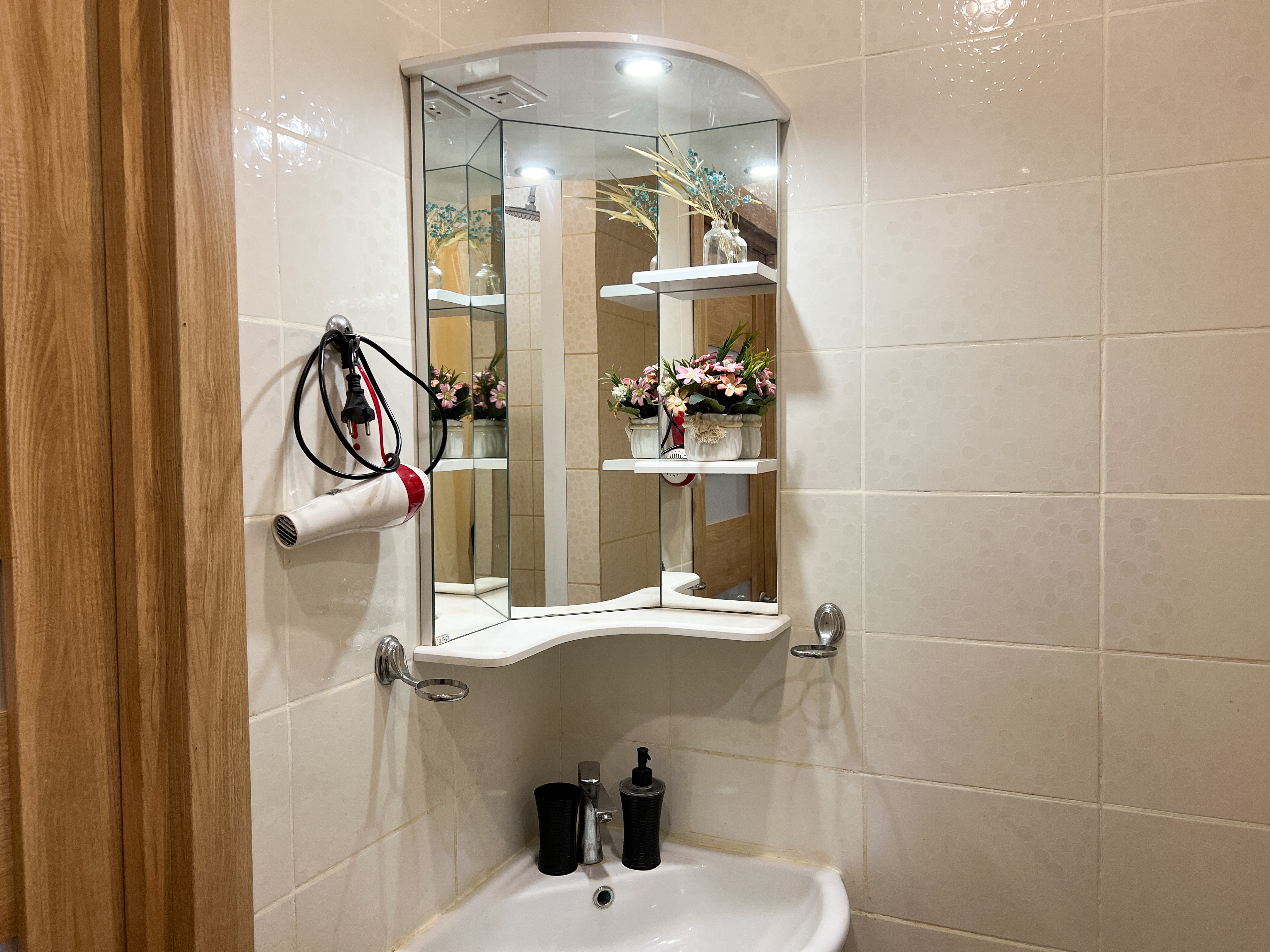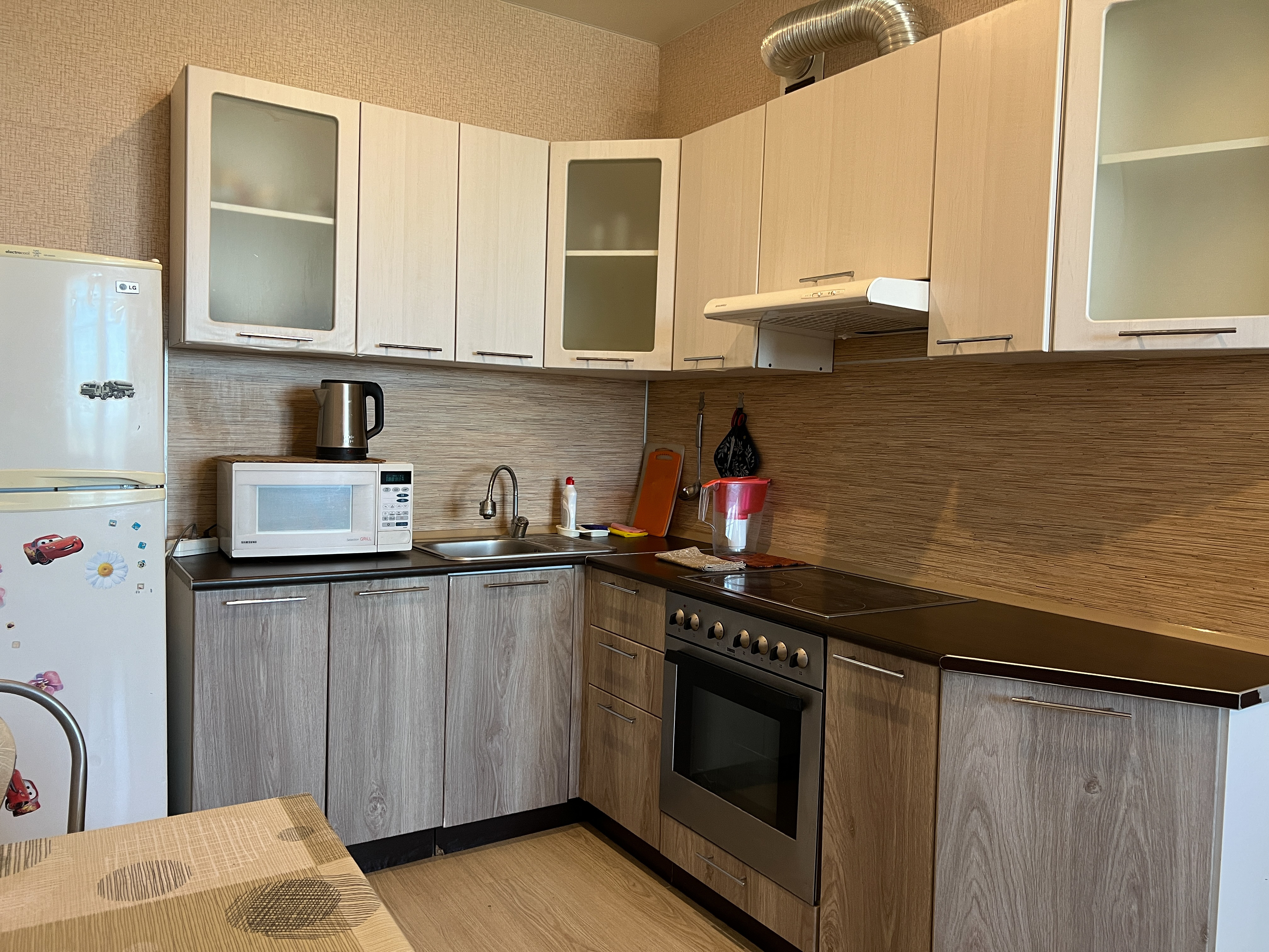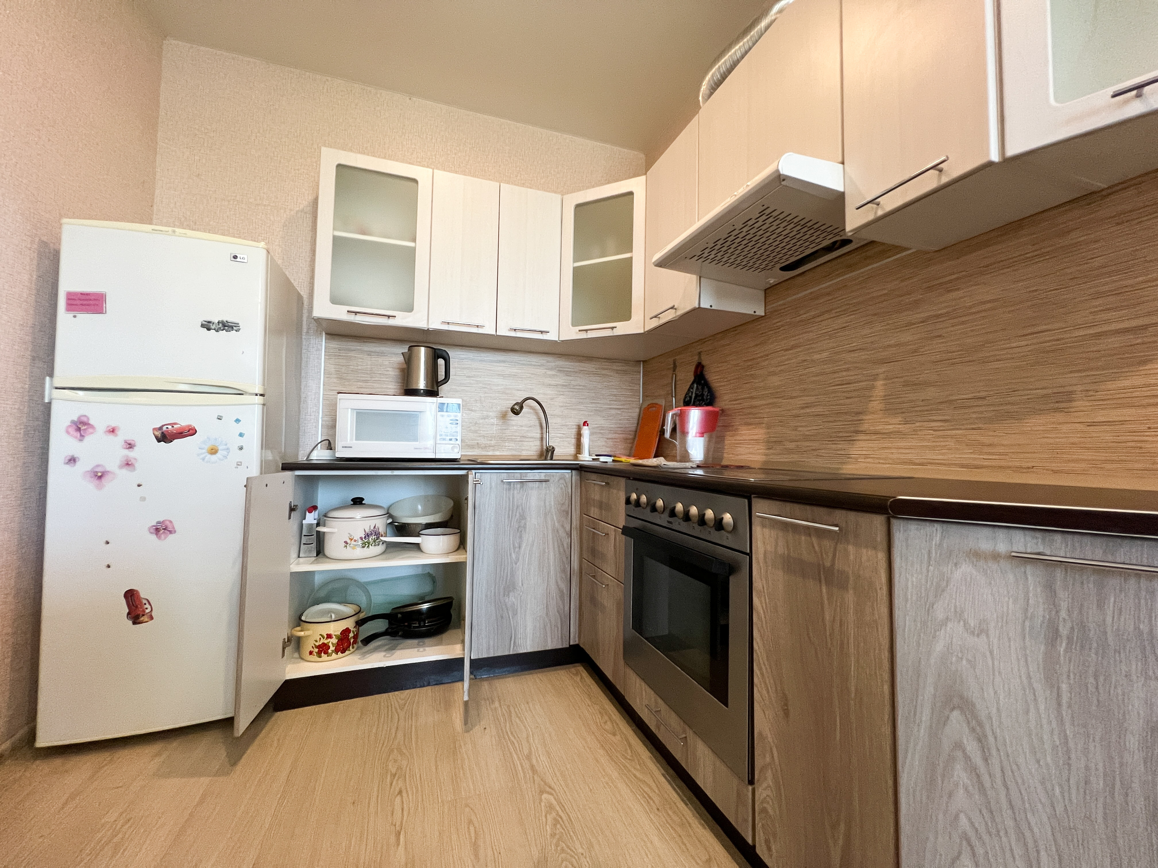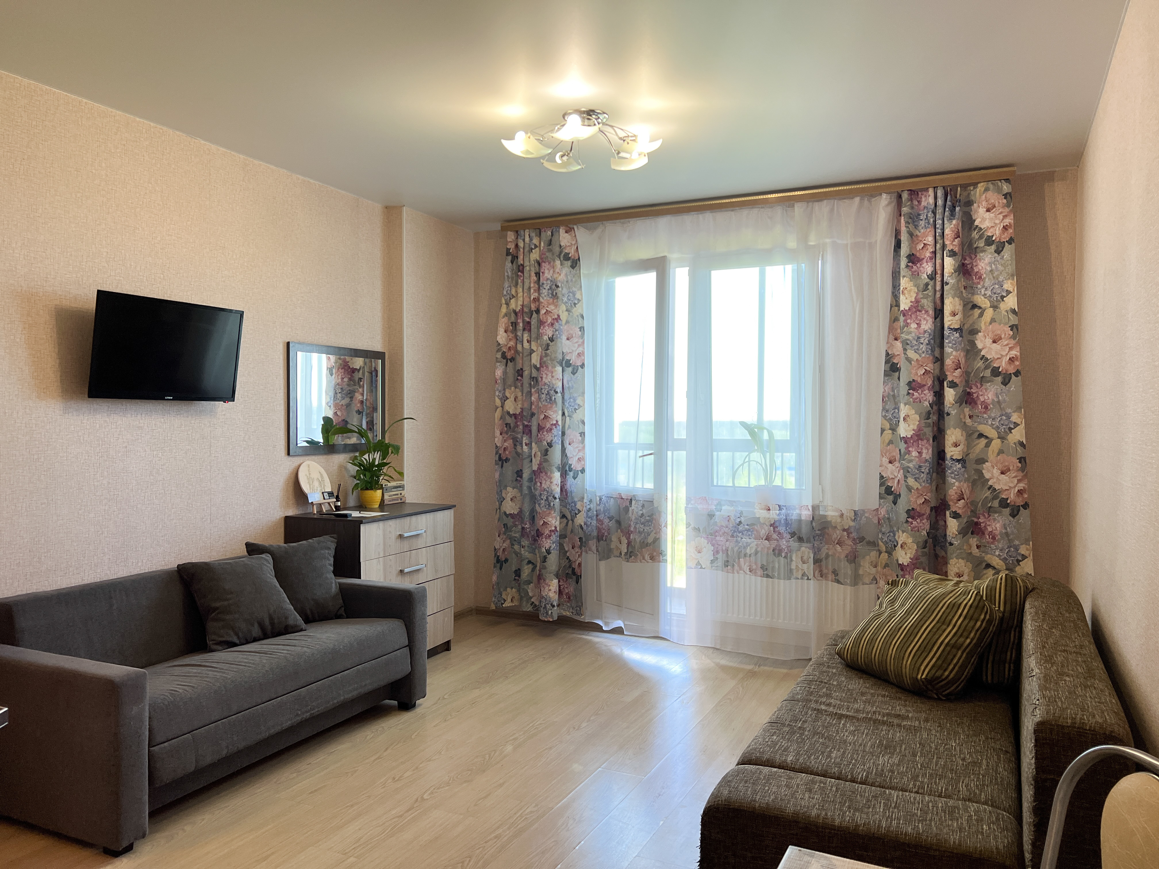К услугам гостей спальня и гостиная совмещенная с кухней. В квартире 3 раздельных спальных места (двуспальная кровать и 2 дивана-кровати). Кухня полностью укомплектована для длительного проживания 6ти человек. Санузел совмещенный, имеются все принадлежности для стирки и глажки. Wi-Fi и и кабельное телевидение. С балкона открывается отличный вид.