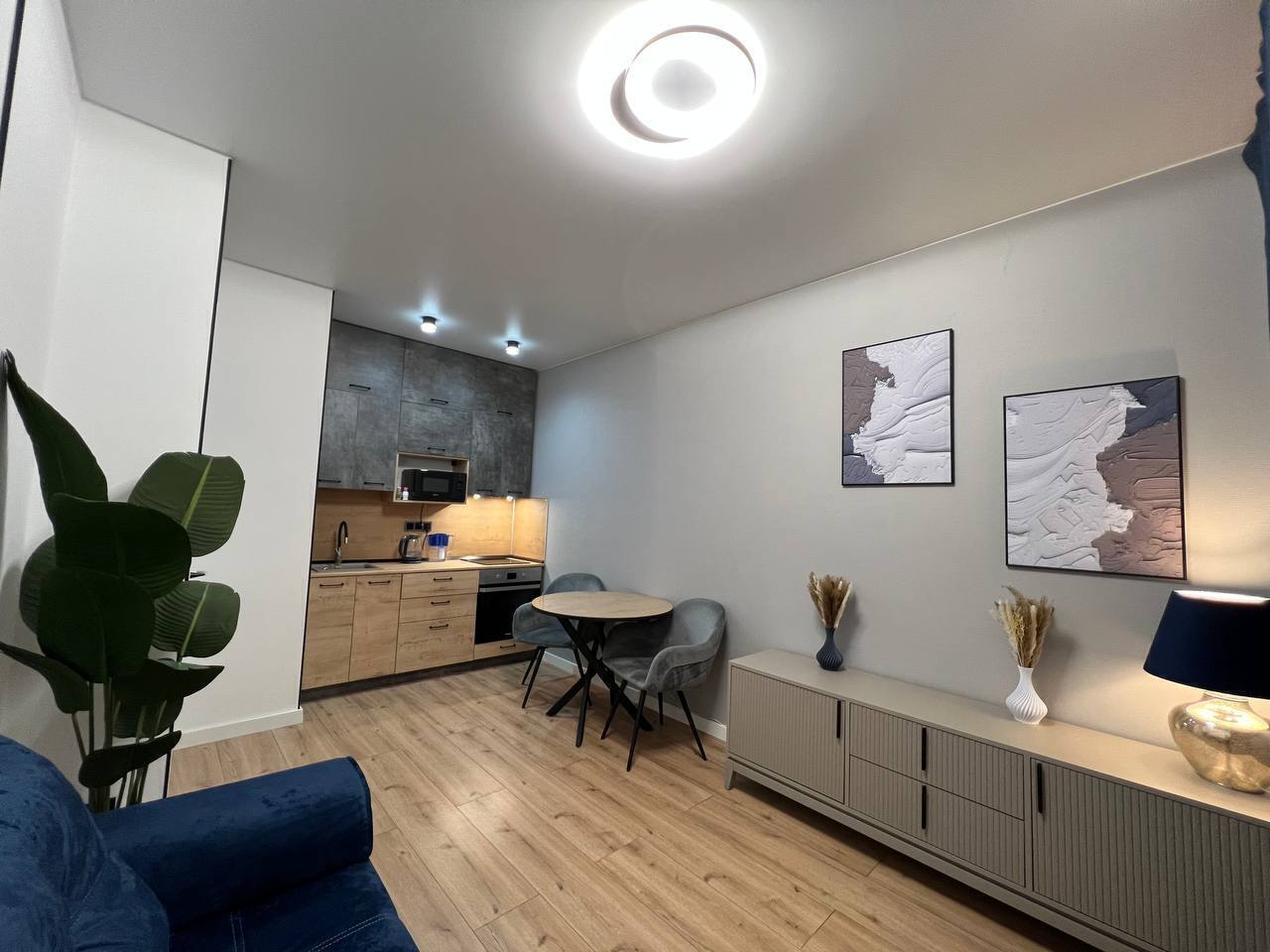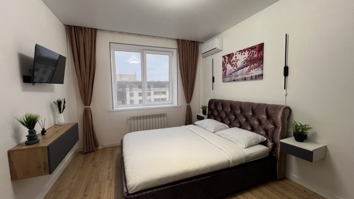 В квартире есть все необходимое: двухспальная кровать, диван, кухонный гарнитур, плита, микроволновка, чайник, стиральная машина, телевизор, шкаф, обеденная зона, гладильные принадлежности, Wi-Fi. Предоставляются туалетно-косметические принадлежности.