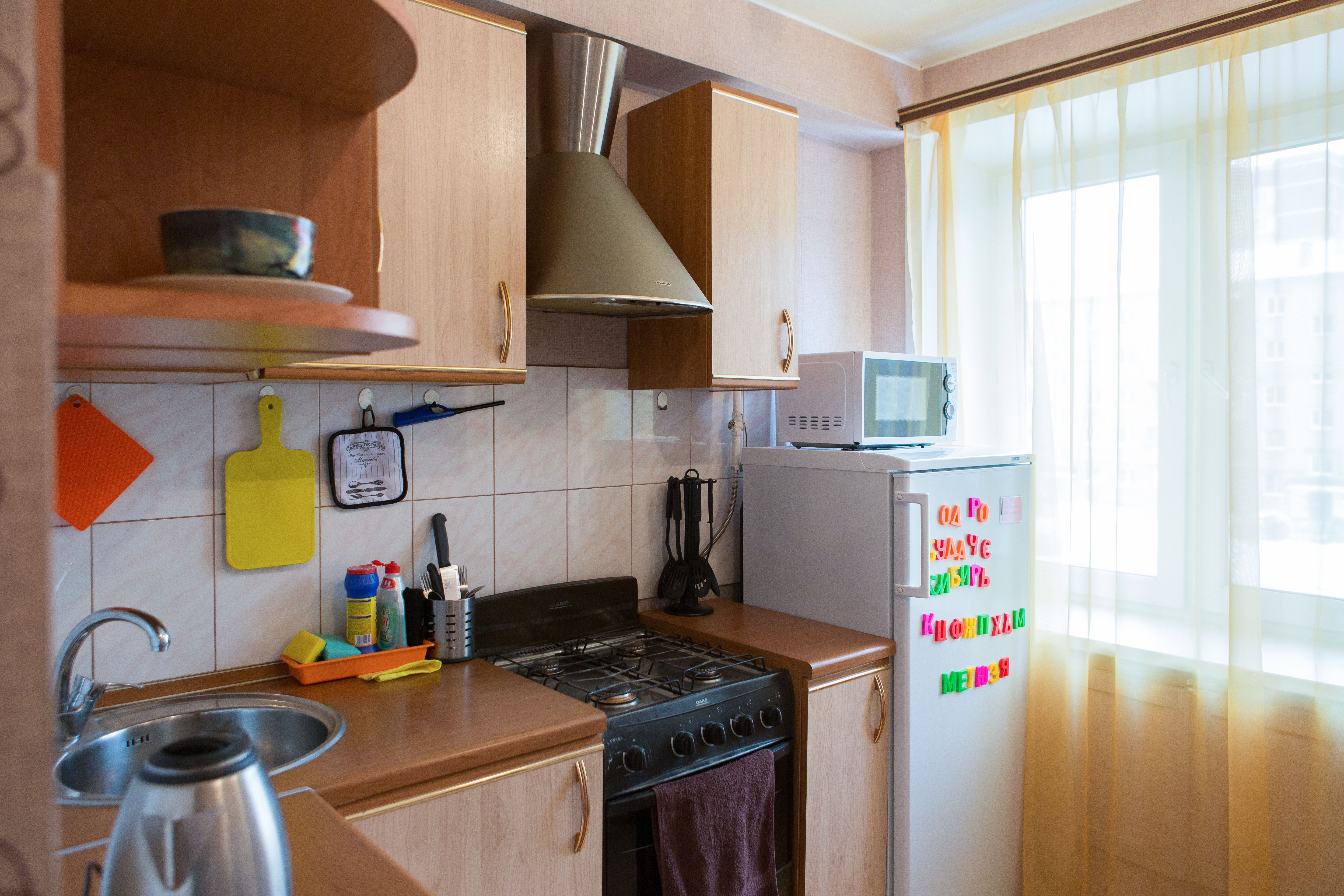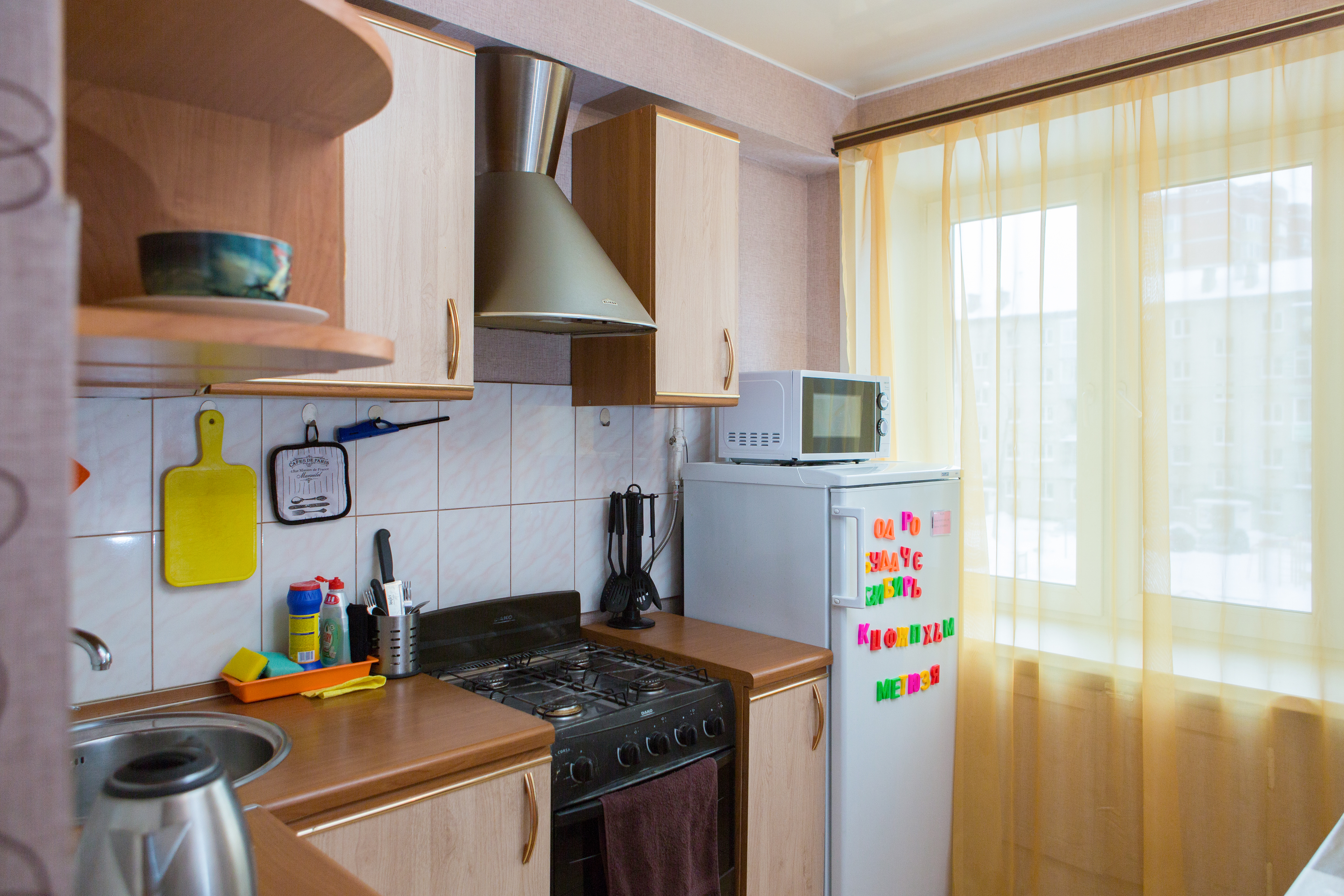 Квартира полностью укомплектована всем необходимым для проживания 4-х человек. В спальне расположены двуспальные диван и кровать, отдельная кухня оснащена всем необходимым для приготовления и приёма пищи. Санузел совмещенный, есть всё необходимое для стирки и глажки. Работает Wi-FI и TV. В квартире есть балкон.