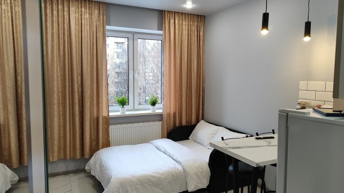 Сдается уютная квартира-студия в Мытищи. Расстояние до железнодорожного вокзала составляет 8 км.