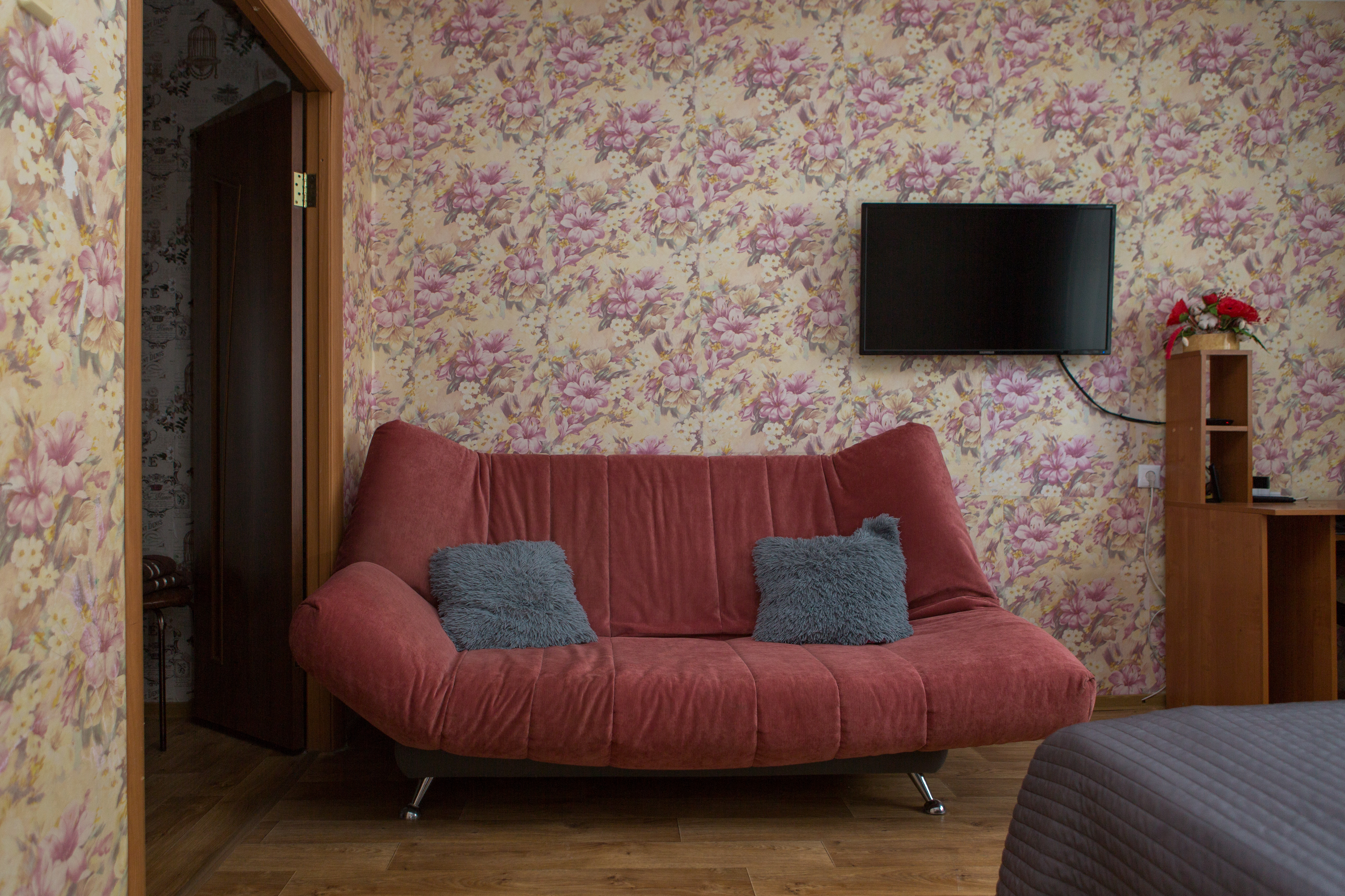 В квартире есть всё необходимое для проживания 8 человек, в том числе полностью укомплектованная кухня, раздельный санузел, принадлежности для стирки и глажки. В каждой спальне кровать и диван (2+2). Есть кабельное телевидение и Wi-Fi. Имеется балкон.