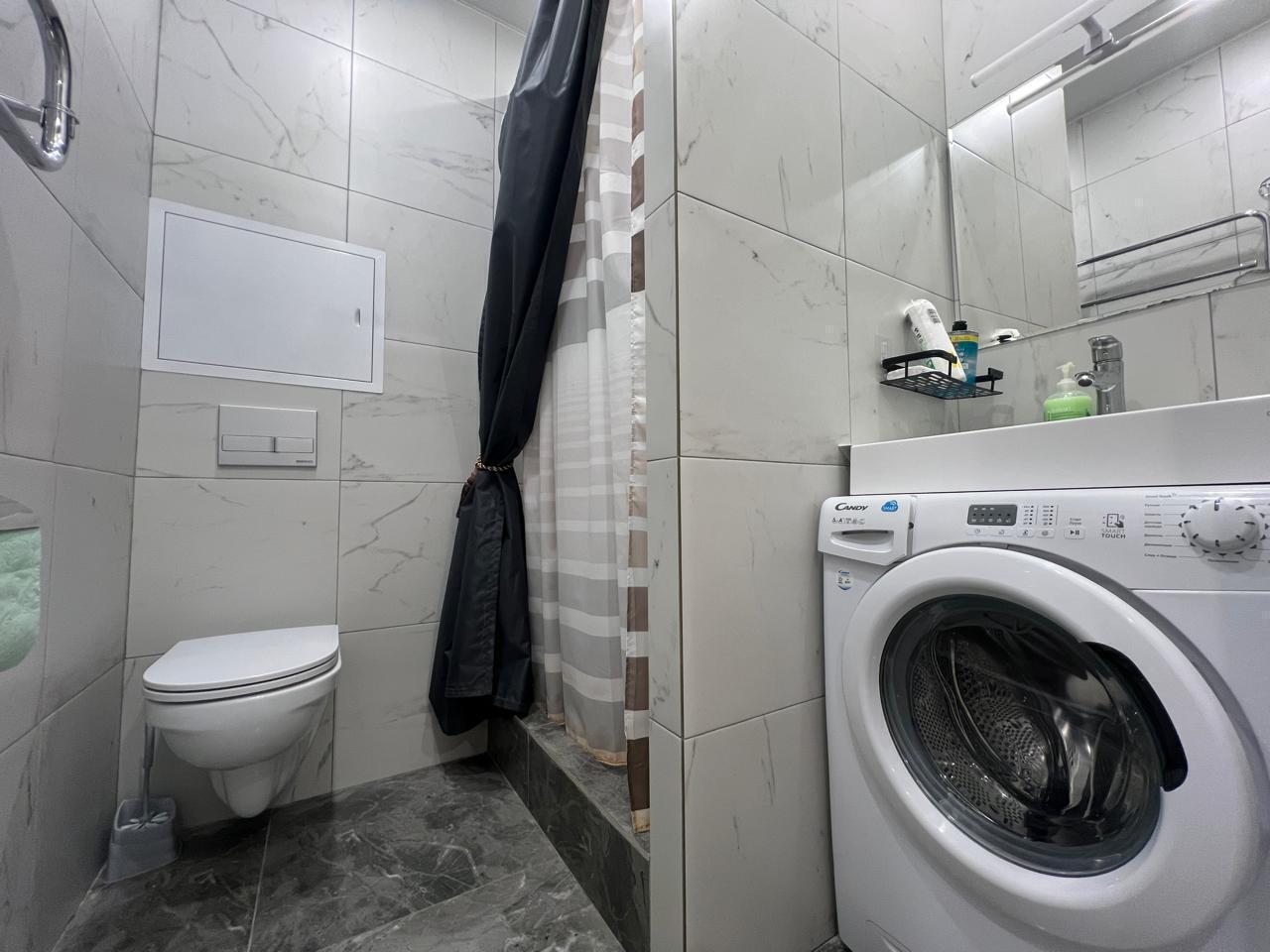 На кухне электрочайник, микроволновка, холодильник, духовой шкаф, электроплита. Приятное освещение. Есть телевизор. Кровать, матрас удобный. Двуспальный диван.