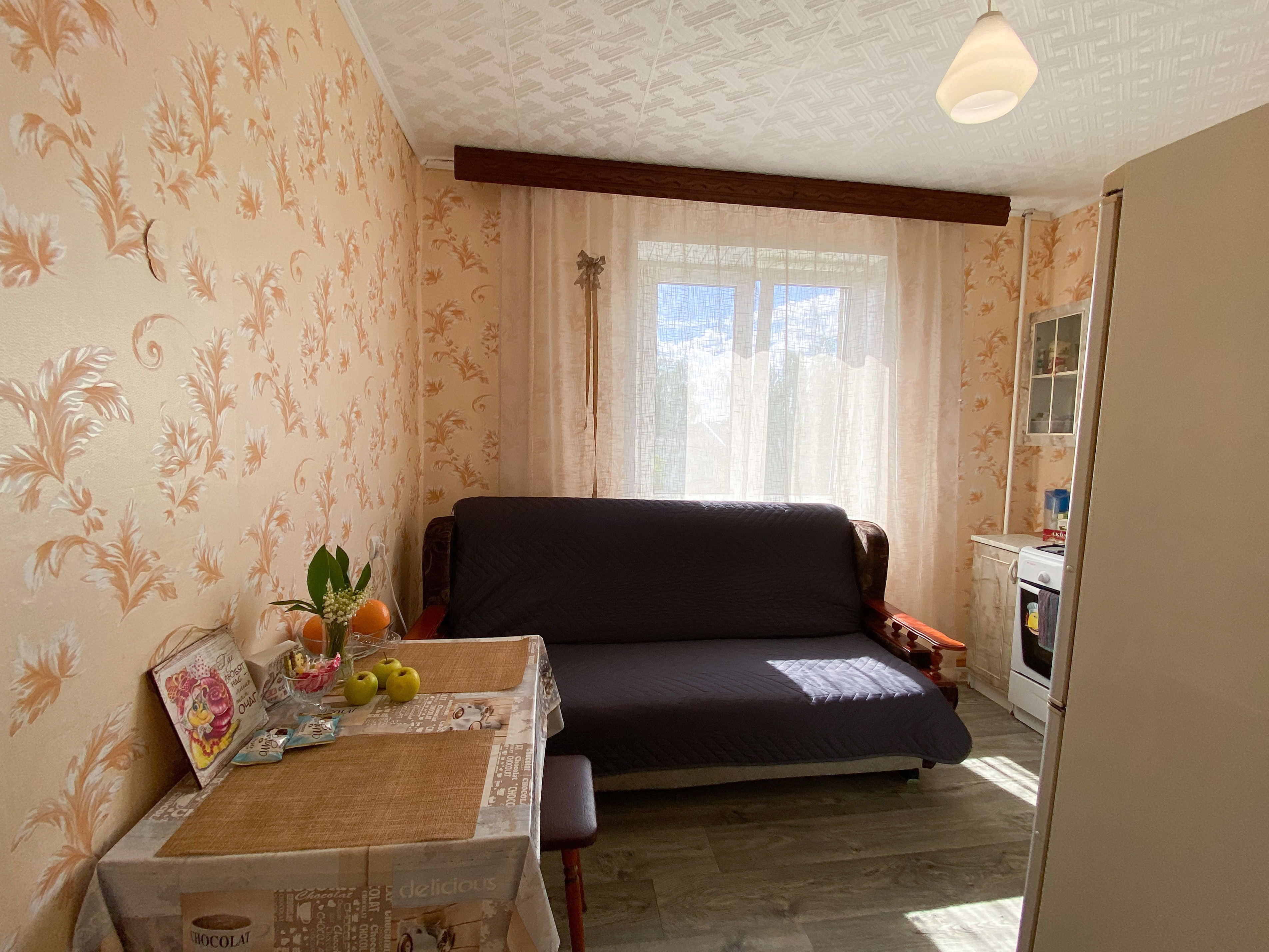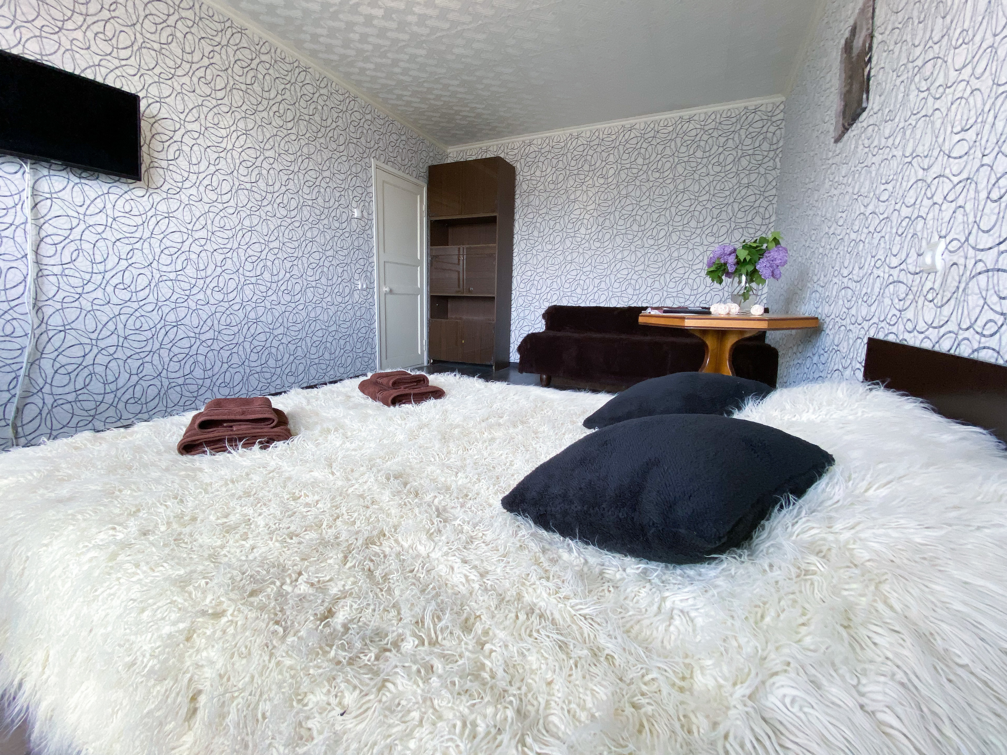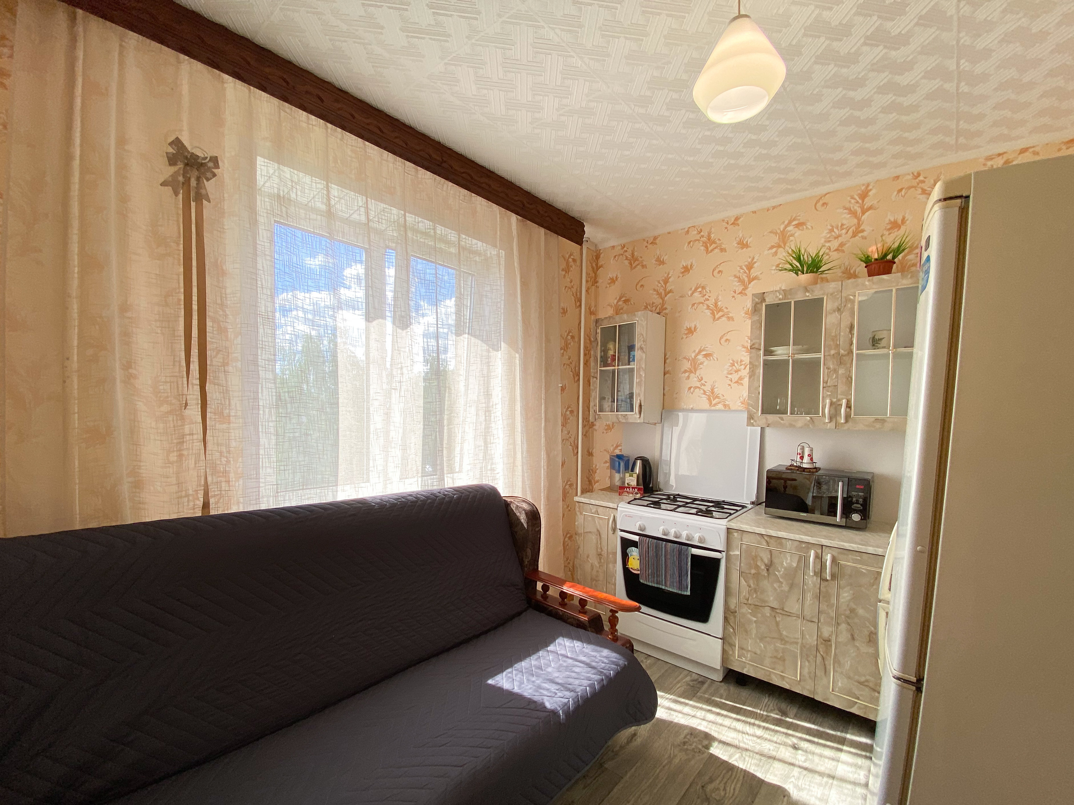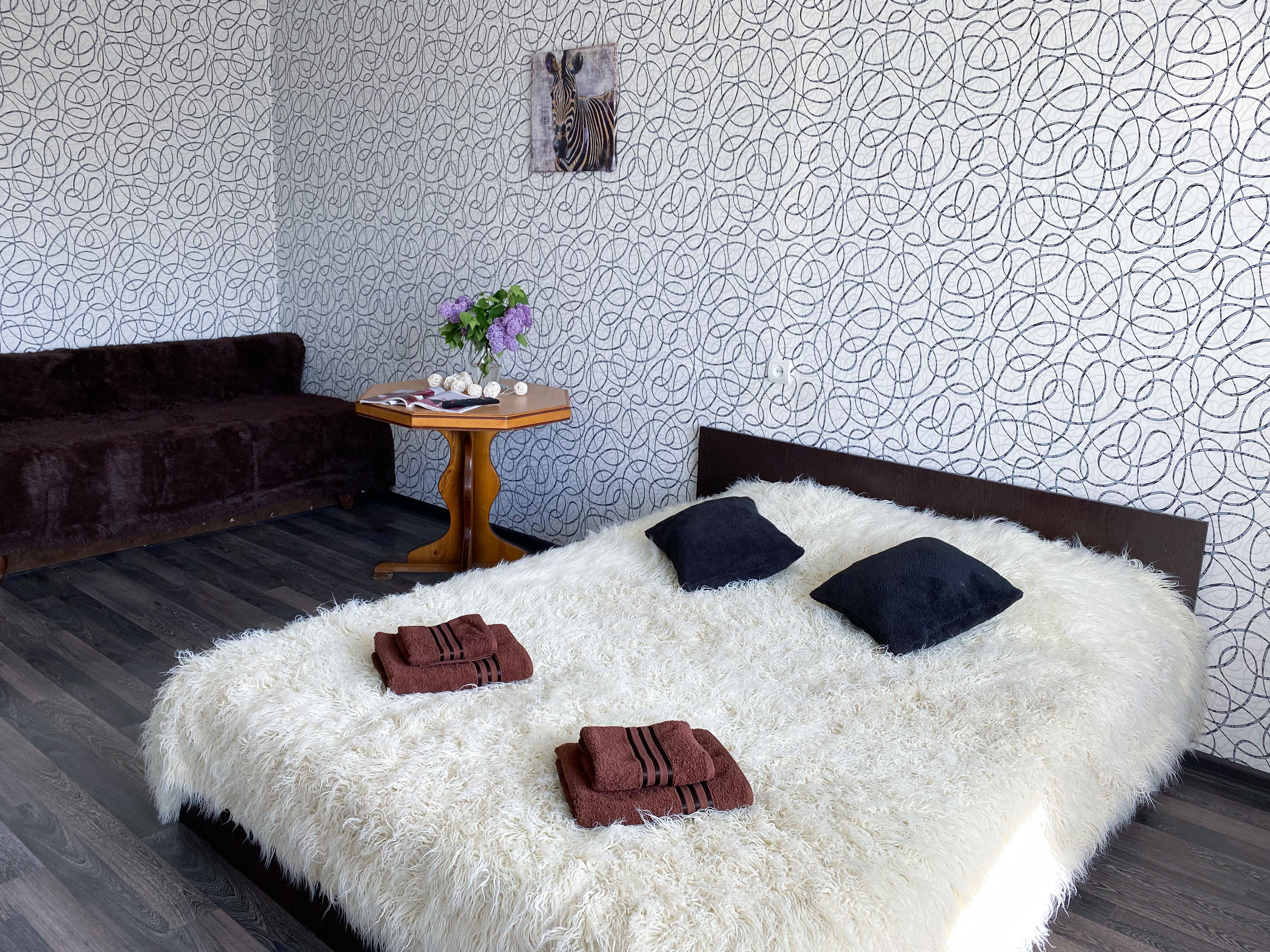 Квартира рассчитана на проживание 5 человек. В спальне двуспальные кровать и диван, на кухне отдельный диванчик. Совмещенный санузел укомплектован принадлежностями для душа, полотенцами, тапочками и феном. В квартире есть стиральная машинка, сушилка, гладильная доска и утюг. Кухня оснащена всем необходимым для приготовления пищи. К услугам гостей бесплатный Wi-Fi и TV. В квартире есть балкон.
