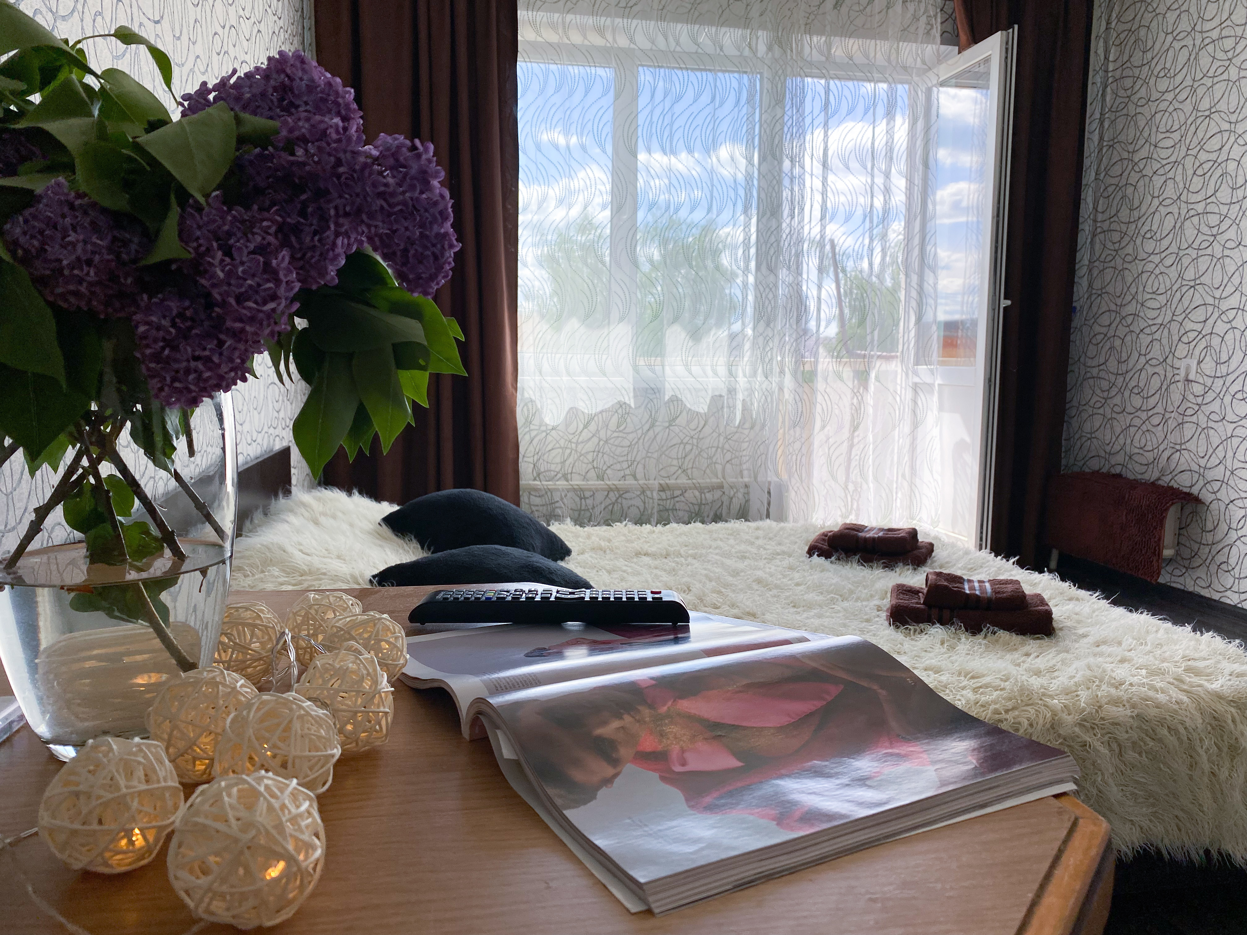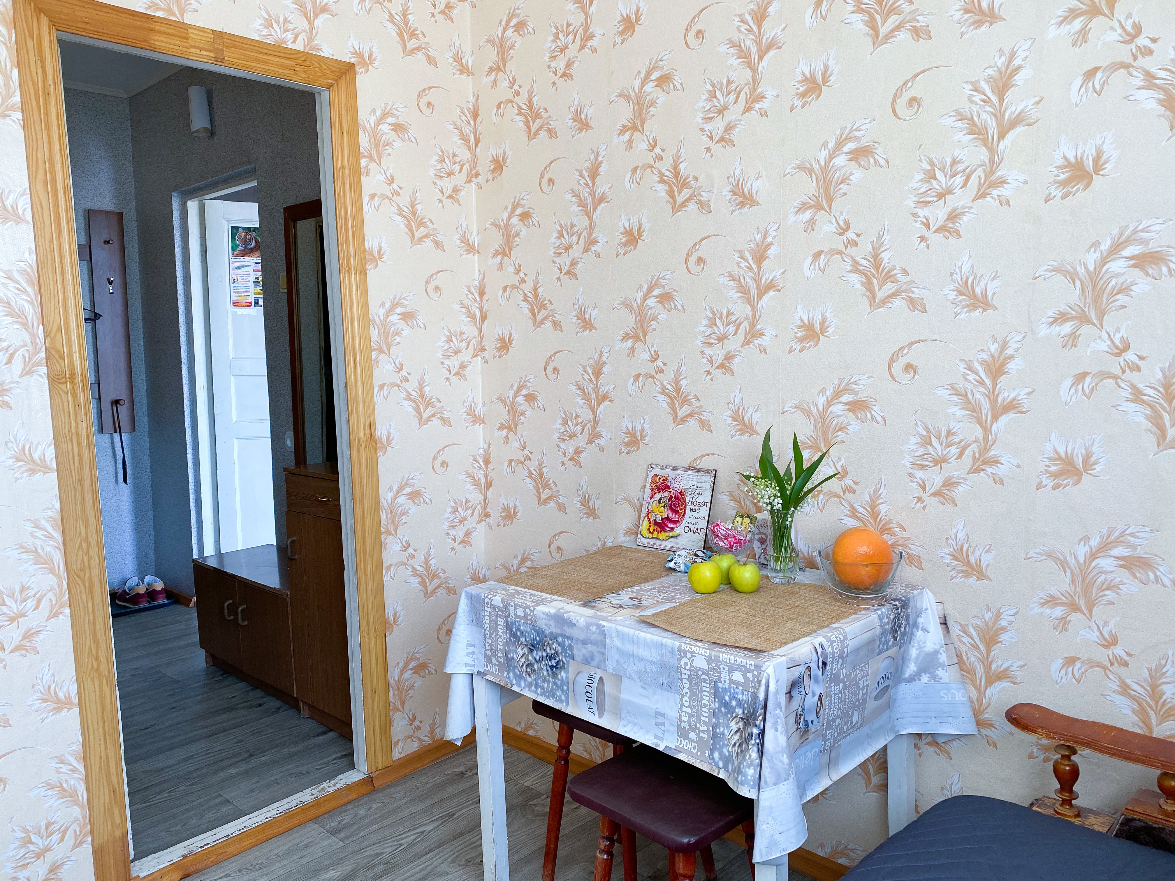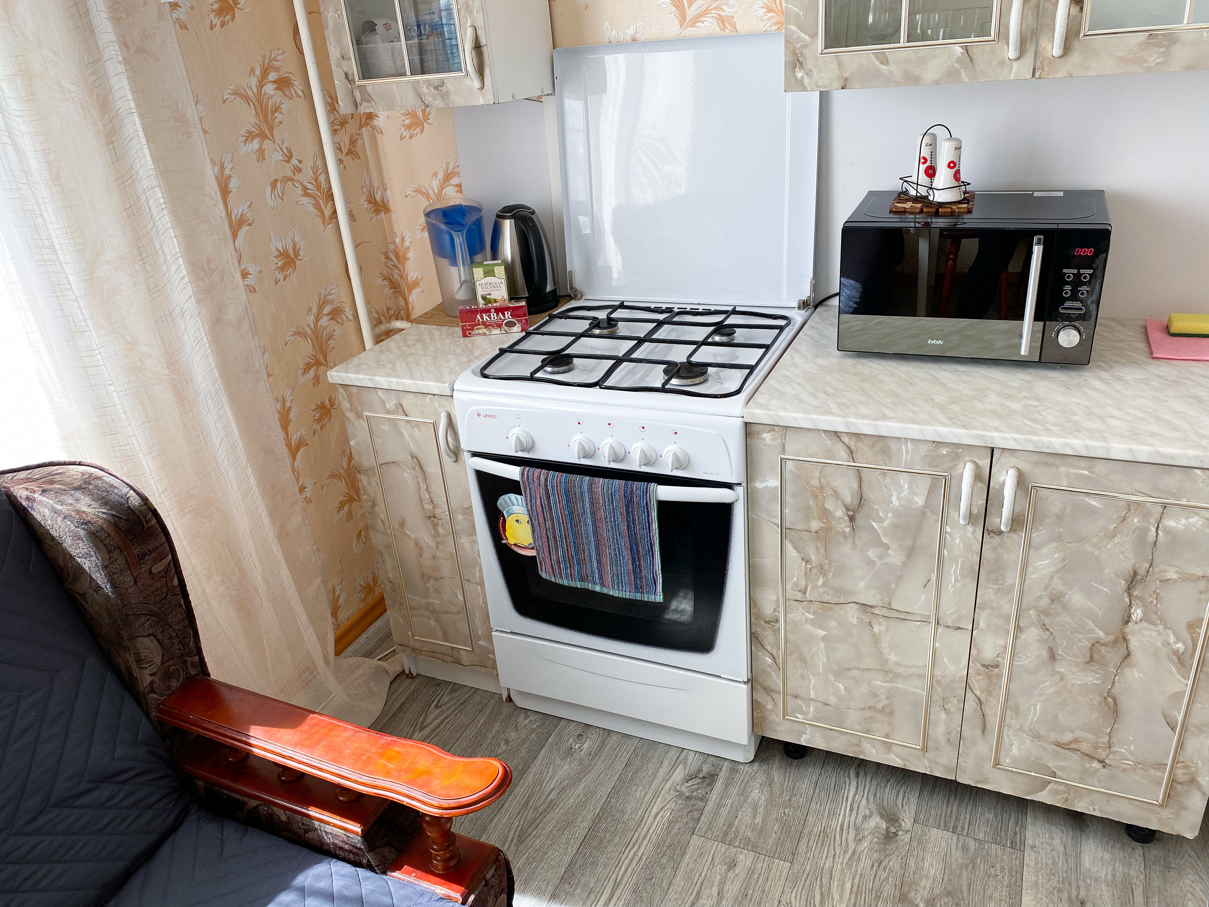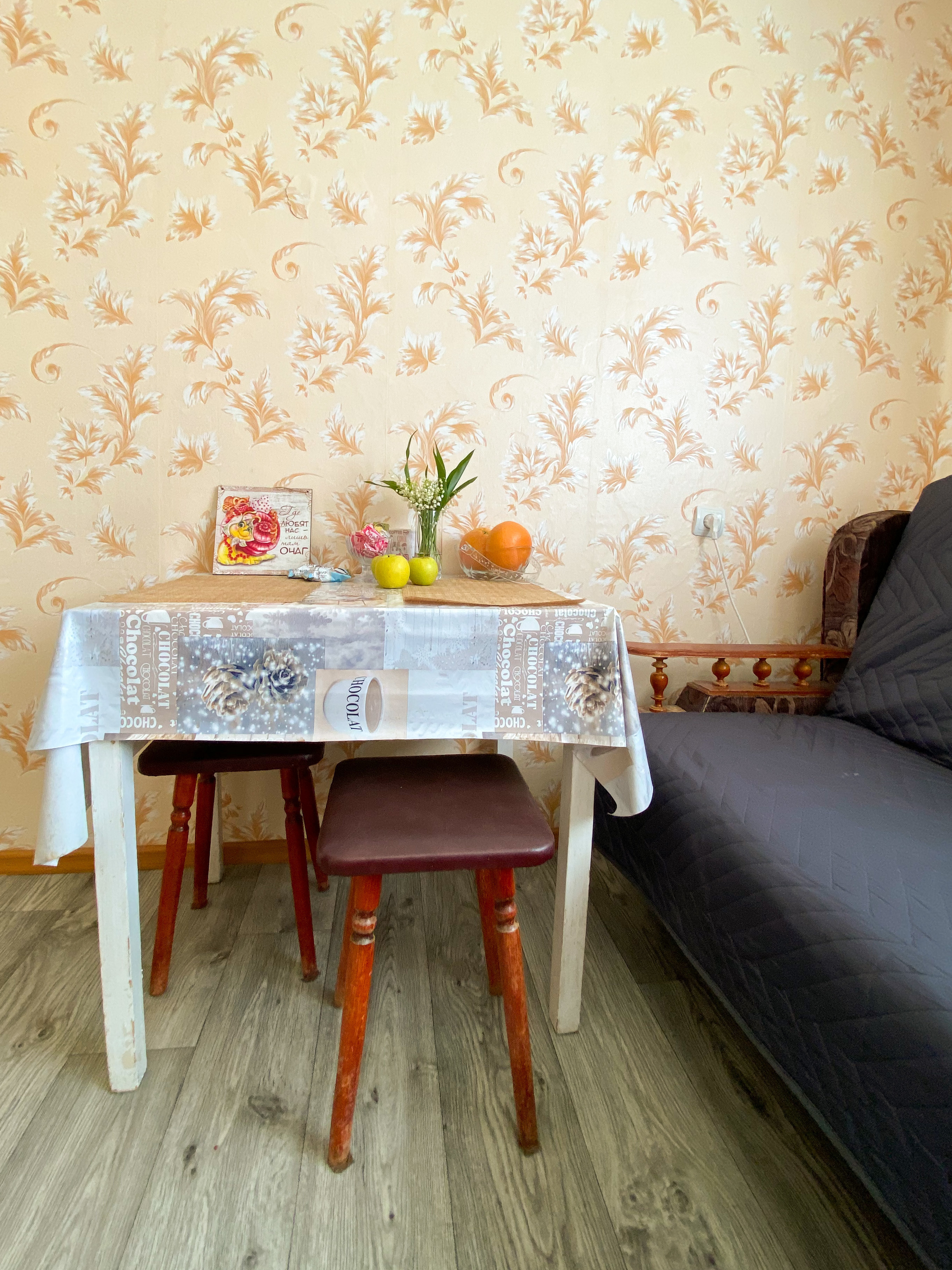 Квартира рассчитана на проживание 5 человек. В спальне двуспальные кровать и диван, на кухне отдельный диванчик. Совмещенный санузел укомплектован принадлежностями для душа, полотенцами, тапочками и феном. В квартире есть стиральная машинка, сушилка, гладильная доска и утюг. Кухня оснащена всем необходимым для приготовления пищи. К услугам гостей бесплатный Wi-Fi и TV. В квартире есть балкон.
