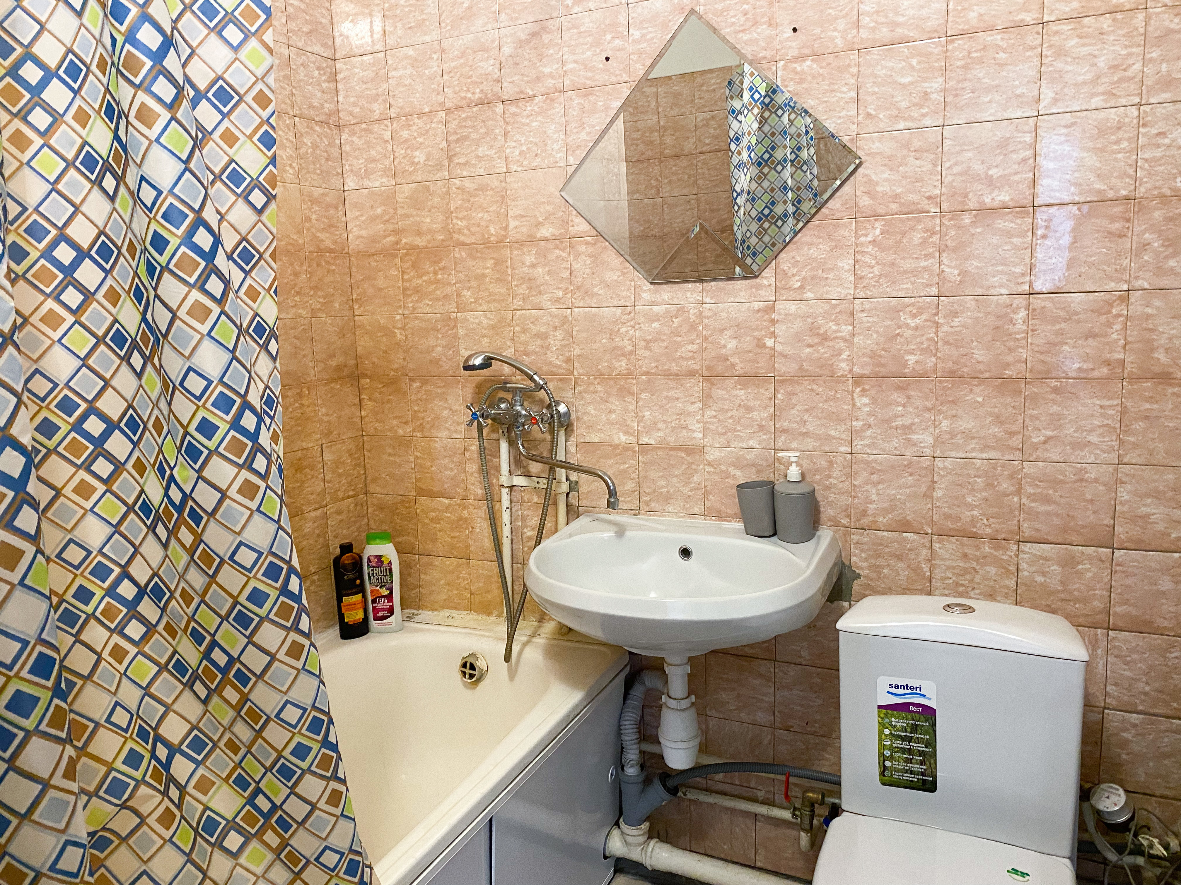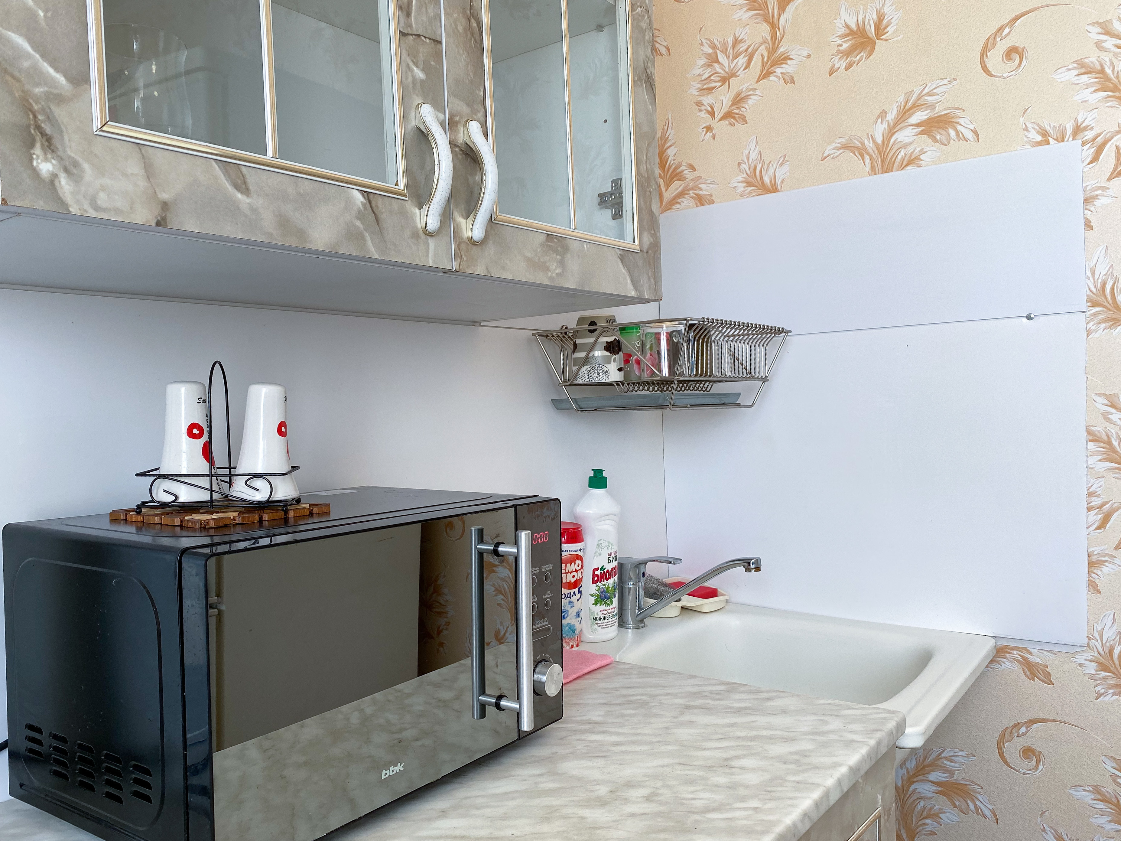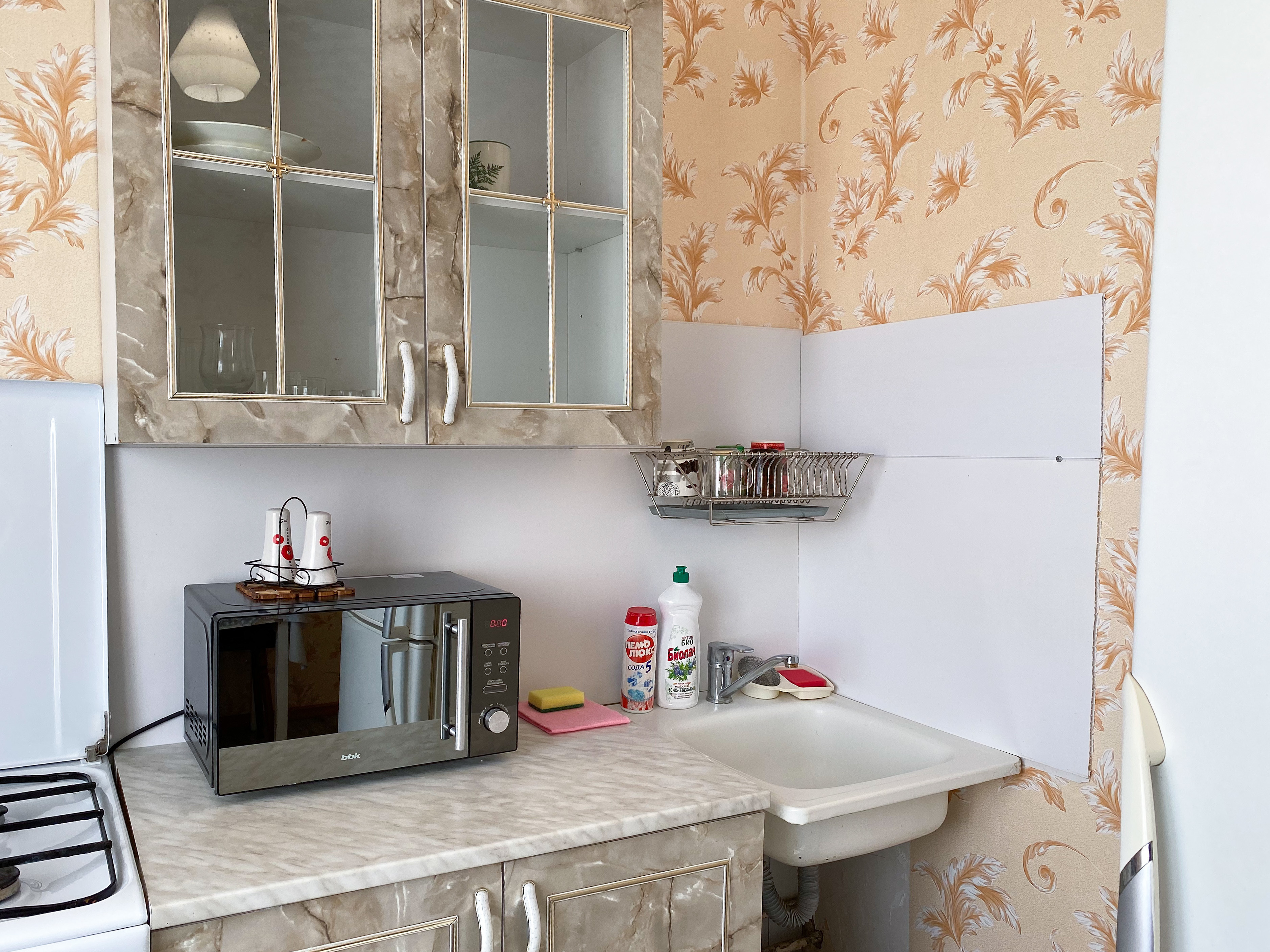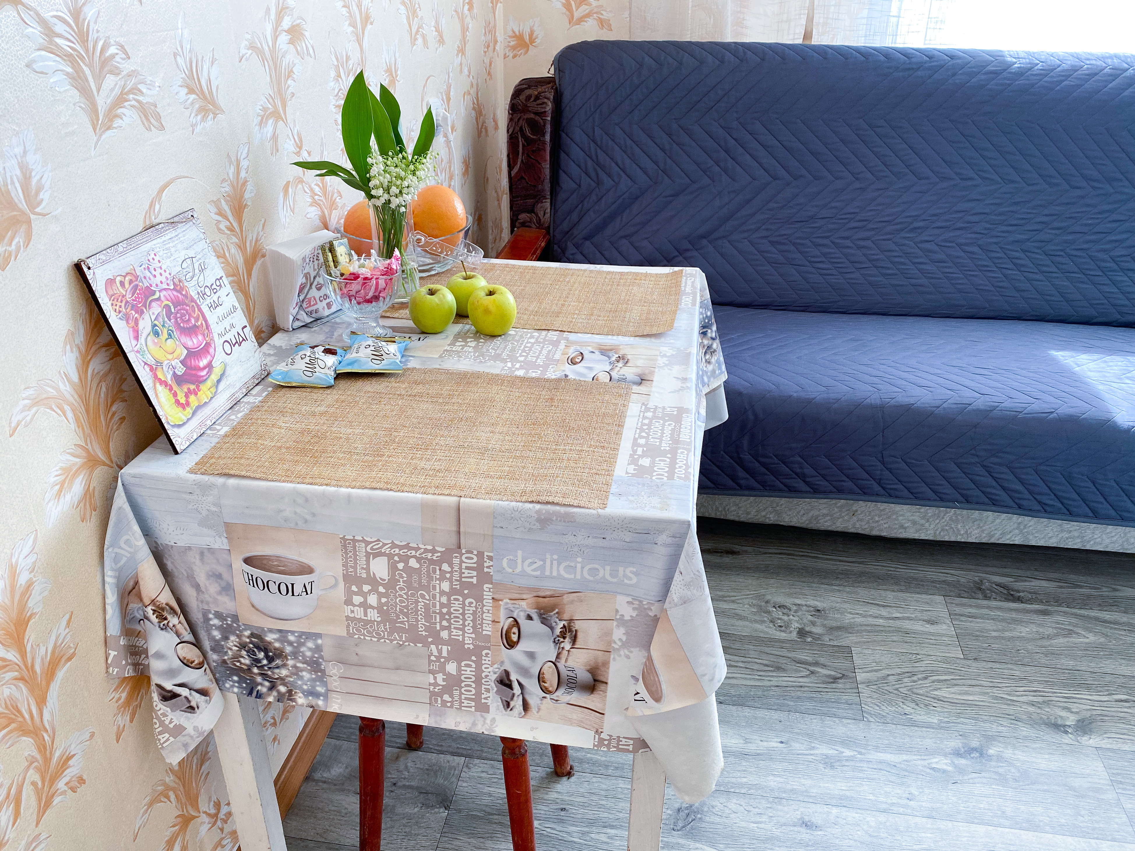Квартира рассчитана на проживание 5 человек. В спальне двуспальные кровать и диван, на кухне отдельный диванчик. Совмещенный санузел укомплектован принадлежностями для душа, полотенцами, тапочками и феном. В квартире есть стиральная машинка, сушилка, гладильная доска и утюг. Кухня оснащена всем необходимым для приготовления пищи. К услугам гостей бесплатный Wi-Fi и TV. В квартире есть балкон.