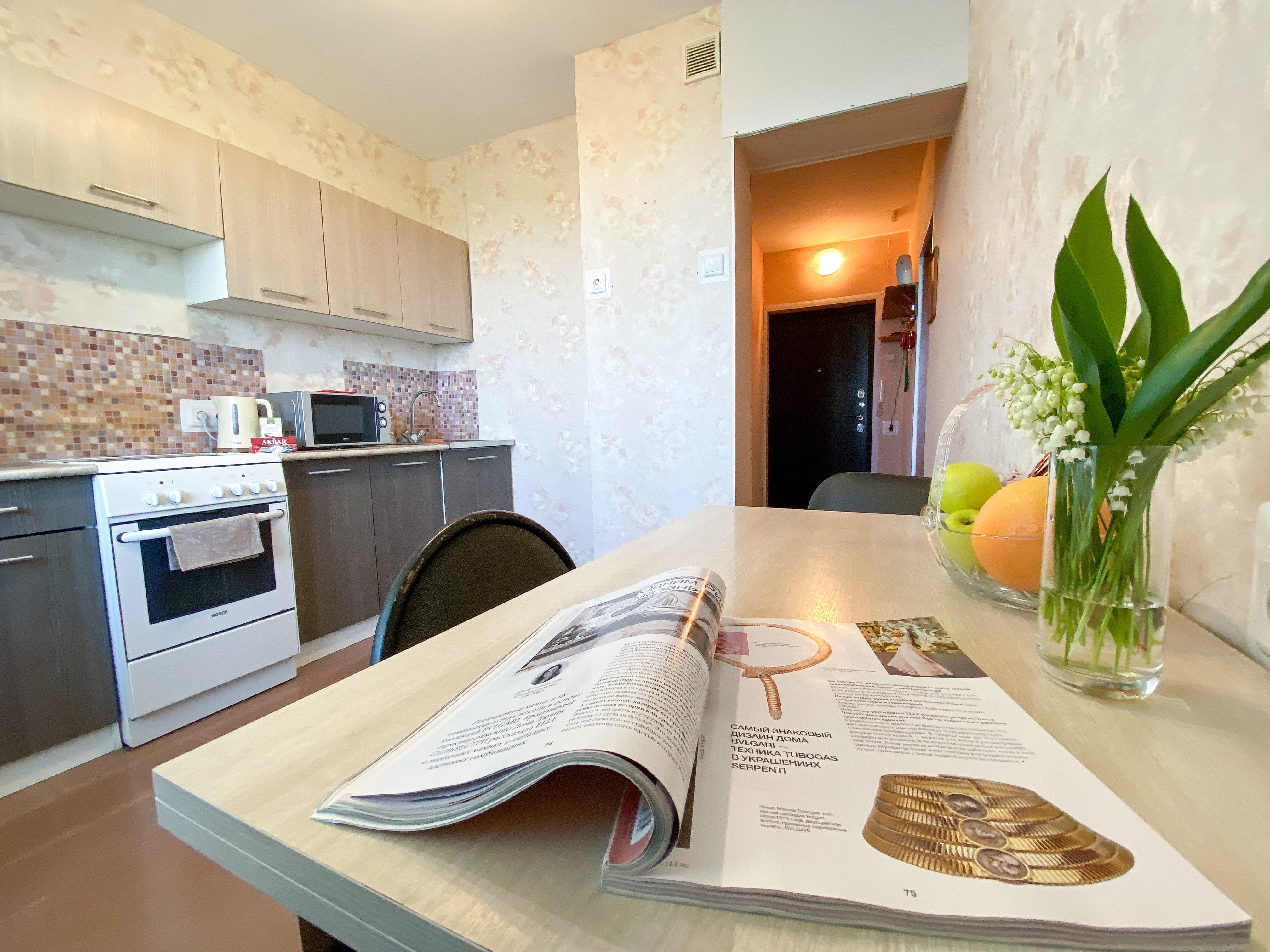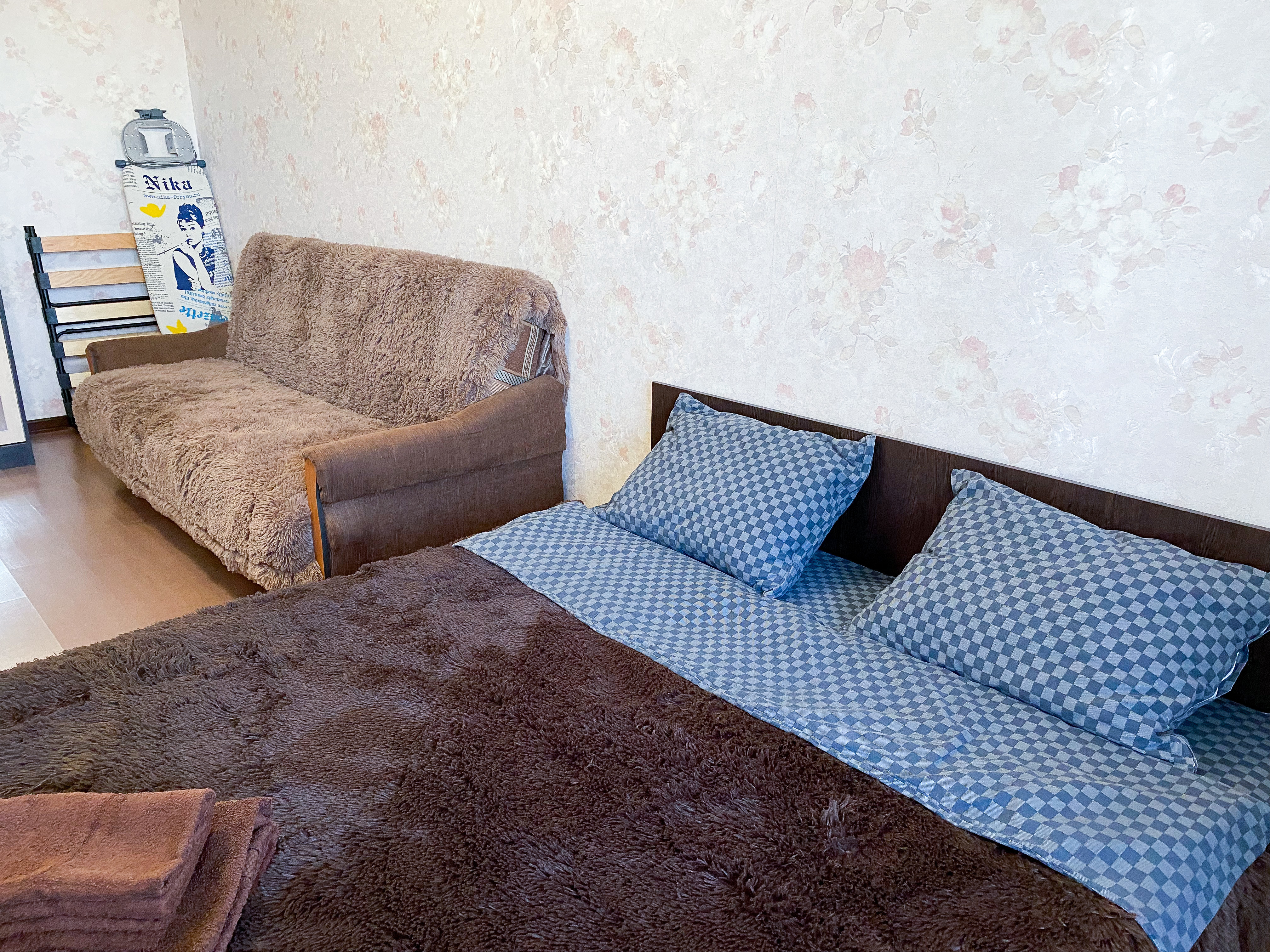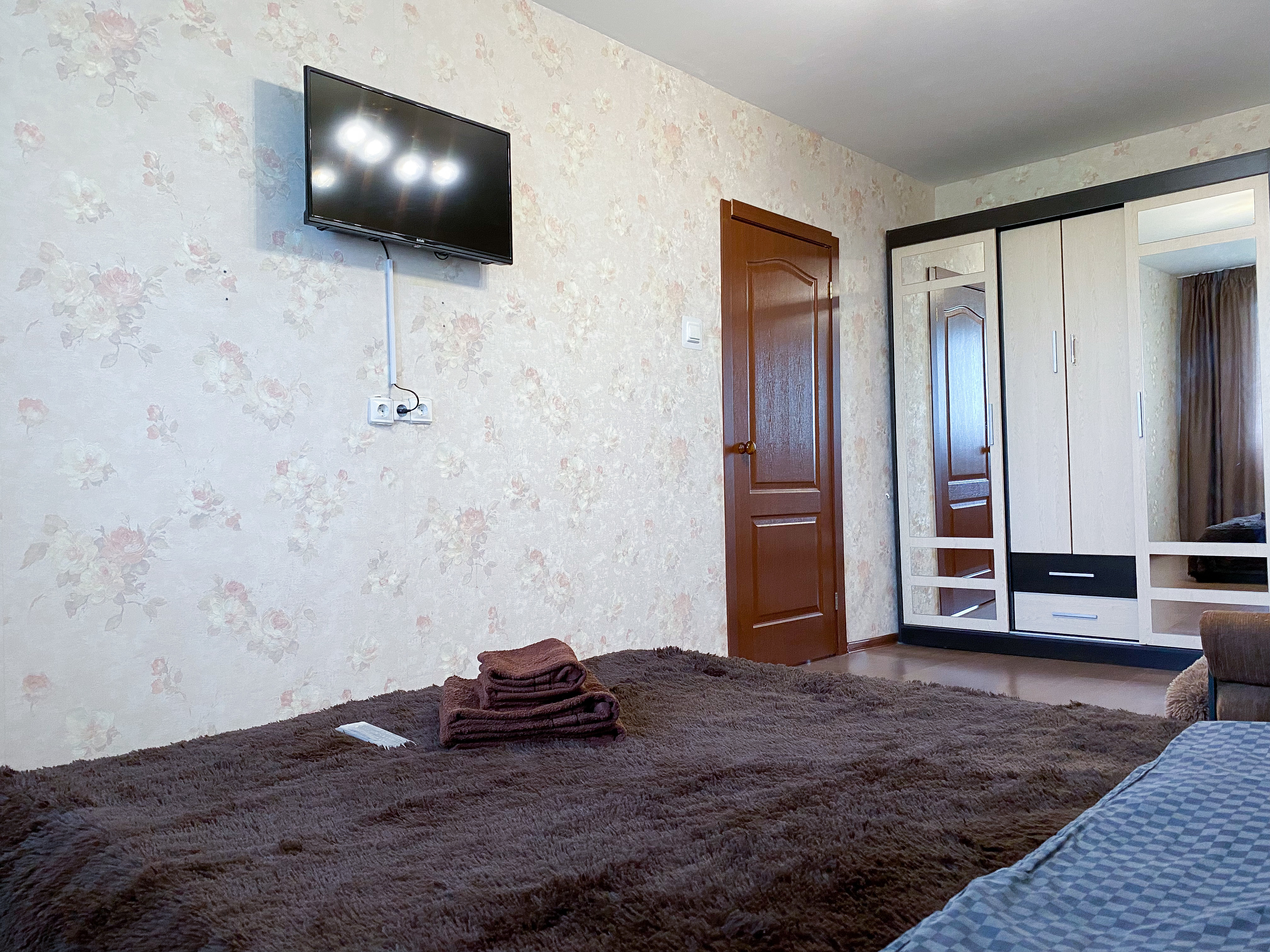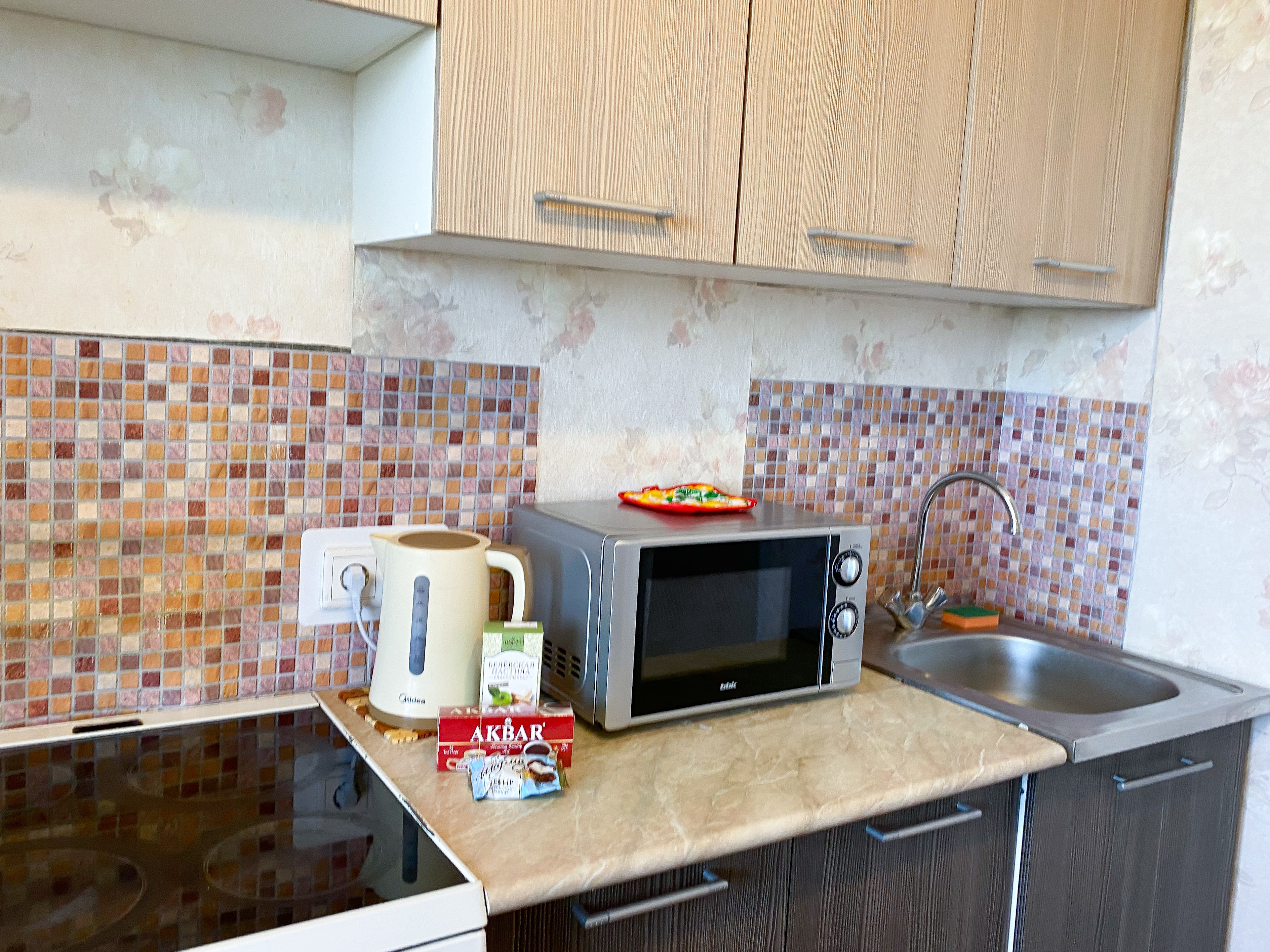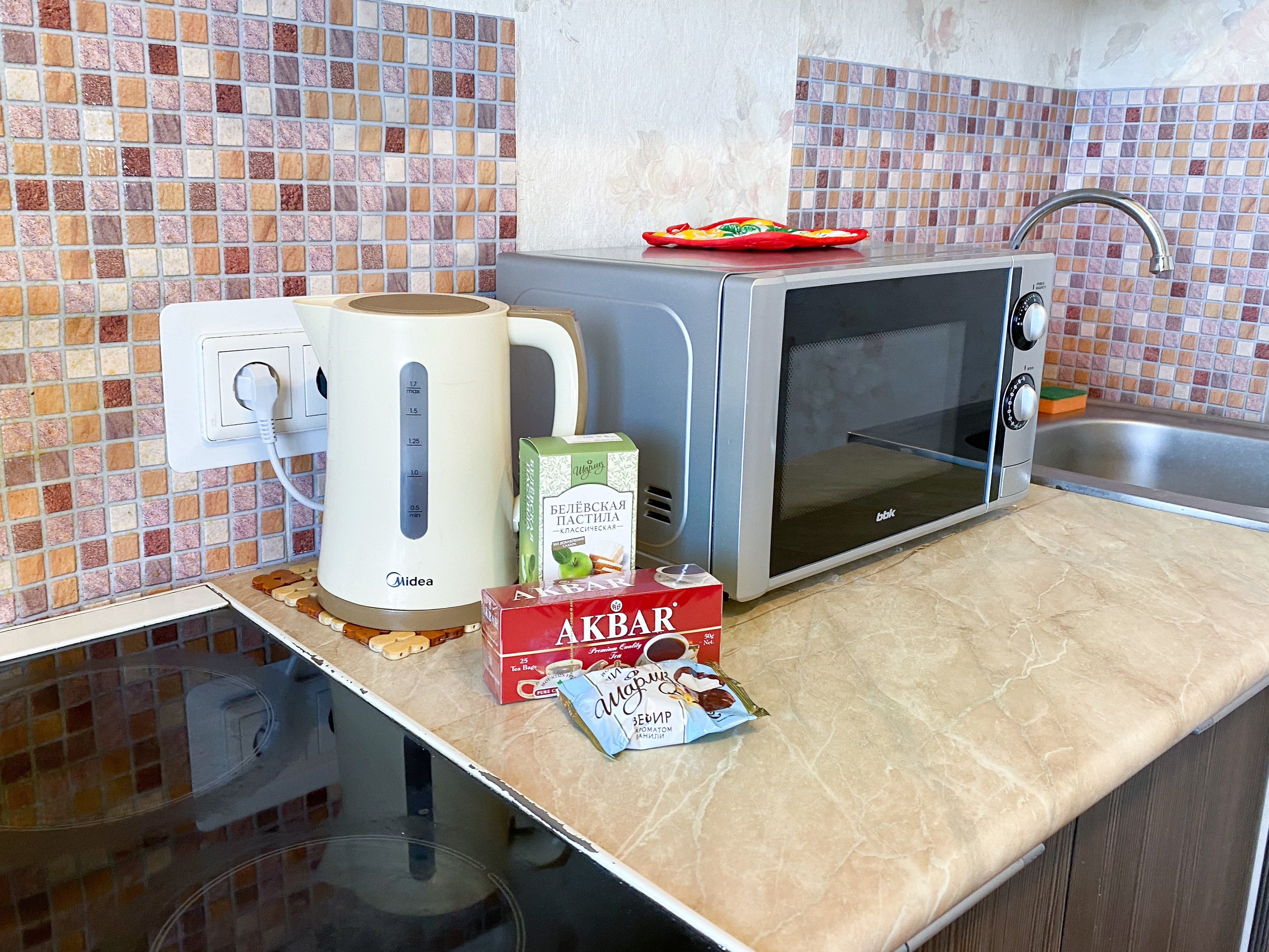 Квартира полностью укомплектована всем необходимым. В спальне расположены двуспальные диван и кровать, отдельная кухня оснащена всем необходимым для приготовления и приёма пищи. Санузел совмещенный, есть всё необходимое для стирки и глажки. Работает Wi-FI и TV. В квартире есть балкон.