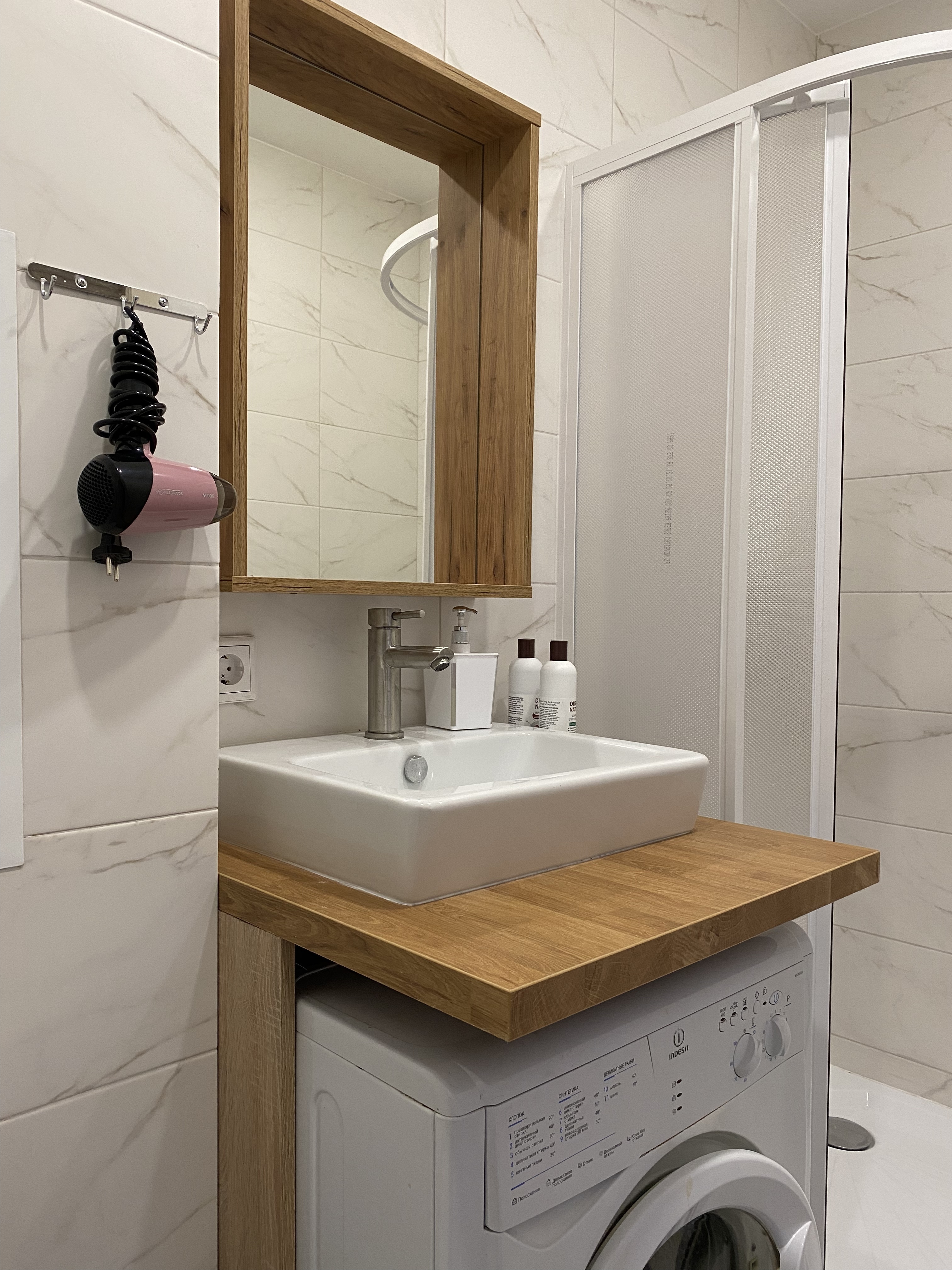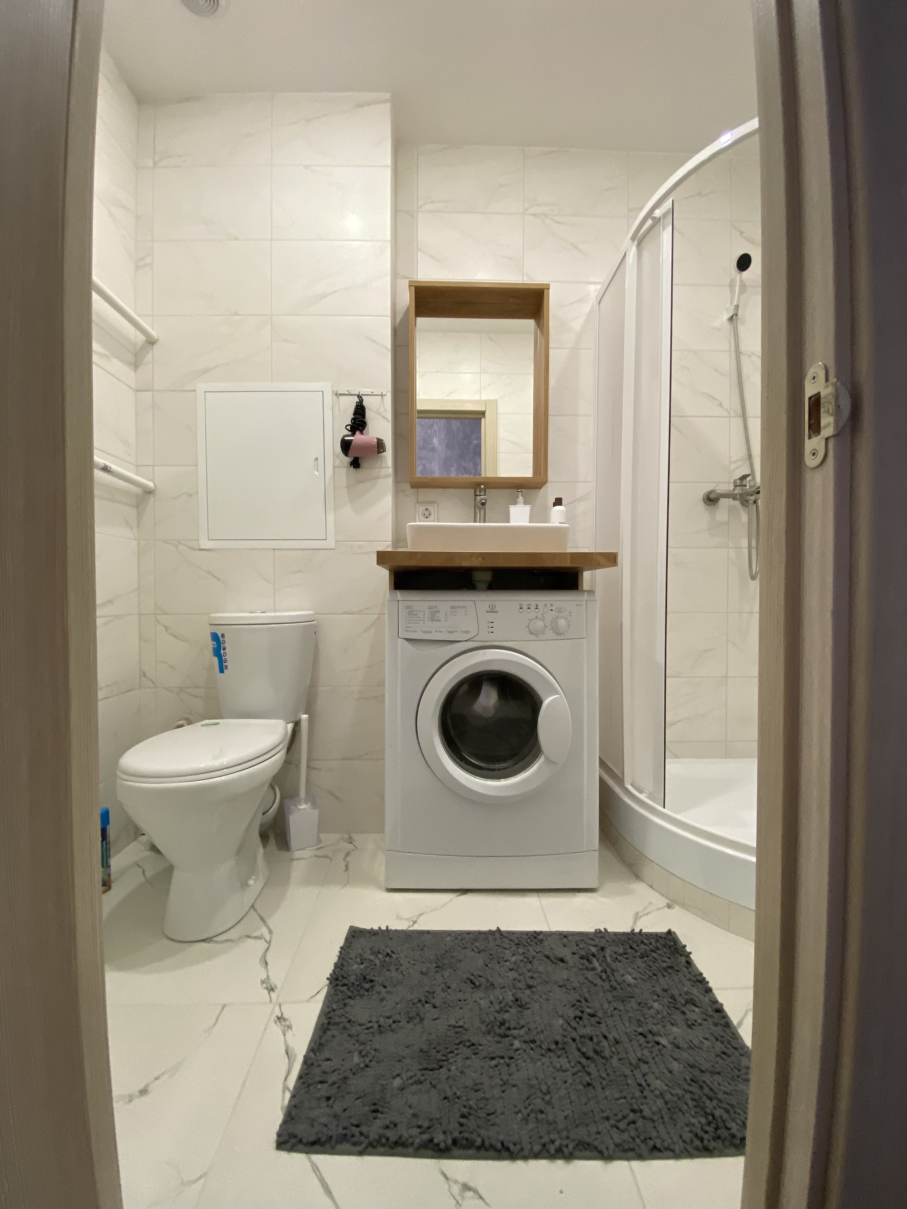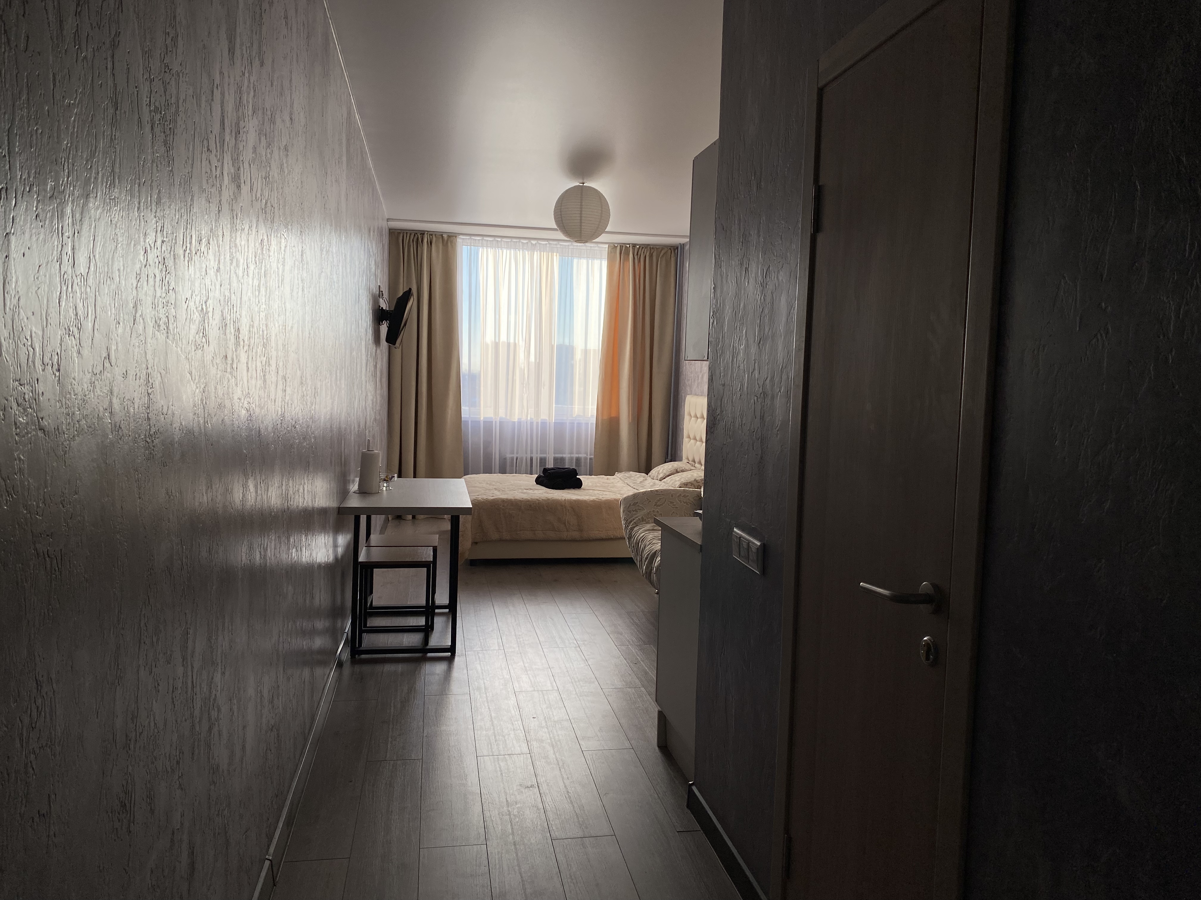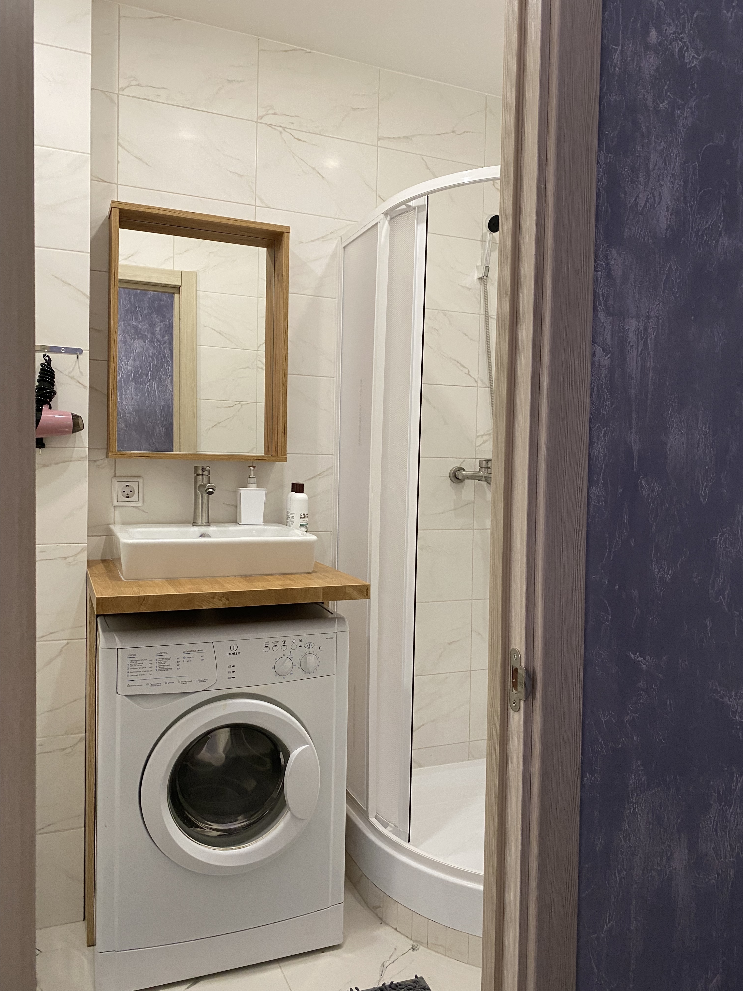 - Это полноценные квартиры-студии, которые укомплектованы кухонной зоной, на которой есть всё необходимое для приготовления пищи, собственной ванной комнатой со стиральной машинкой, феном и гладильными принадлежностями.
