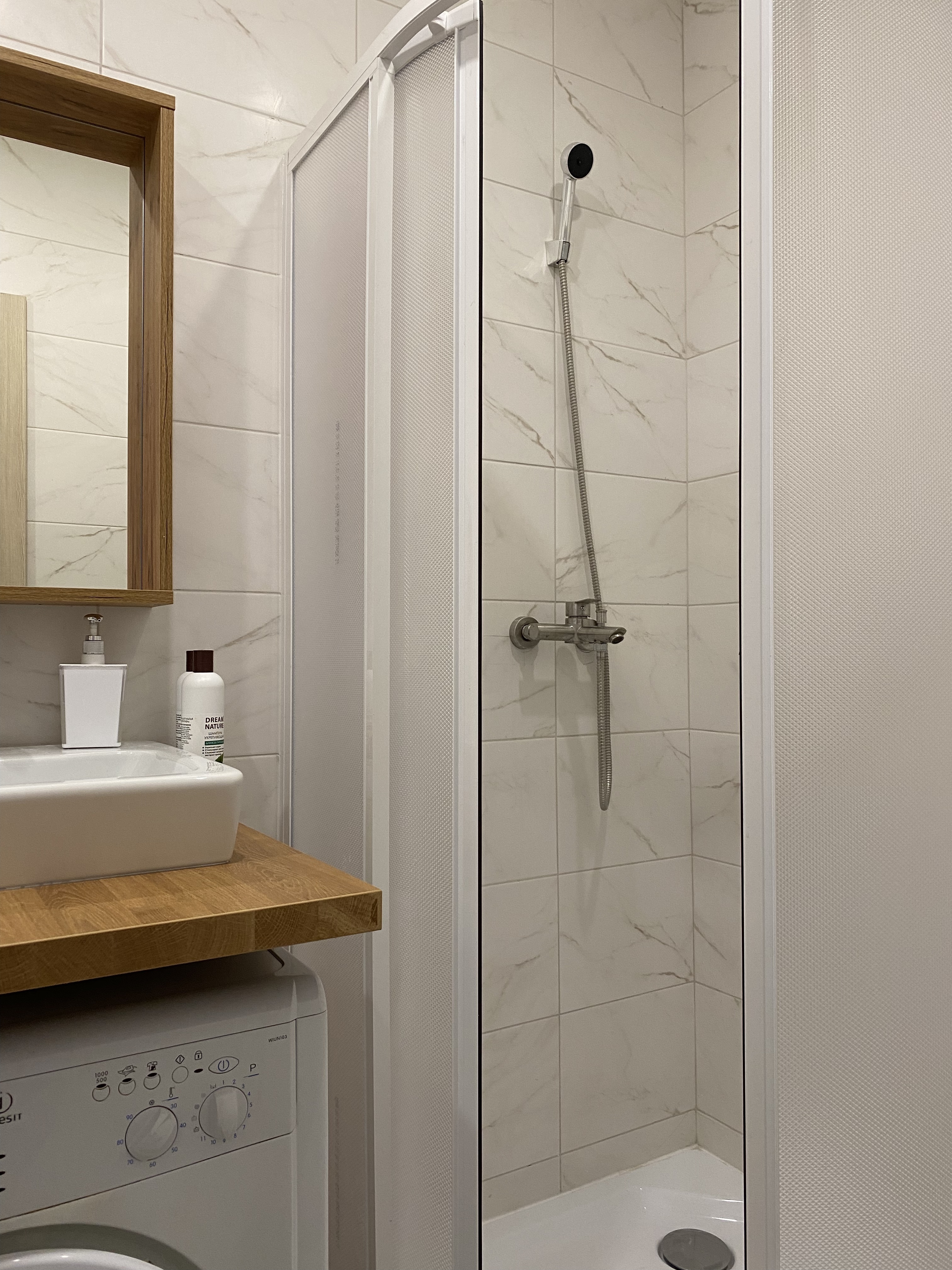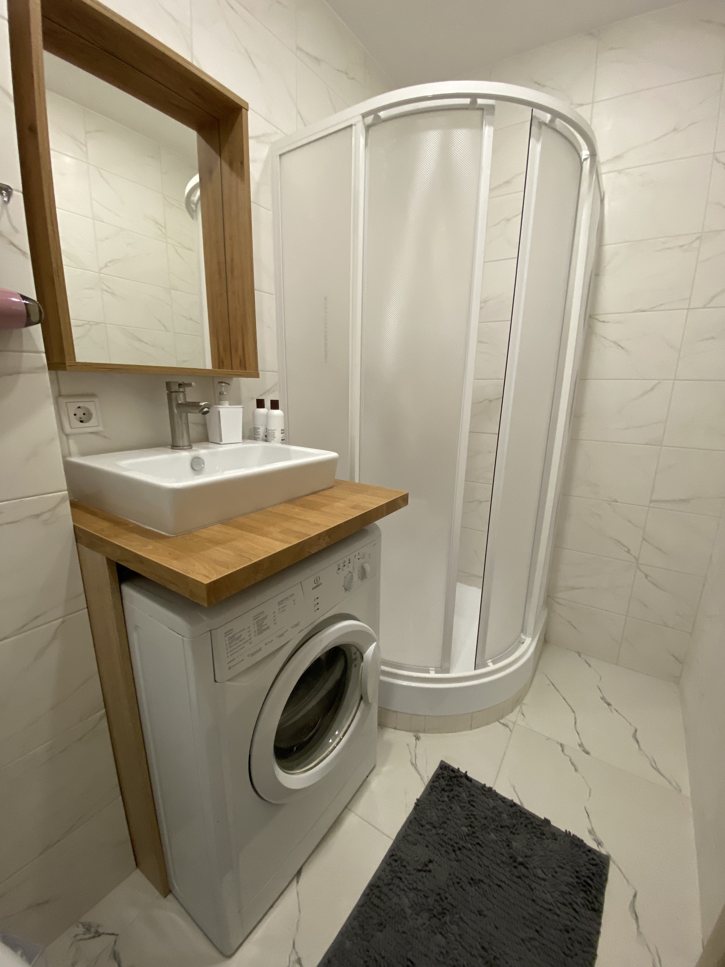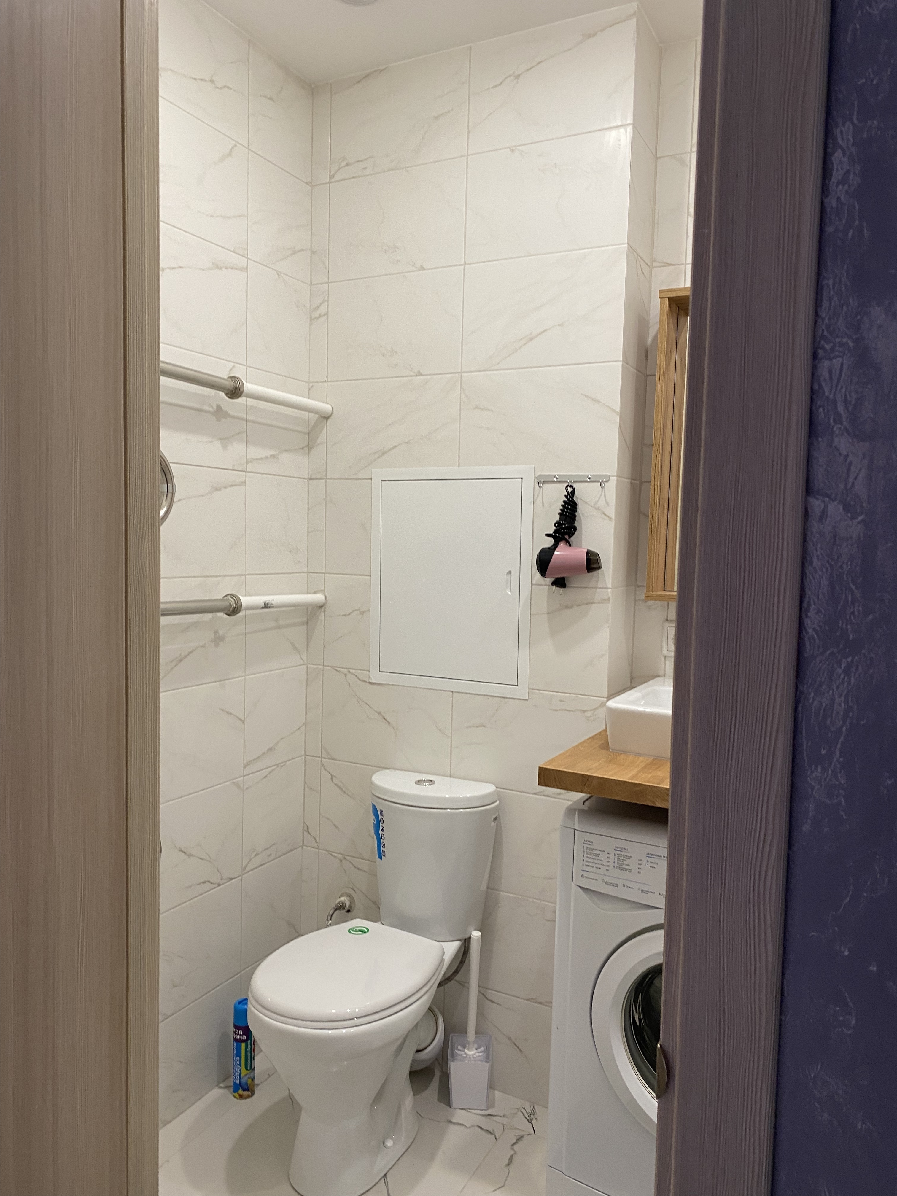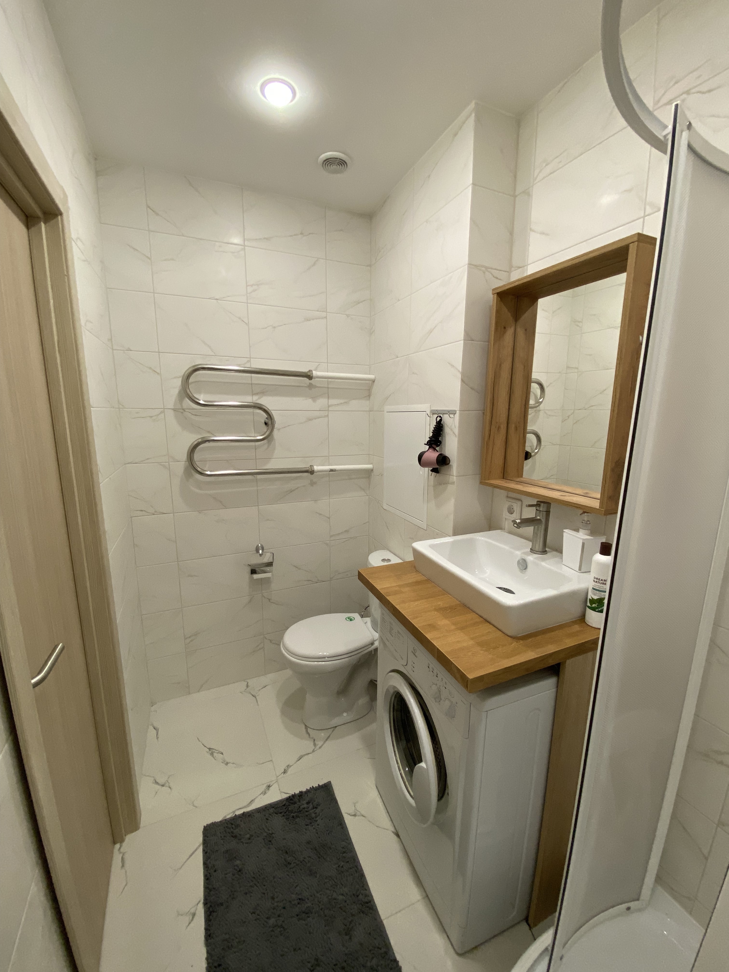 - Это полноценные квартиры-студии, которые укомплектованы кухонной зоной, на которой есть всё необходимое для приготовления пищи, собственной ванной комнатой со стиральной машинкой, феном и гладильными принадлежностями.