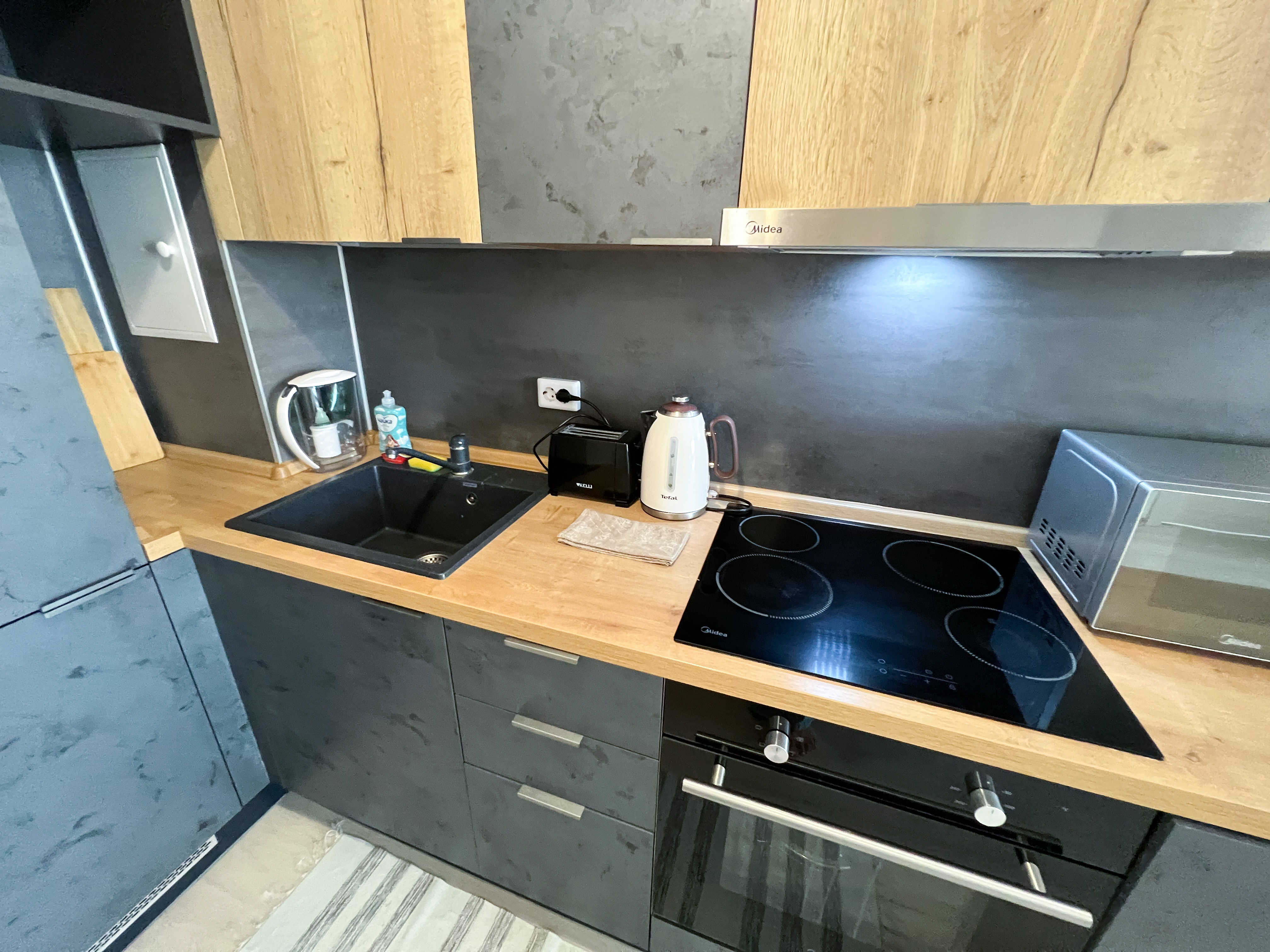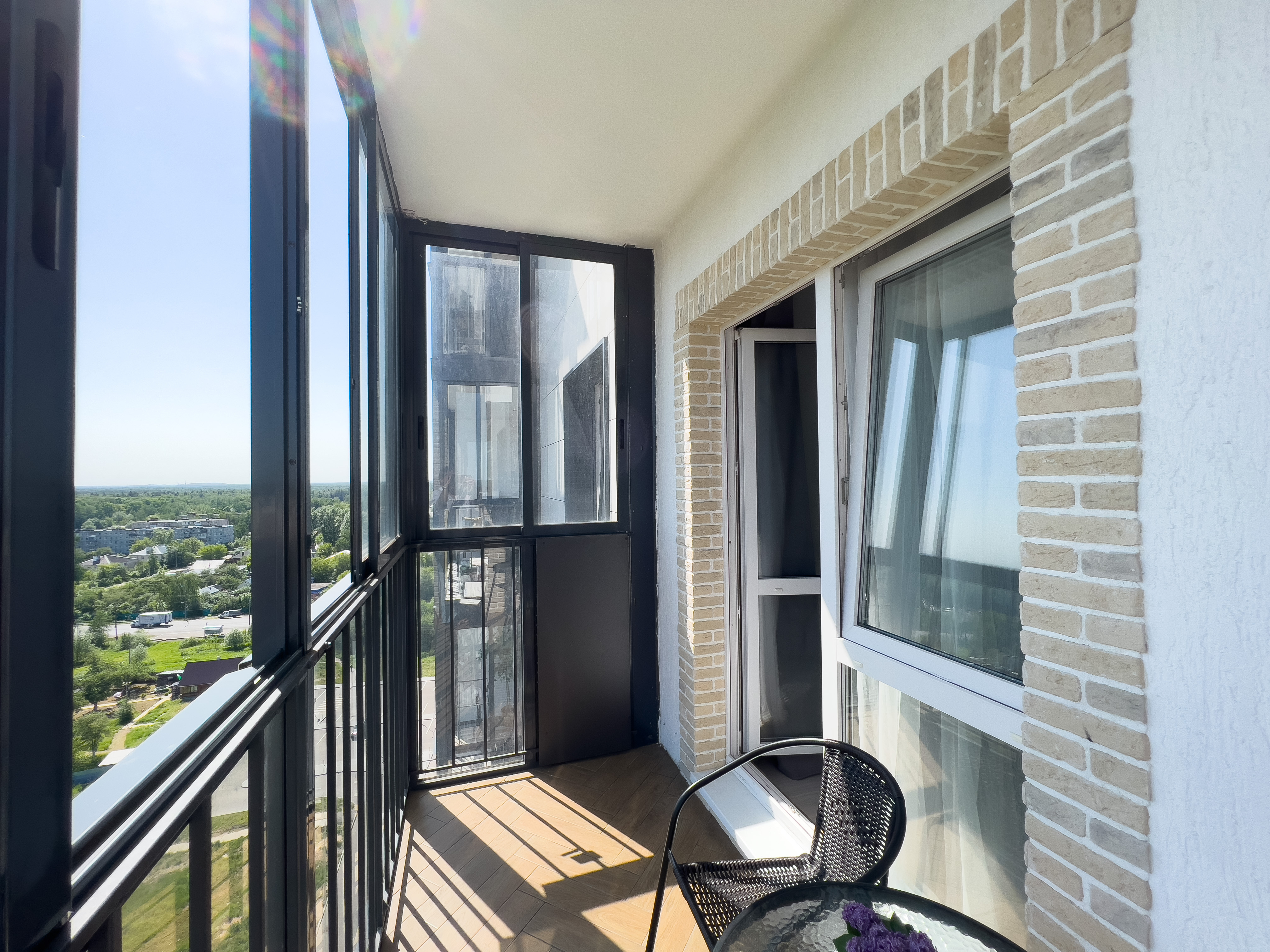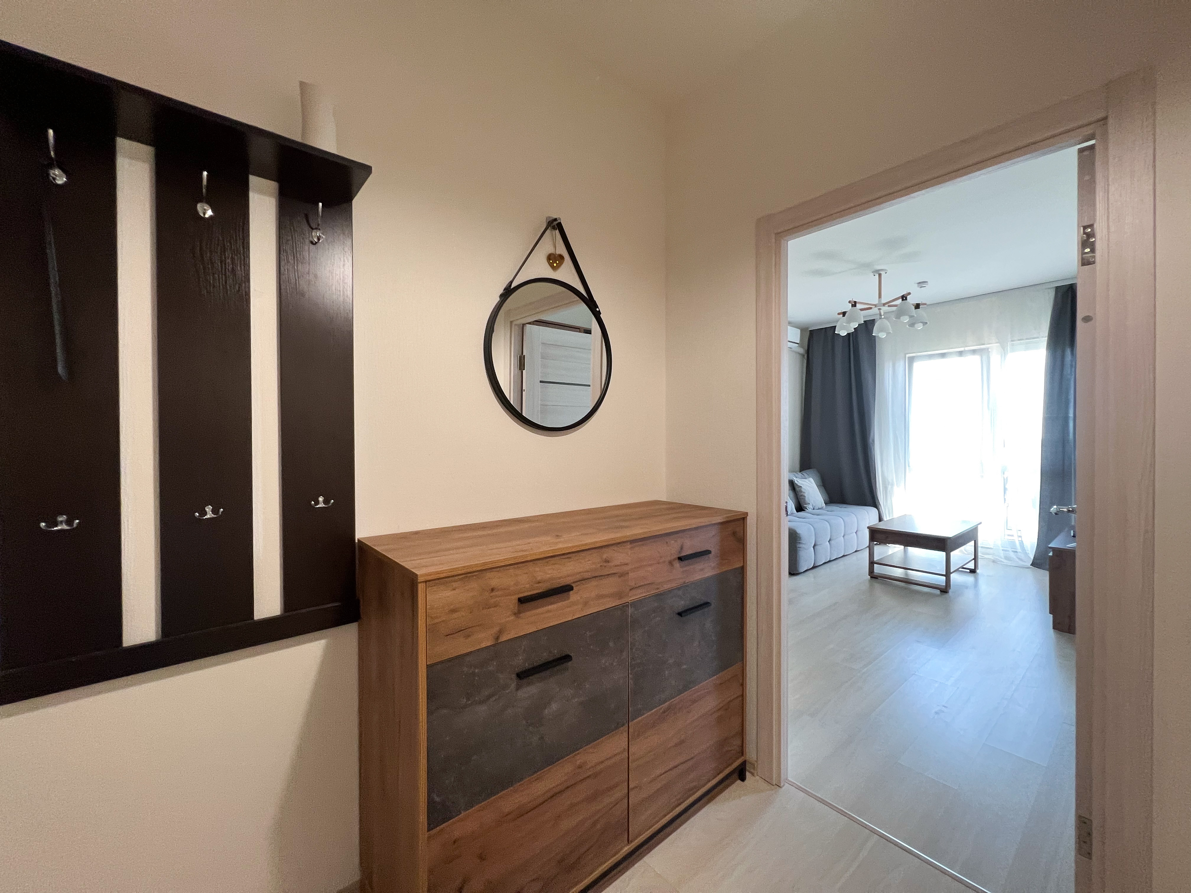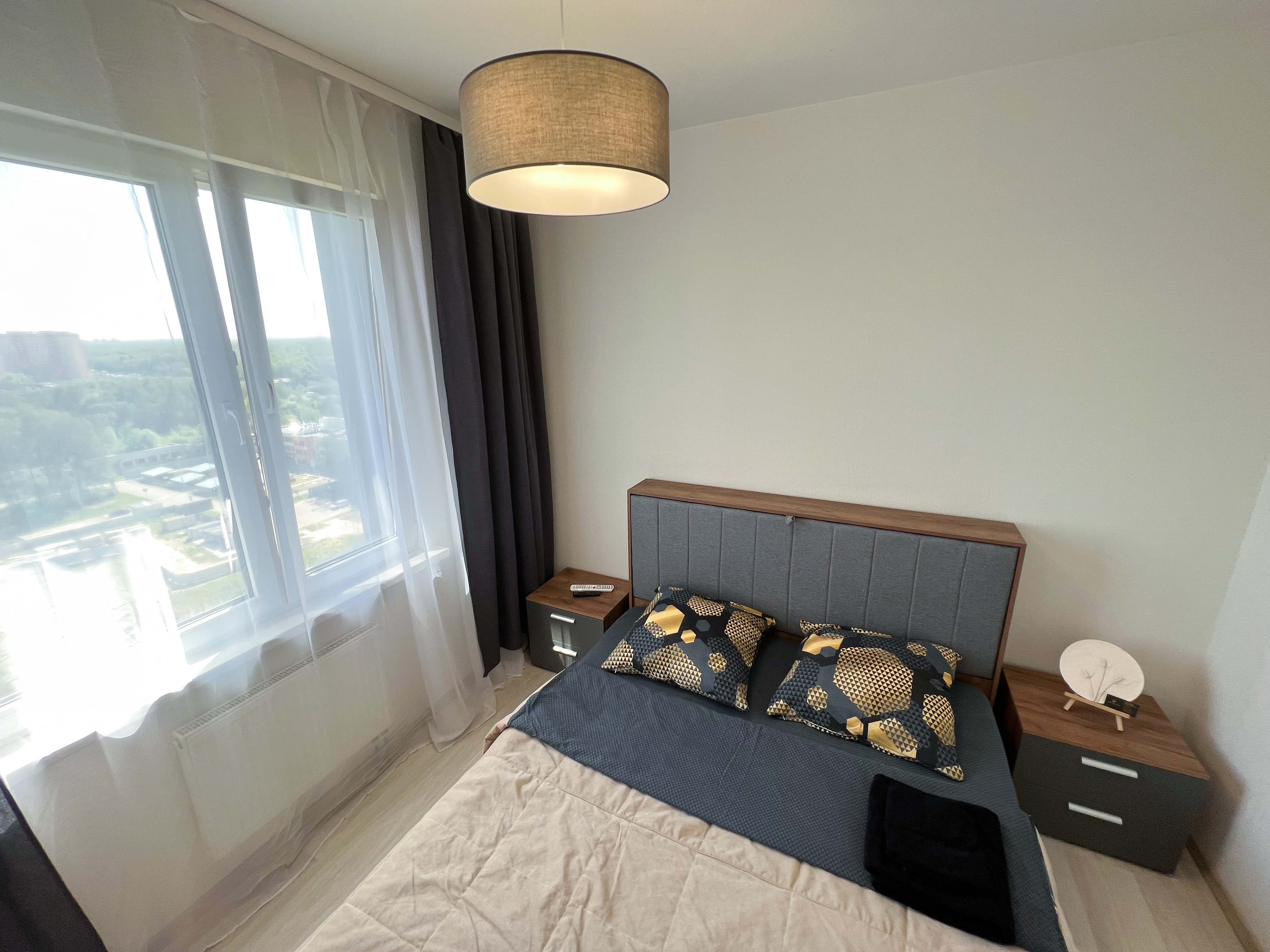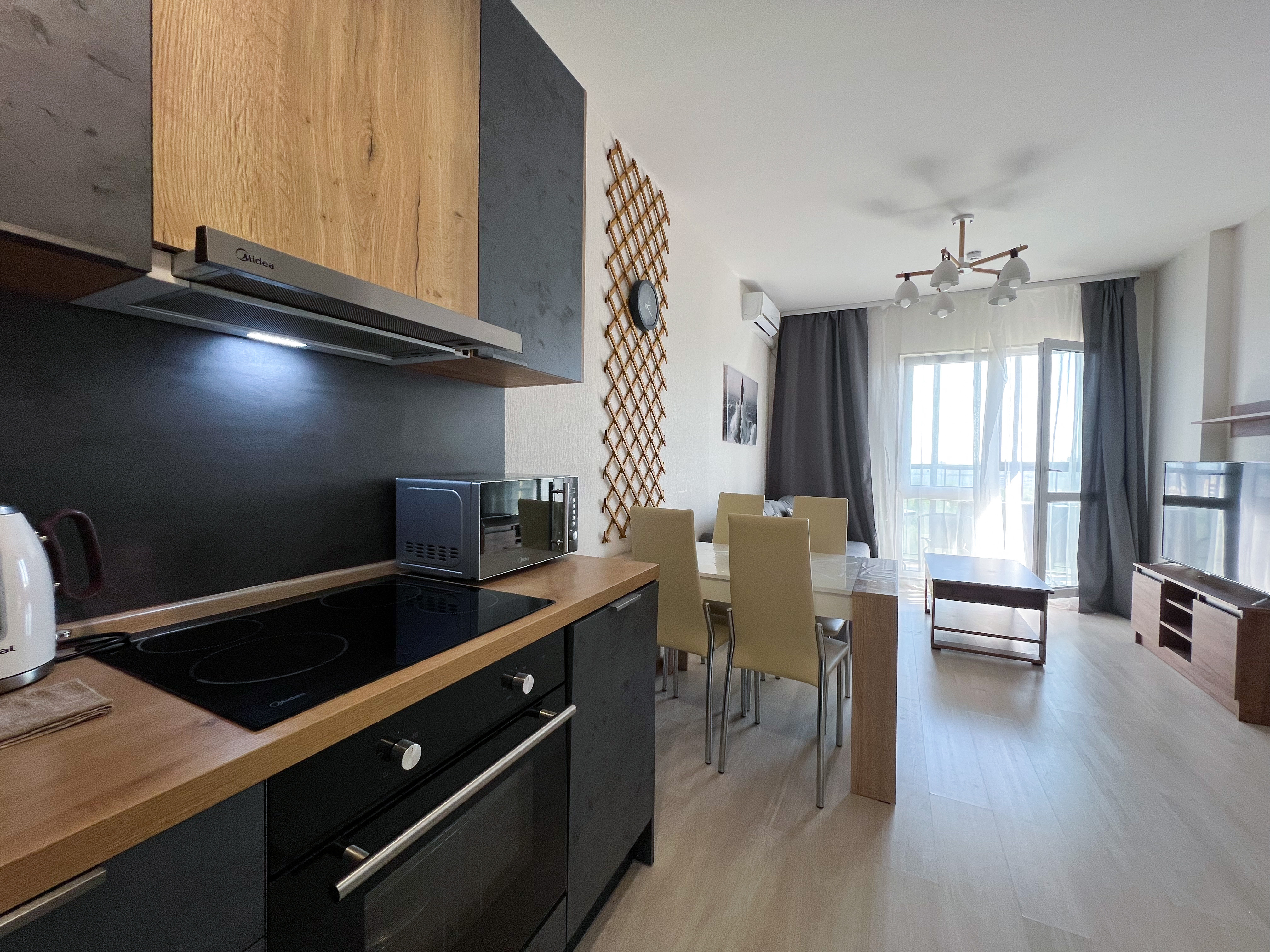Квартира полностью укомплектована для проживания 4 человек. Современный новый ремонт в стиле лофт. В квартире имеется двуспальный диван и двуспальная кровать. Кухонная зона оборудована холодильником, TV, СВЧ. Приятным бонусом для гостей будет наличие кондиционера и посудомоечной машины. Ванная комната с душевой кабиной укомплектована стиральной машинкой, утюгом, феном. Есть WI-FI. В доме работает лифт. На балконе оборудована зона отдыха с прекрасным видом на город. Каждому клиенту предоставляется комплект постельного белья, полотенца, одноразовые тапочки, коврик в ванную.