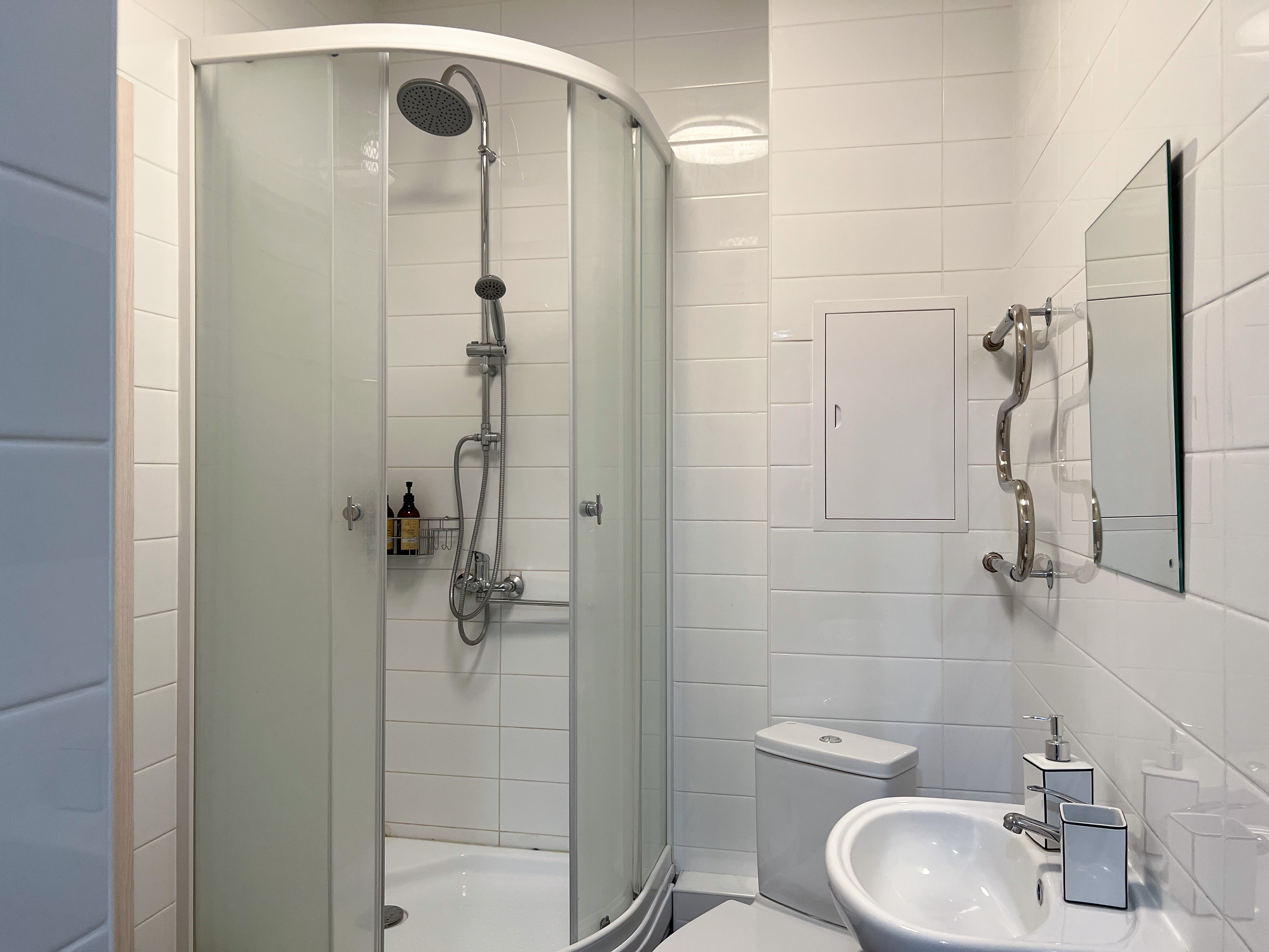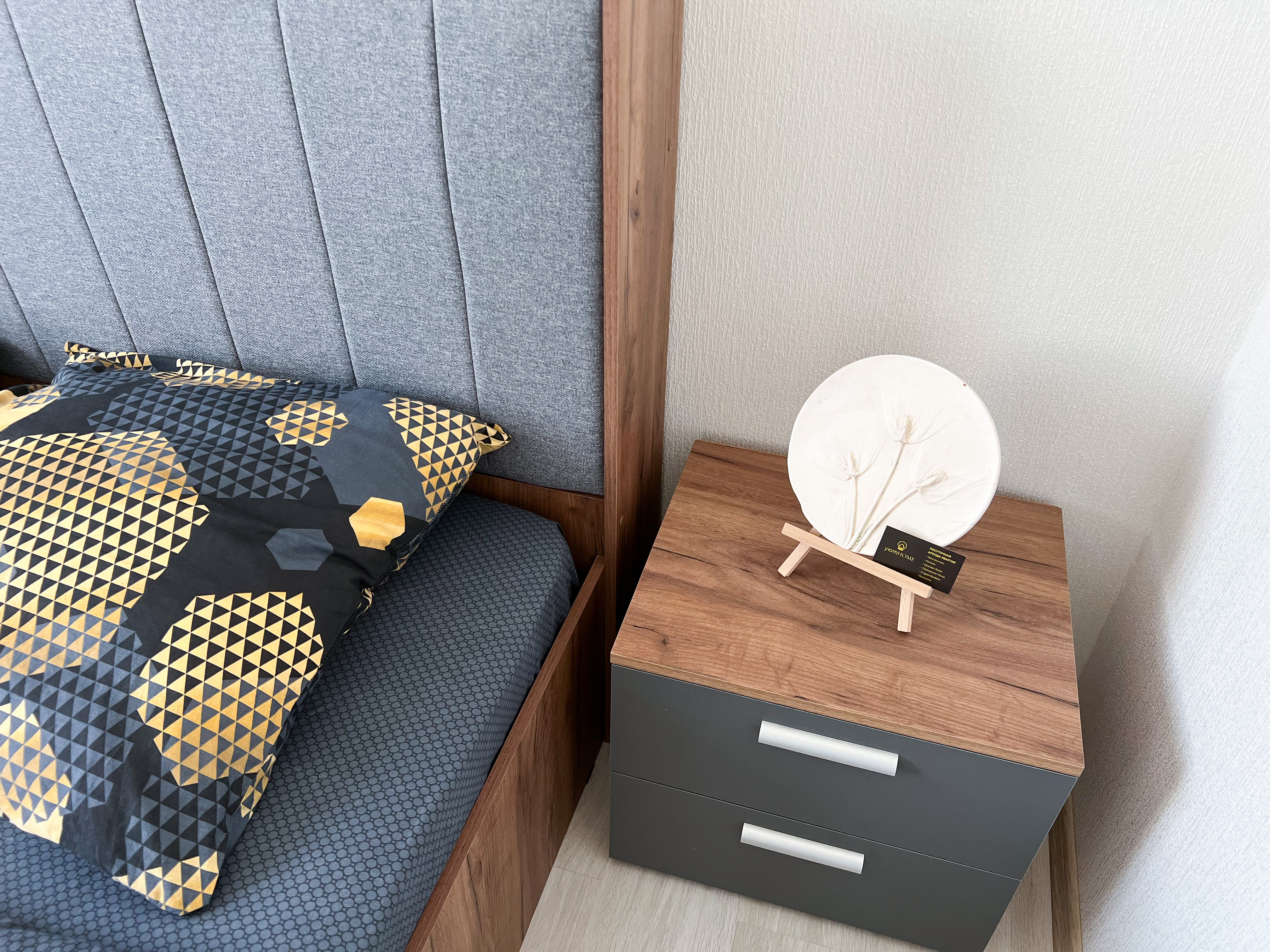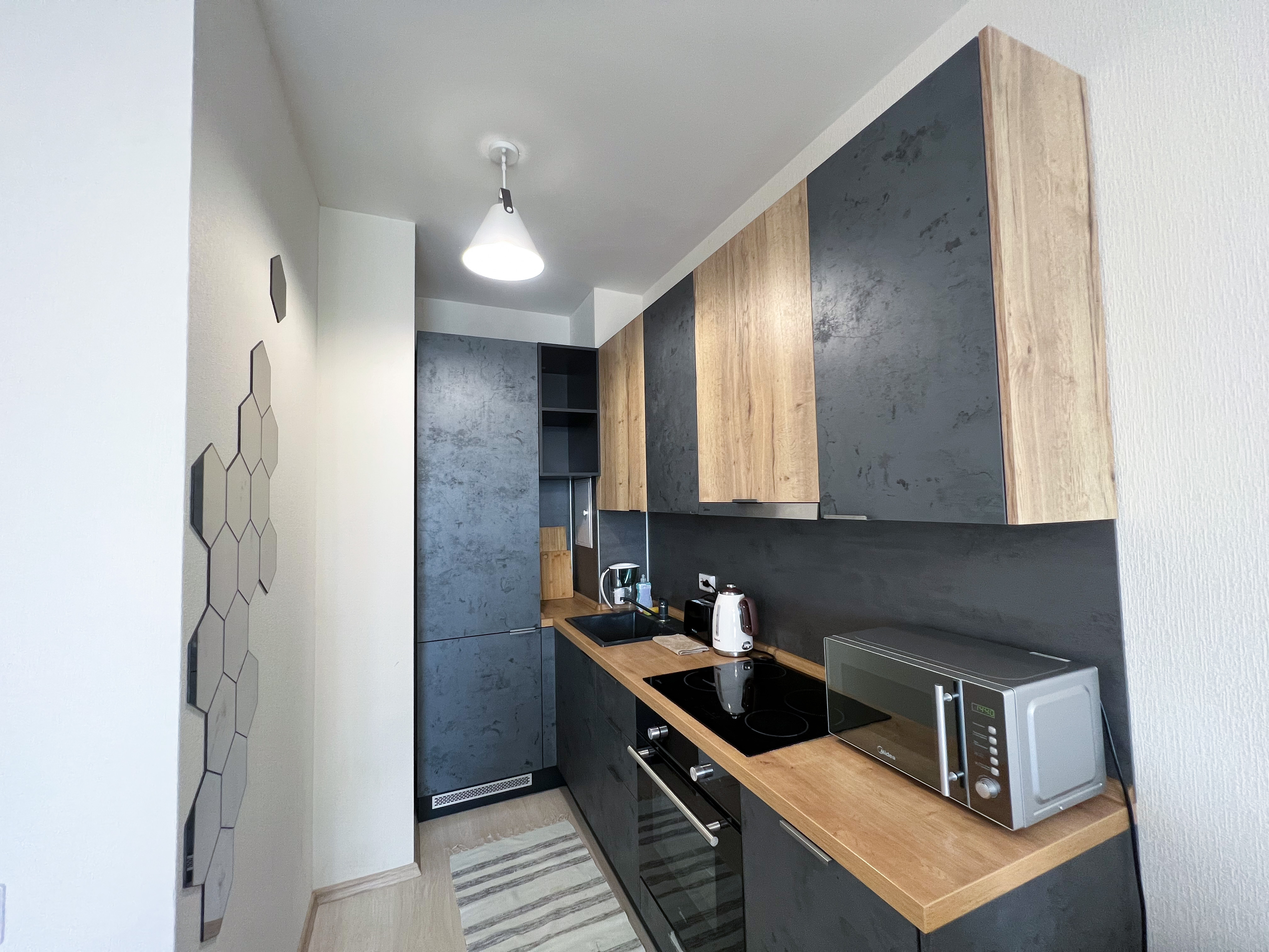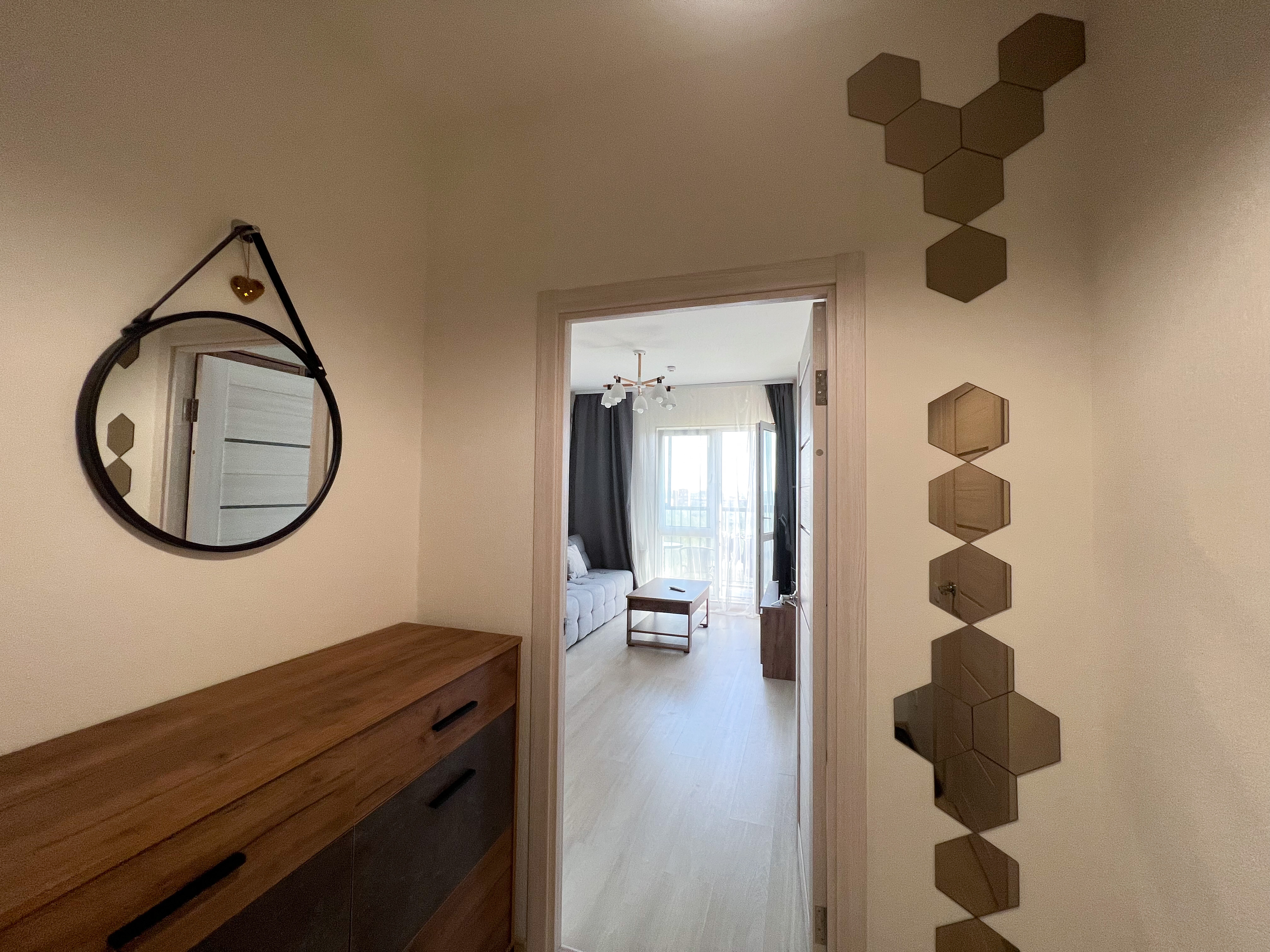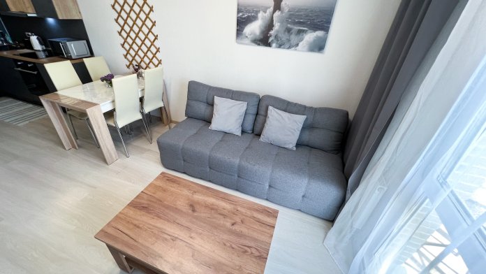 Квартира полностью укомплектована для проживания 4 человек. Современный новый ремонт в стиле лофт. В квартире имеется двуспальный диван и двуспальная кровать. Кухонная зона оборудована холодильником, TV, СВЧ. Приятным бонусом для гостей будет наличие кондиционера и посудомоечной машины. Ванная комната с душевой кабиной укомплектована стиральной машинкой, утюгом, феном. Есть WI-FI. В доме работает лифт. На балконе оборудована зона отдыха с прекрасным видом на город. Каждому клиенту предоставляется комплект постельного белья, полотенца, одноразовые тапочки, коврик в ванную.