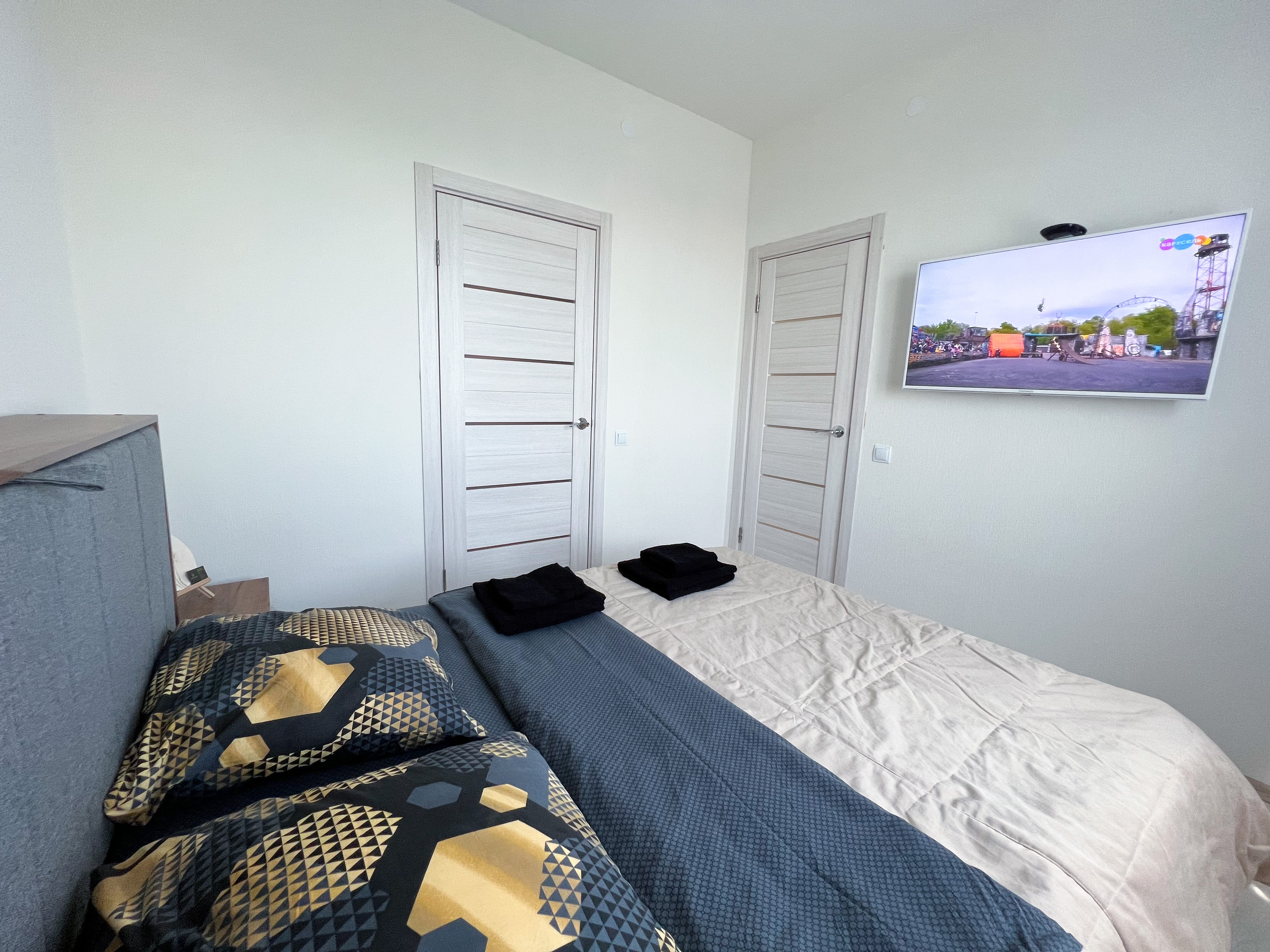 В квартире 2 комплекта постельного белья, дополнительный комплект - 500 руб.