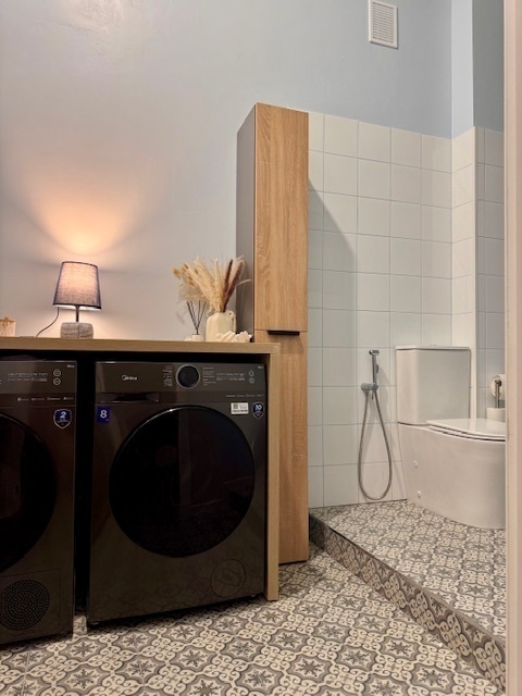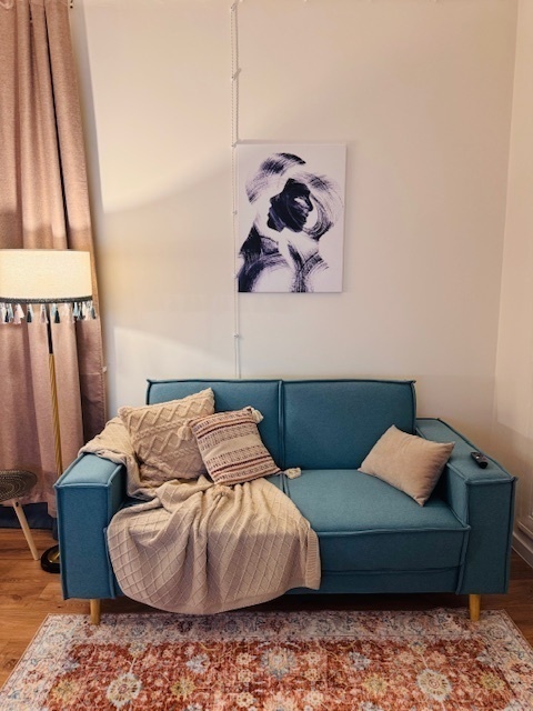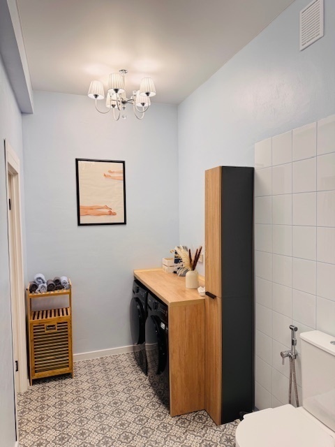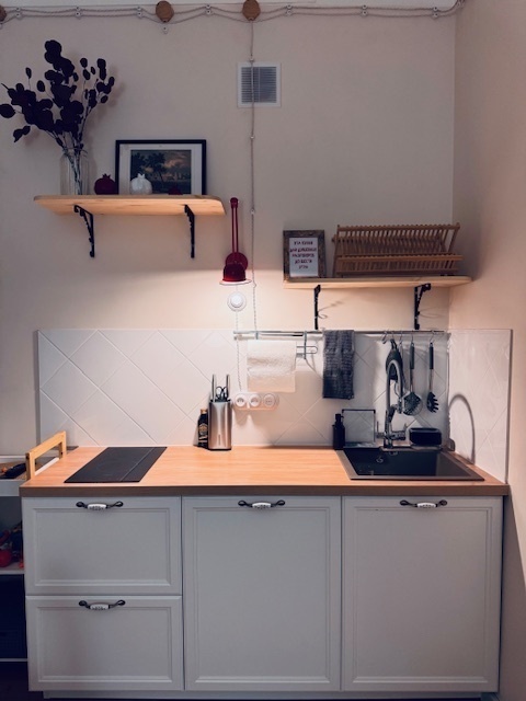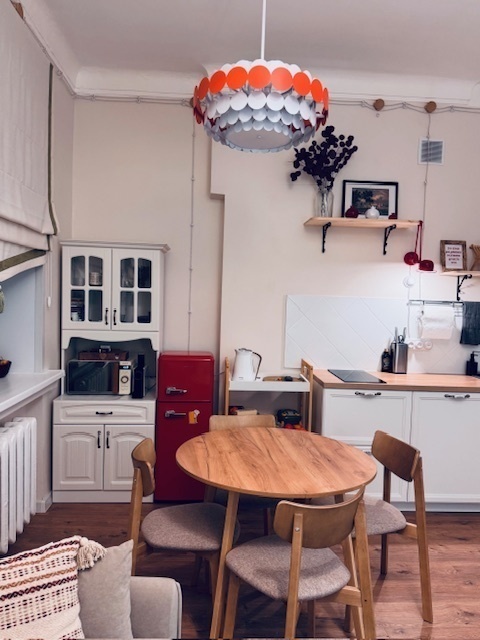 - Стильная кухня-гостиная со всей необходимой техникой и раскладным диваном.