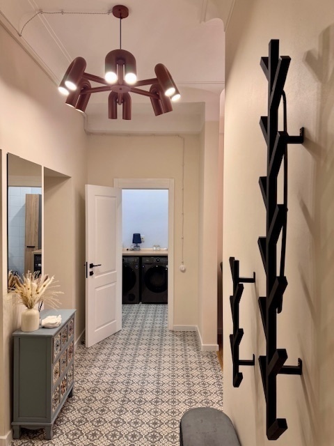 - Просторная прихожая с выделенной секцией для хранения инвентаря и сушилкой для обуви.