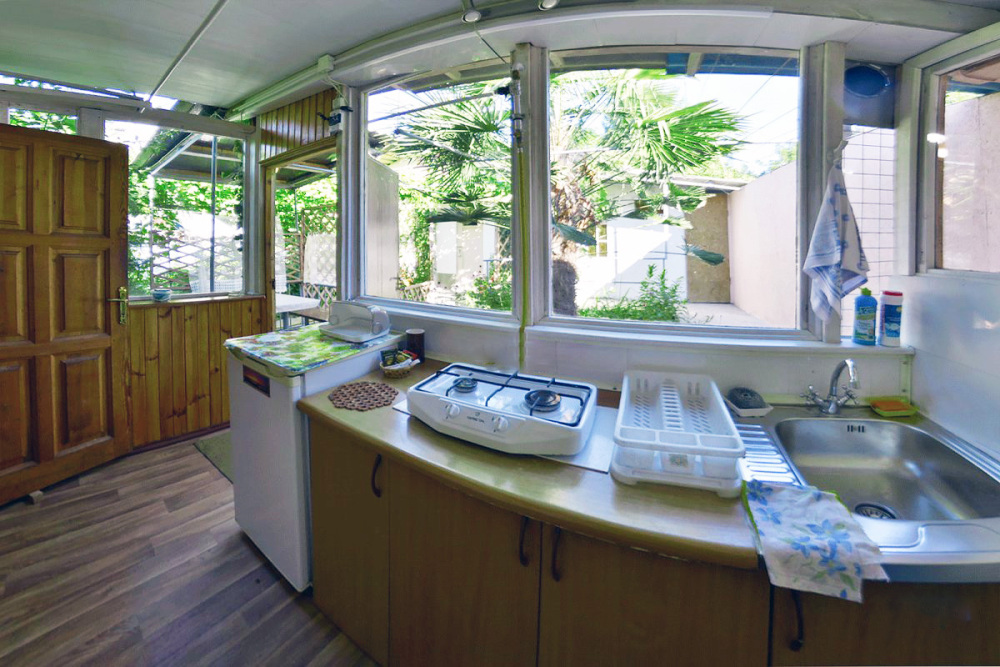 Домовладение расположено недалеко от центральной набережной и моря в тихом районе курортного городка Алушта. В шаговой доступности находятся: рынок, супермаркеты, продуктовые и хозяйственные магазины, автовокзал, аптеки, ночные клубы, кафе и рестораны, набережная.