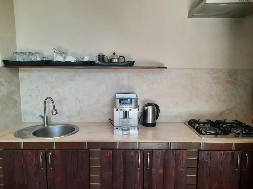 В каждом номере все необходимое для отдыха и работы: скоростной Wi-Fi, рабочая зона, кондиционер, холодильник, чайник, сейф, санузел с душевой, фен, телевизор с Wi-Fi, зона столовой, зона мангала.
