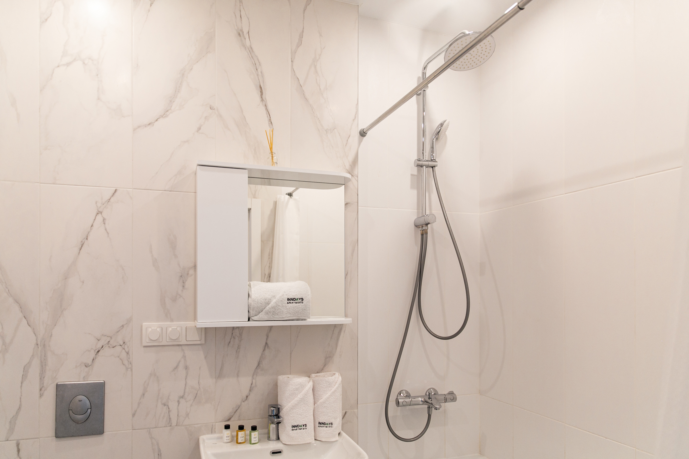 – Гигиенические принадлежности (шампунь, гель для душа, мыло и одноразовые тапочки).