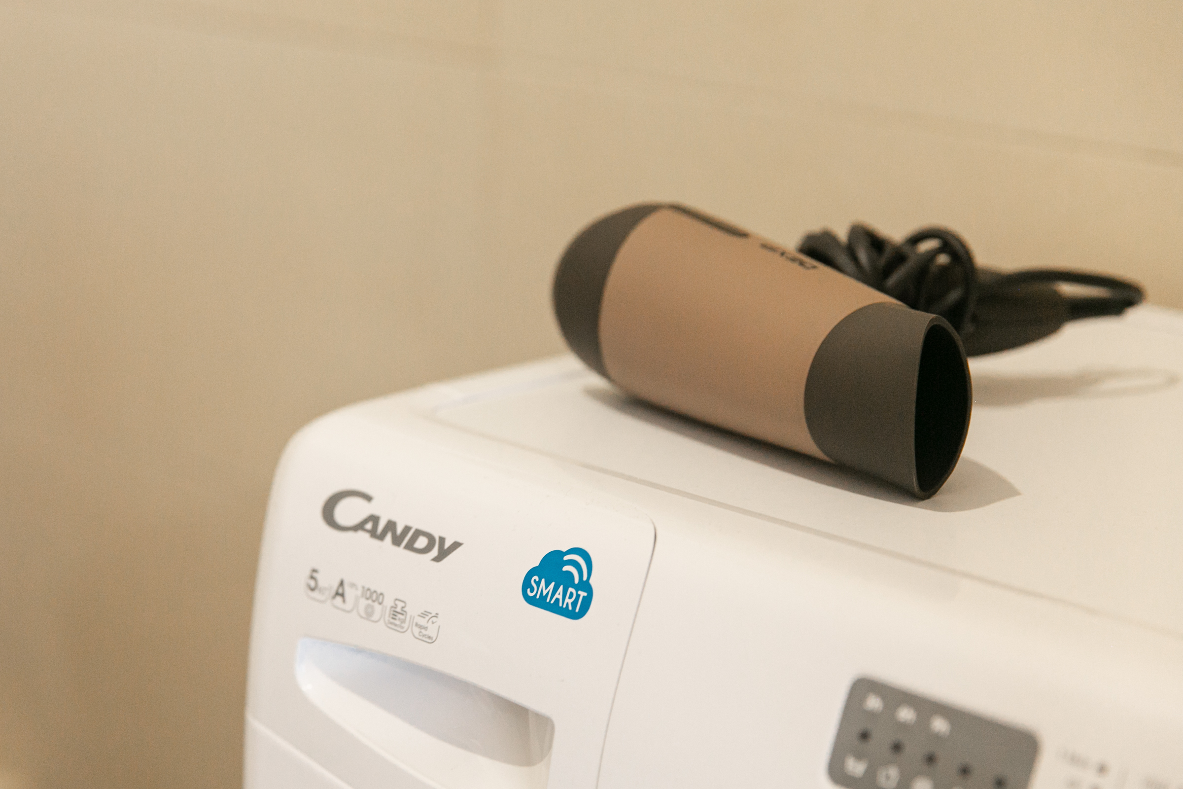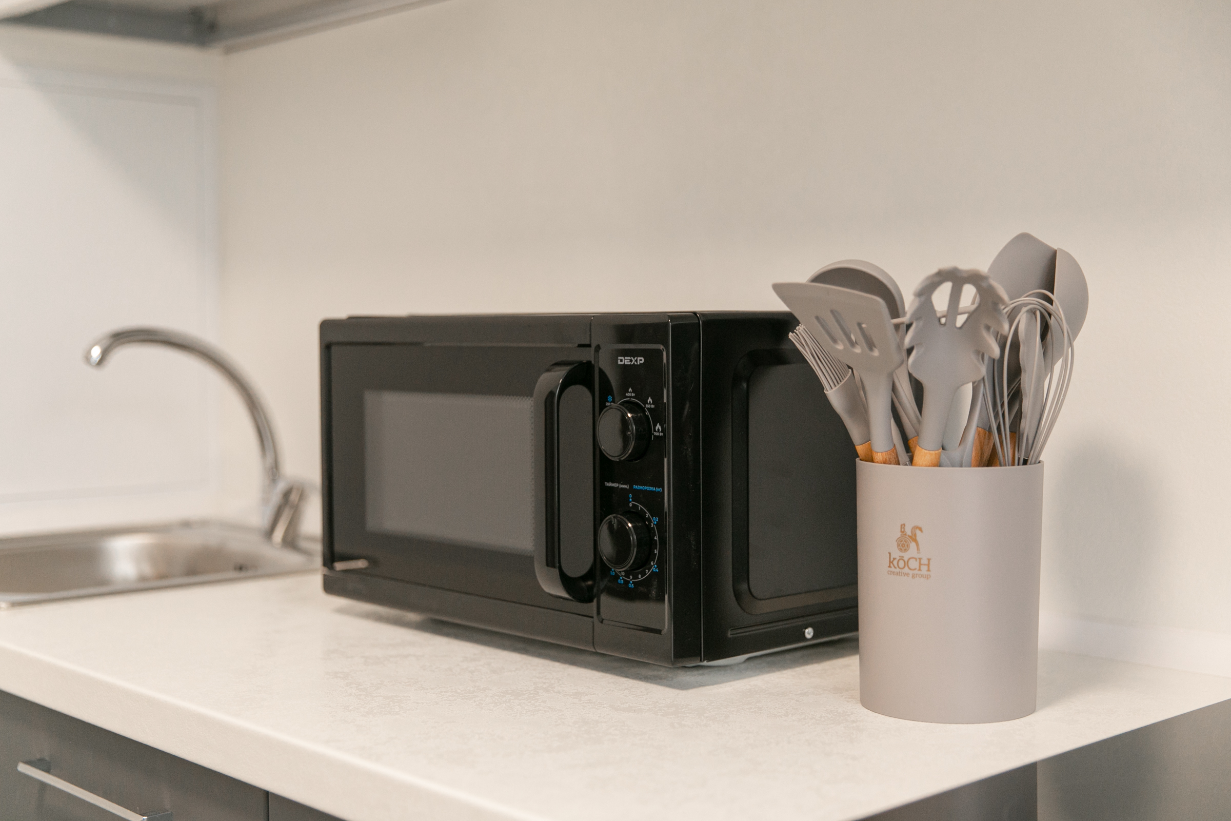 – Всю необходимую бытовую технику (холодильник, фен, плазменный телевизор, утюг, микроволновую печь, чайник).