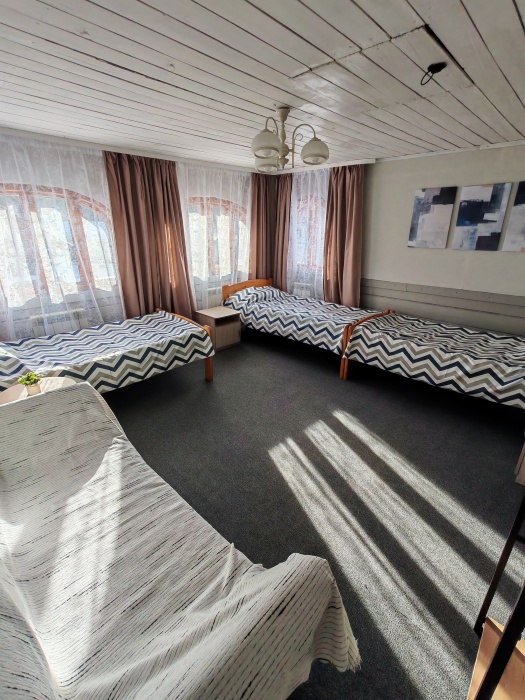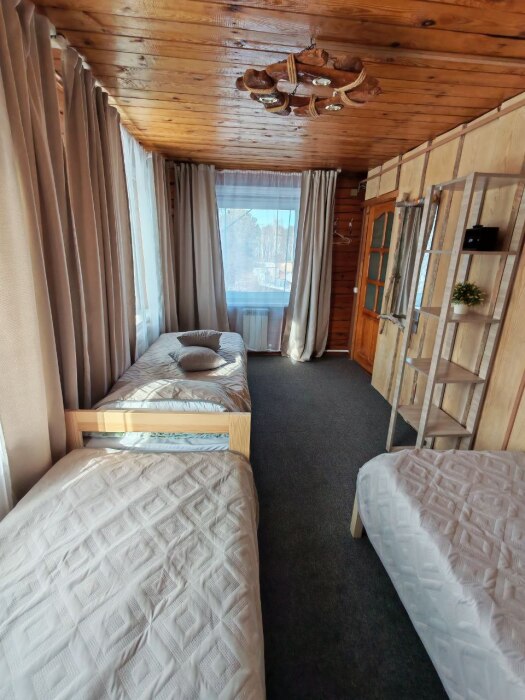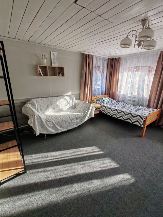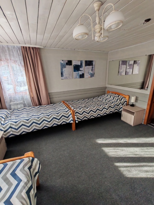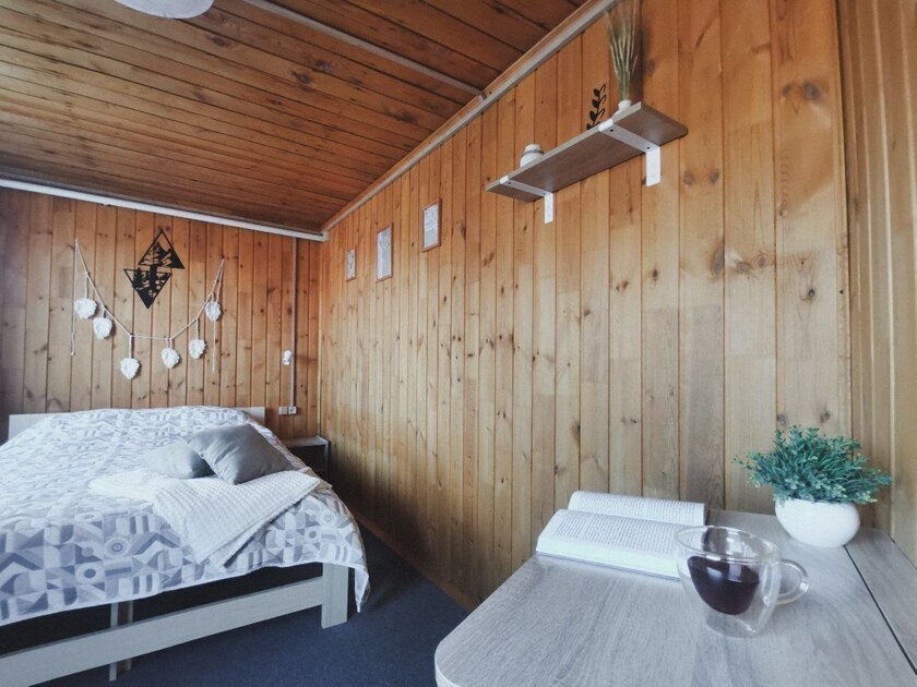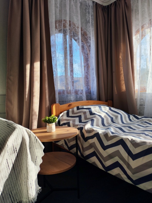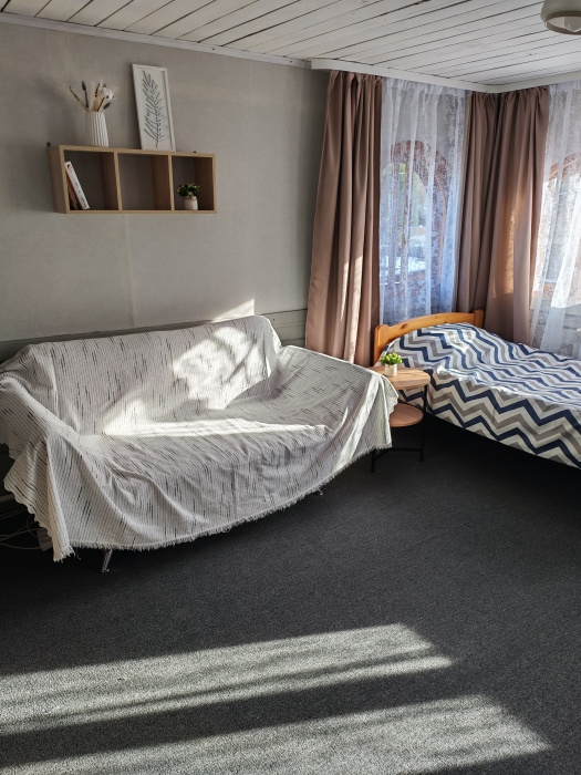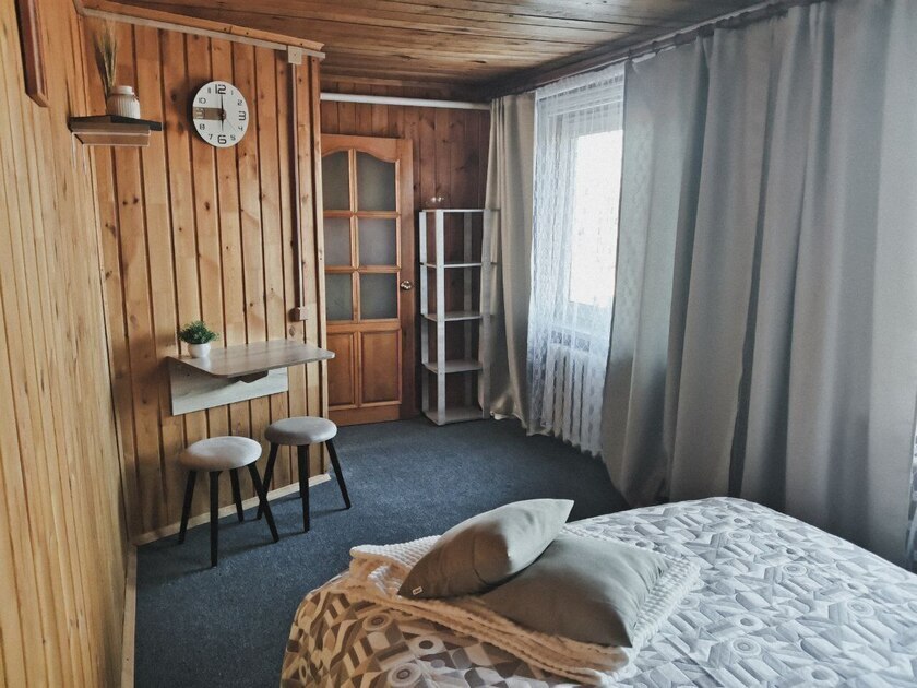 Двухместный номер на втором этаже - Ваш личный оазис тишины и покоя. Большая кровать манит своим ортопедическим матрасом и всесезонным одеялом, обещая сон, как у младенца (даже если Вы им уже давно не являетесь).