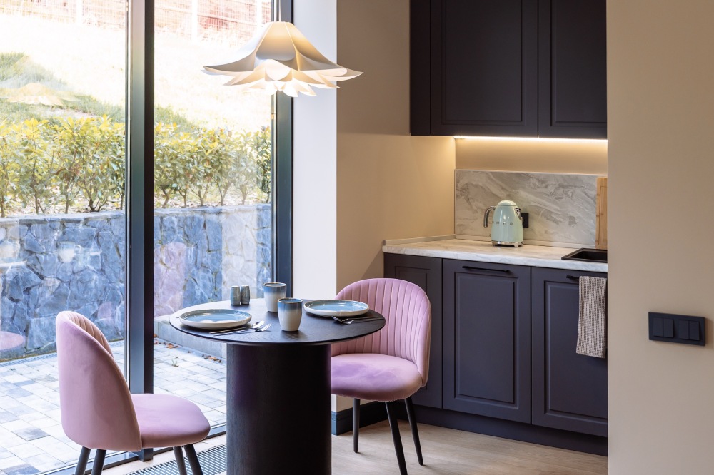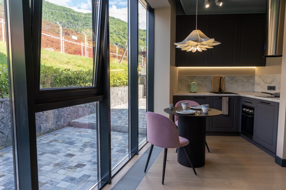 Апартаменты располагаются в Красной Поляне, неподалёку от центра города. Рядом с апартаментами — Горнолыжный курорт Красная поляна, Гора Мамдзышха и Смотровая башня горы Ахун.