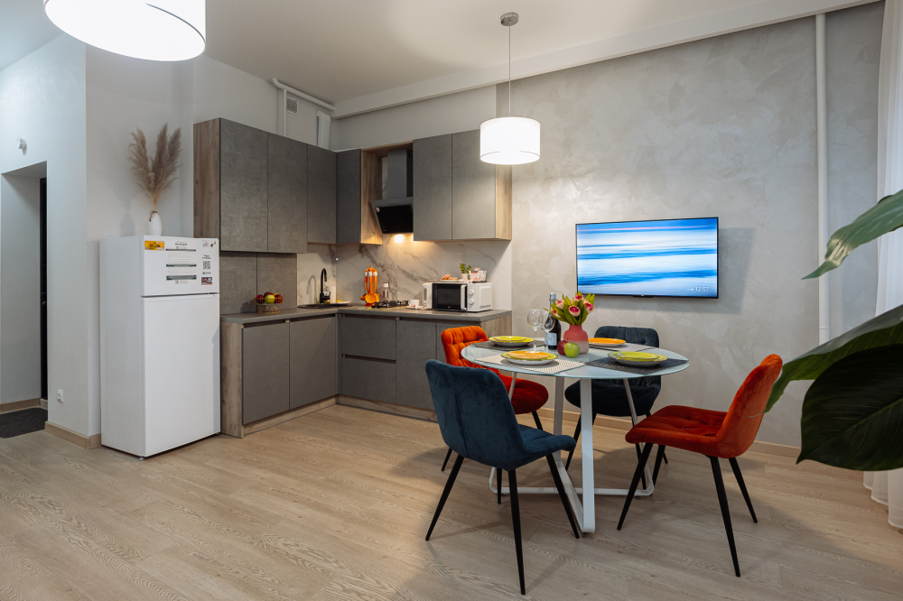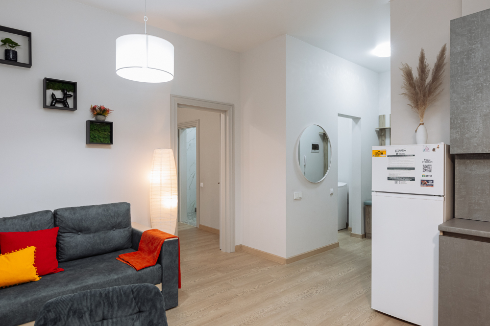 ️Евродвушка с современным ремонтом. Состоит из изолированной спальни + просторной кухни-гостиной. Площадь 48 кв. метров. 2 этаж. Элитный дом 2021 года постройки. ️Закрытая территория дома. Рыбная деревня - самый престижный и популярный туристический район Калининграда. Дом расположен на набережной реки Преголь, выйдя из которого, Вы сразу оказываетесь на променаде. Здесь Вы встретите множество кафе, ресторанов, сувенирных магазинчиков. В 5 минутах ходьбы находится парковая зона - Остров Канта с главной достопримечательностью города Кафедральный собор. В нем можно посетить музей Канта или послушать органную музыку. Этот район считается туристическим, т. к. именно отсюда отъезжают большинство экскурсионных автобусов. Рядом крупный супермаркет «Виктория», аптека через дорогу, а остановка общественного транспорта прямо у дома.