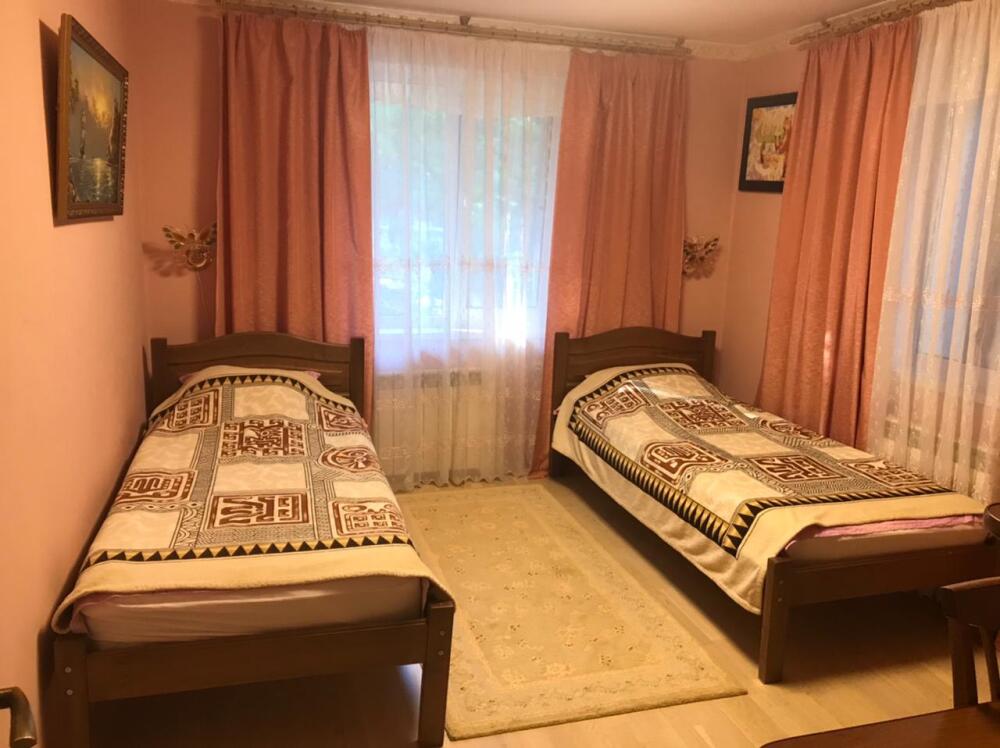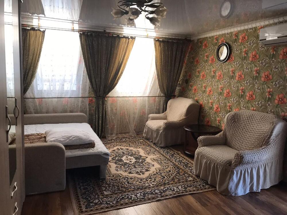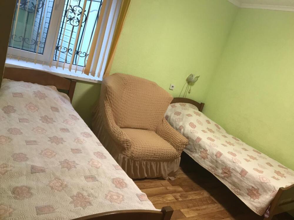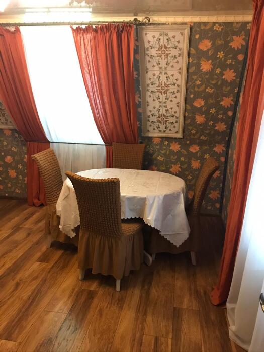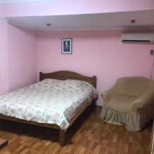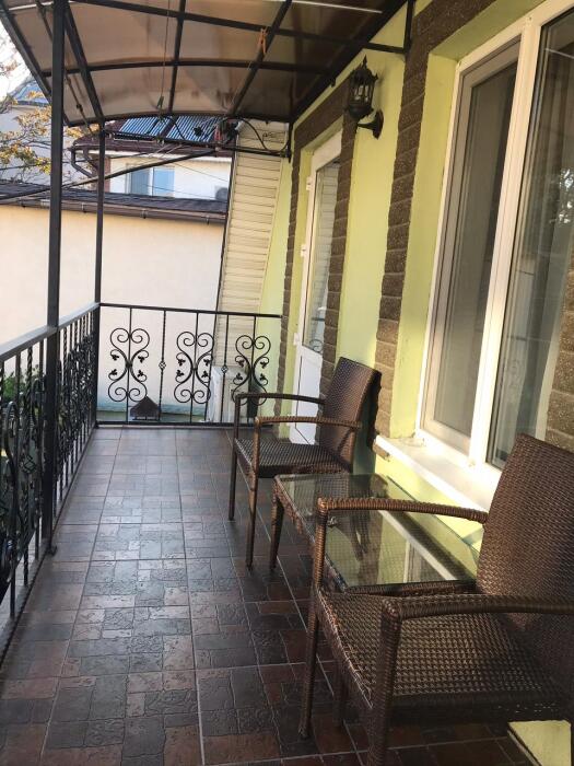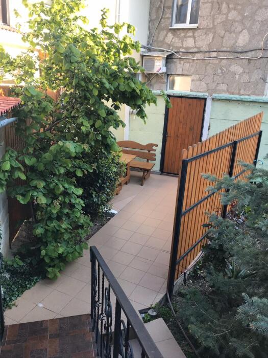 Дом состоит из трех этажей и трех двухкомнатных номеров. На каждый этаж - отдельный вход, дворик с беседкой и барбекю. В номерах свои кухни со всем необходимым, санузлы с горячей водой и стиральной машиной, спальни раздельные, кондиционирование, вся мебель новая, WI-FI бесплатно.