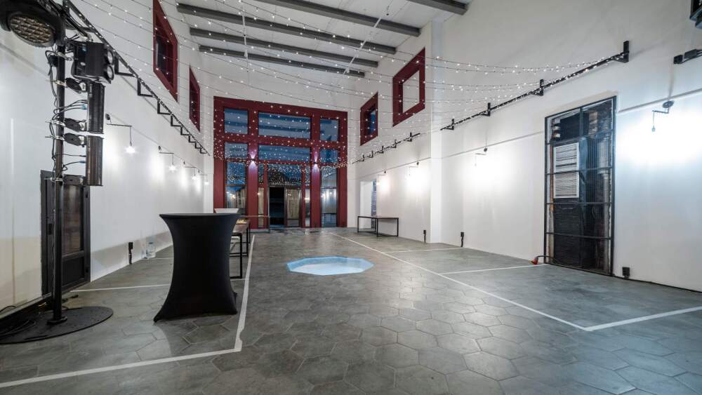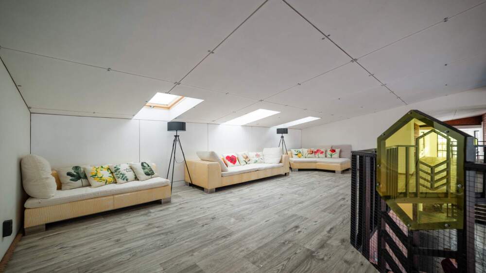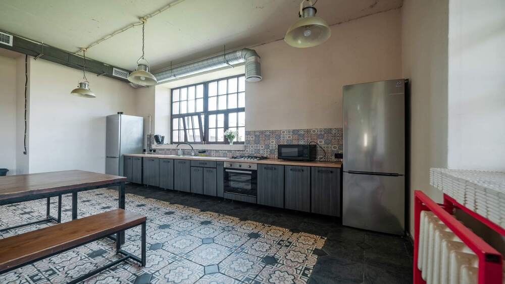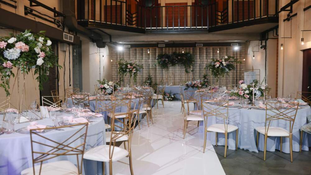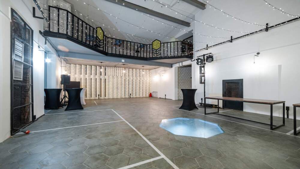 - Просторный банкетный зал вместимостью 80 человек в стиле loft с камином