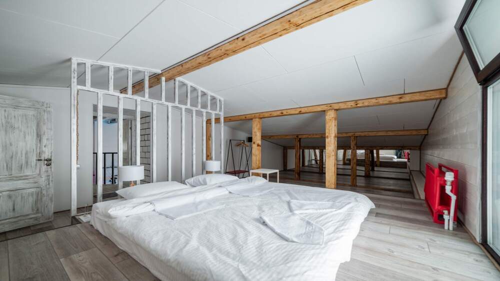 Лофт «Манчестер» — стильный коттедж площадью 900 кв. м на участке в 40 соток, идеально подходящий для частных мероприятий. Просторный банкетный зал вмещает до 80 человек, из его панорамных окон открывается вид на собственный водоем и зеленую территорию. Цокольный этаж - это целый мир для Ваших развлечений: бар и ночной клуб с премиальной акустикой, бассейн с водным баром, бильярд, настольный теннис. Уютная крытая беседка может служить летним рестораном для 100 человек, а на берегу собственного пруда расположена площадка для выездной регистрации. В коттедже 10 комфортабельных спален для 23 гостей.