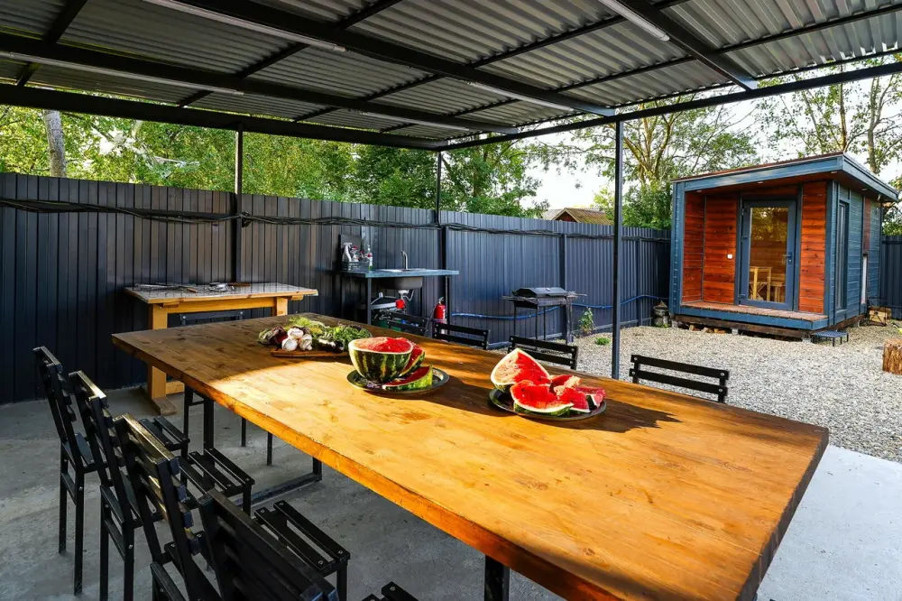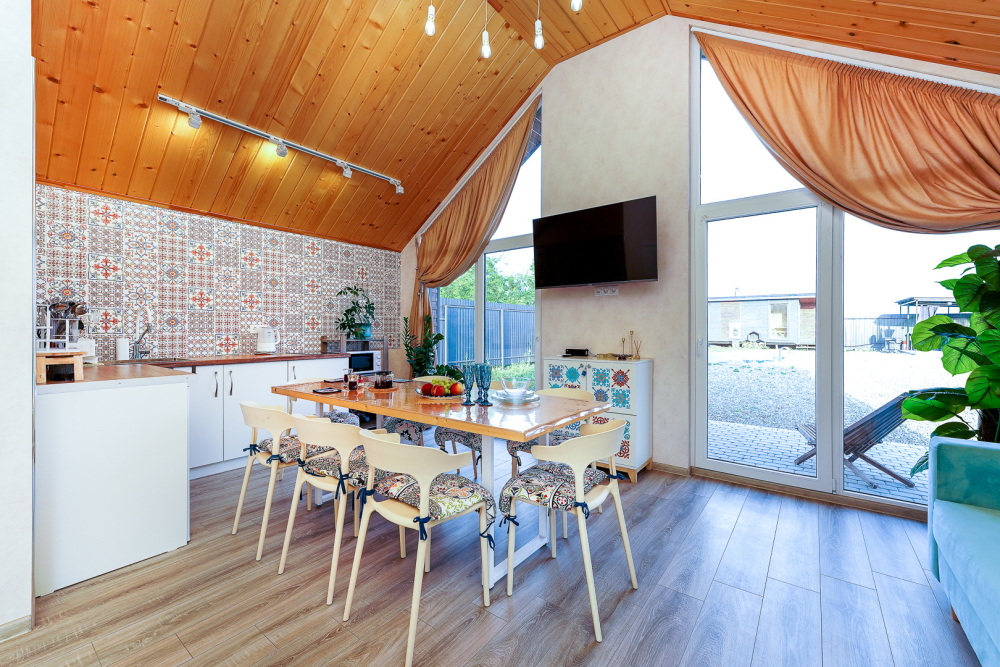 Коттедж оснащён двуспальной кроватью, раскладным диваном, Wi-Fi, телевизором, оборудованной кухней с обеденной зоной и санузлом.