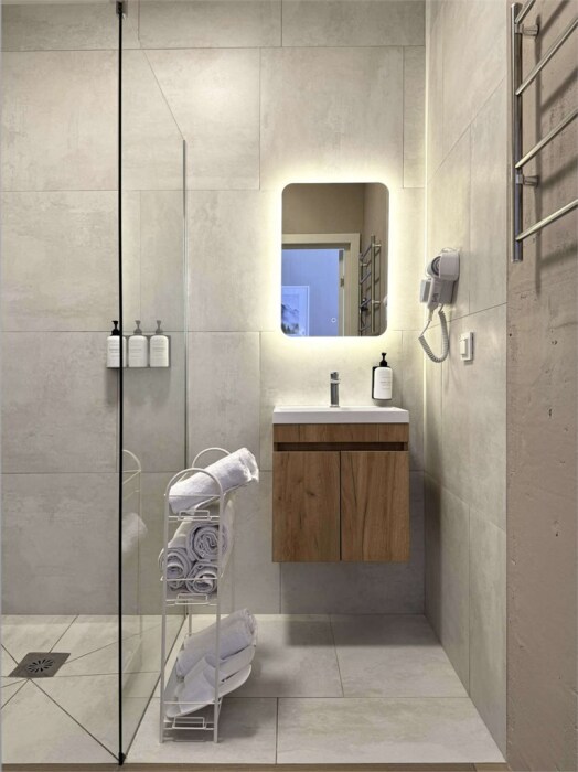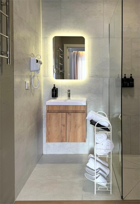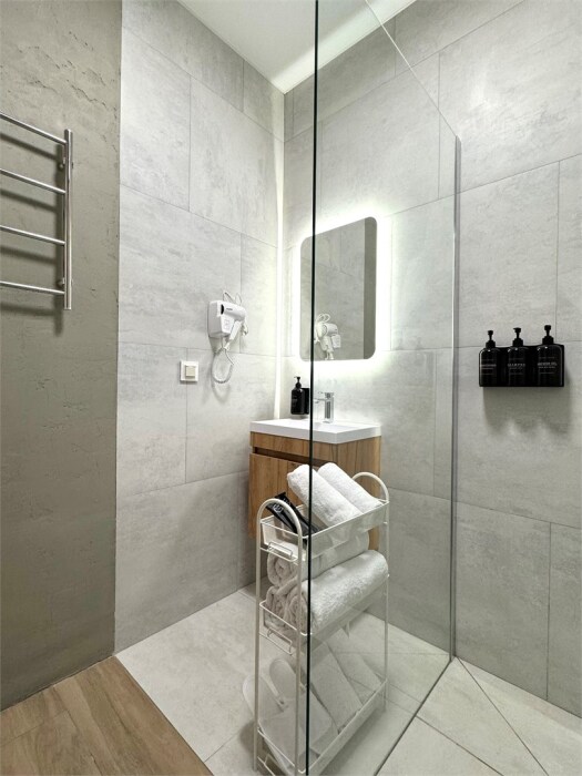 Классический апартамент студия. Включает в себя кухонную зону, гостиную, спальню, ванную комнату, балкон. Отдельный вход в номер.