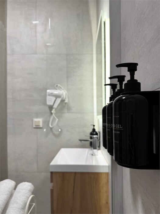 Гостям представлено 5 уютных номеров с отдельными входами. В каждом номере большая двуспальная кровать, укомплектованная кухня, диван с дополнительными местами для гостей, собственный санузел. Также есть телевизор, электрическая плита, чайник, микроволновая печь, фен, постельное бельё, полотенца.