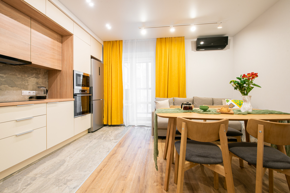 - Современные удобства: Wi-Fi, Smart TV, кондиционер, утюг, фен и стиральная машина.