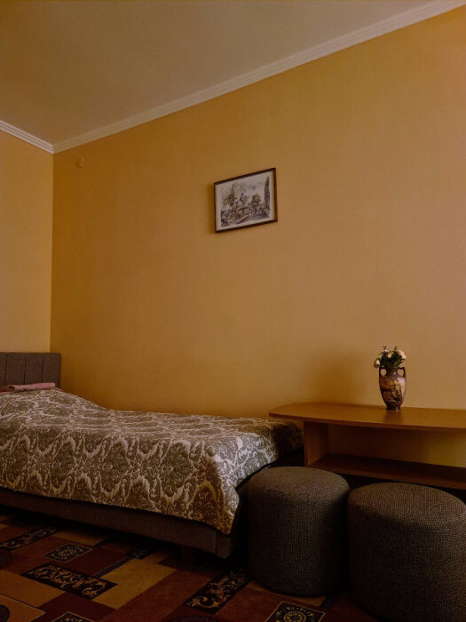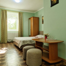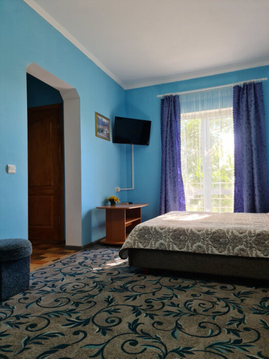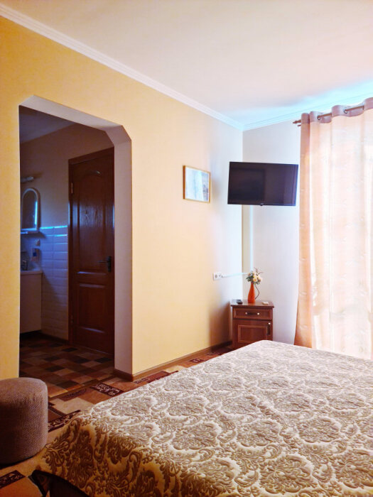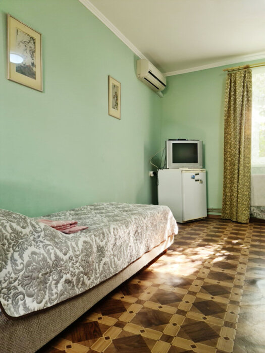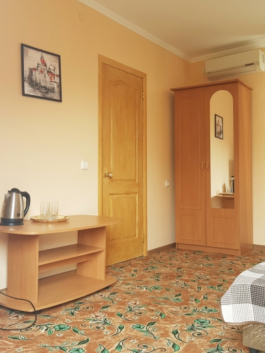 Просторный уютный номер с двуспальной кроватью и небольшим диваном, постельным бельём и полотенцами, оборудованный всем необходимым для комфортного пребывания 1-2 человек, включая холодильник, кондиционер, кабельное телевидение, бесплатный WiFi и собственный санузел с душевой кабиной. В номерах 2-го и 3-го этажей имеются балконы с видом на море и окружающие горы.