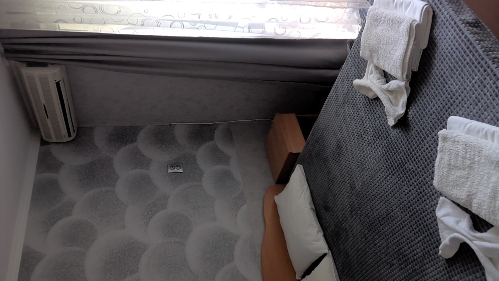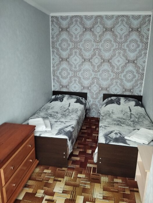 В одной комнате 2-х спальная кровать, в другой две раздельные.
