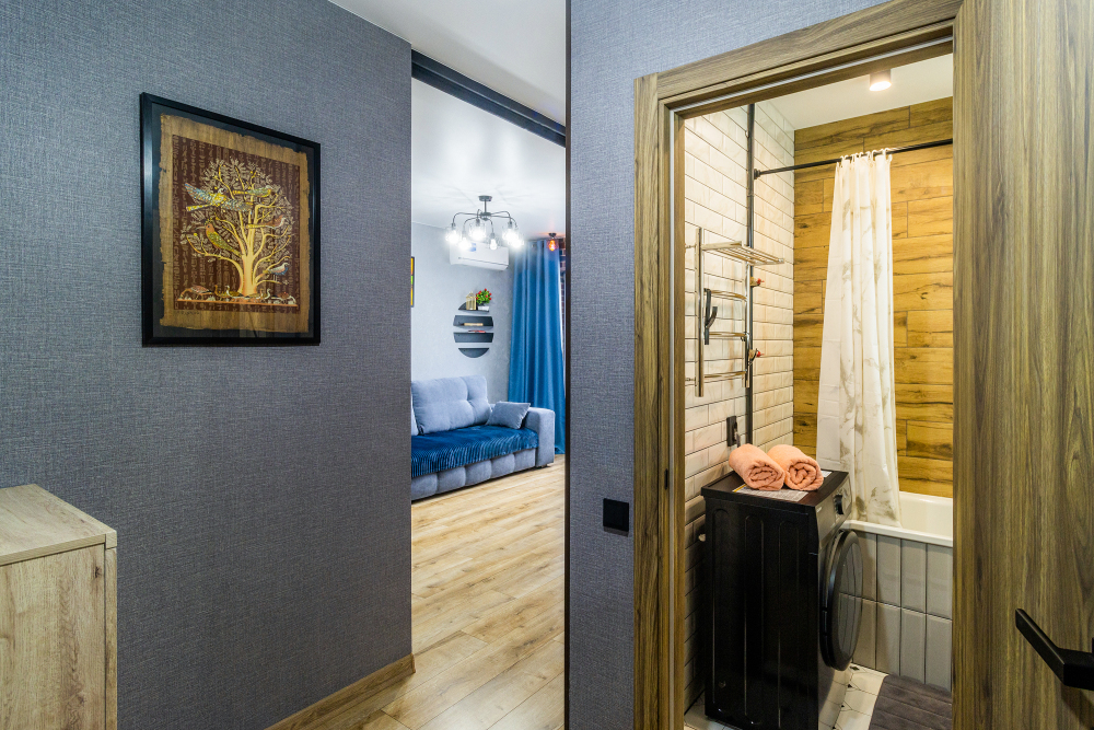 - стиральная машина, микроволновая печь, эл.чайник, мини-холодильник, Смарт-ТВ, фен, утюг, гладильная доска, сушилка для белья, вся необходимая посуда, Wi-fi.