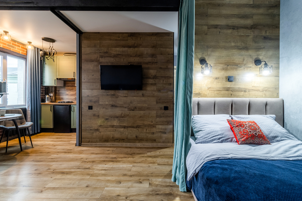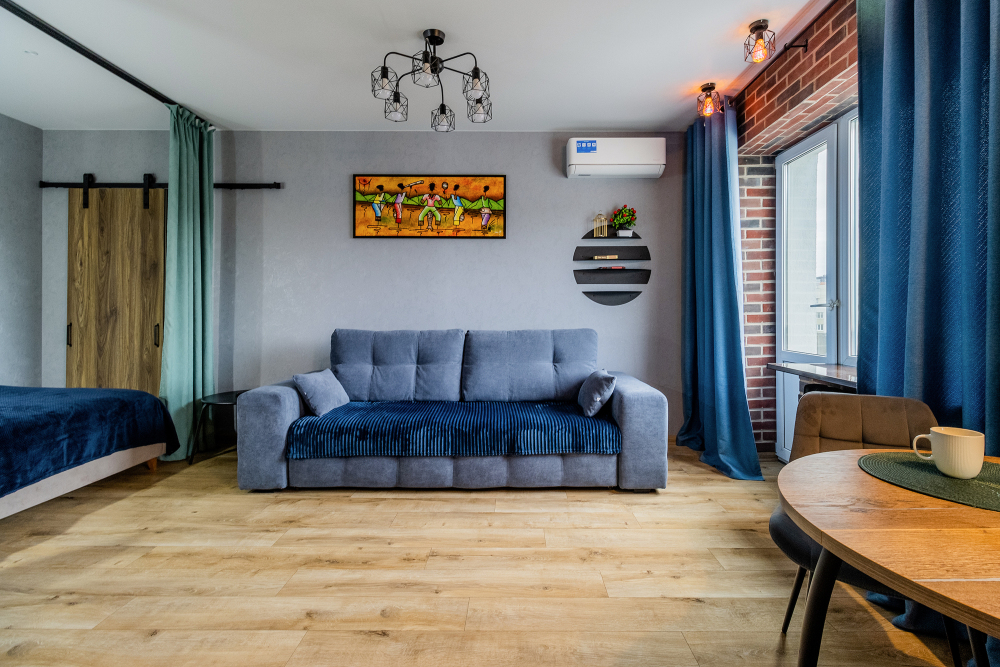 Квартира-студия со свежим ремонтом в стиле Лофт с кондиционером, на 7 этаже (лифт есть) кирпичного дома с балконом.