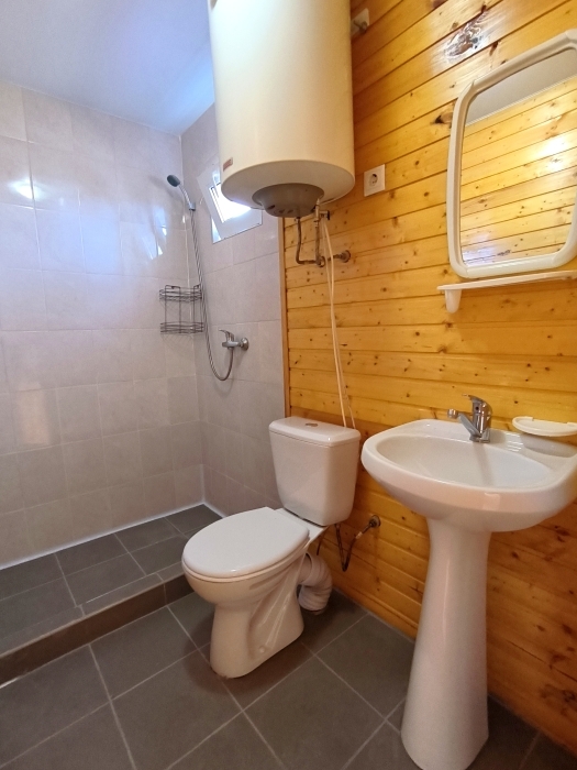 На общей кухне есть СВЧ-печь, чайник, посуда, холодильник. Обеденная зона находится на улице. Пообедать можно в кафе «Грузинский дворик».