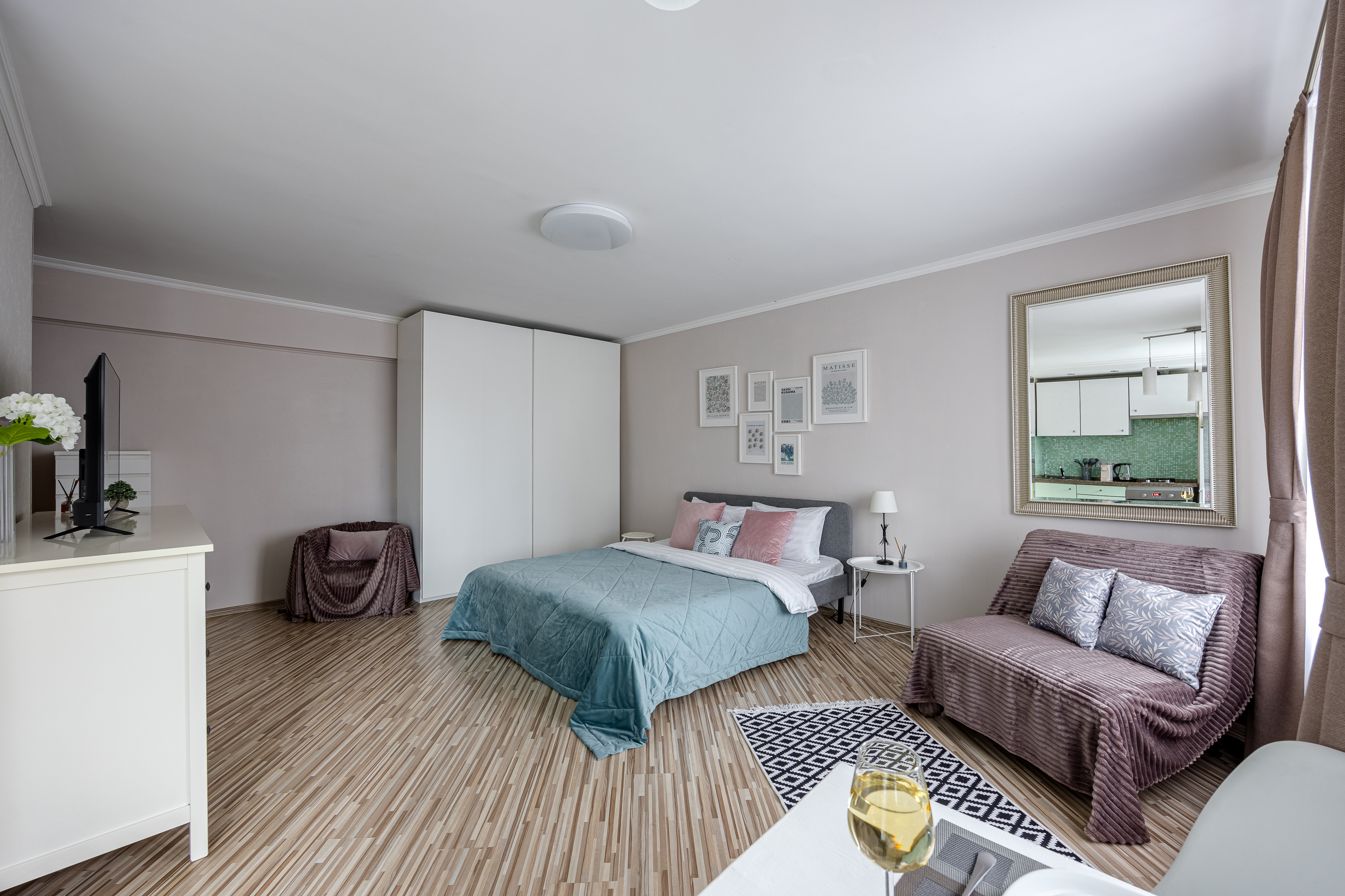 - полностью укомплектованная кухня с микроволновой печью и посудой- Wi-Fi, смарт ТВ, Kion онлайн кинотеатр.