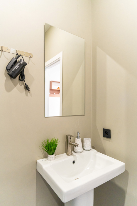 - Техника: Wi-Fi (100 Мбит/с), SMART-TV, стиральная машинка, кондиционер.
