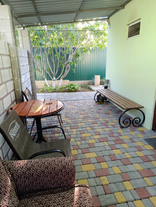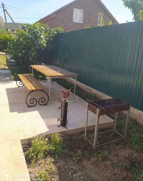 На кухне есть вся необходимая посуда. Во дворе имеется навес, мангал для приготовления шашлыка. Есть парковка для авто.
