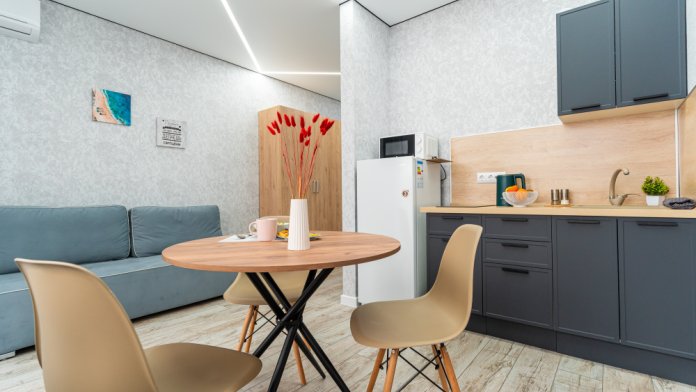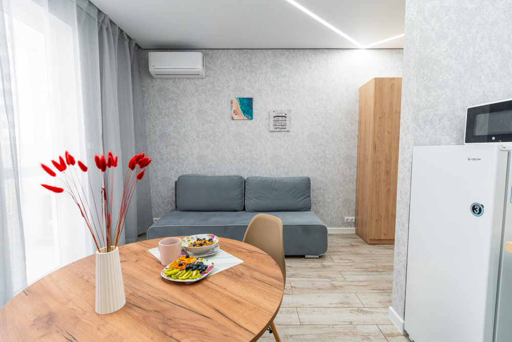 Уютная студия в Новороссийске с дизайнерским ремонтом и видом на море.