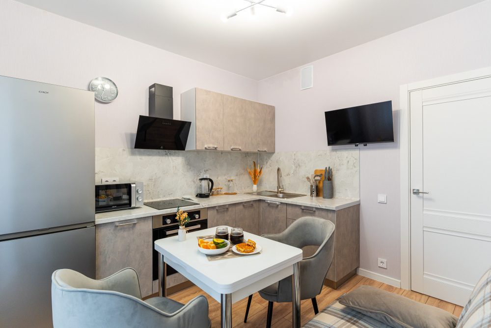 - Техника: Wi-Fi (100 Мбит/с), SMART-TV, стиралка, микроволновка, кондиционер.