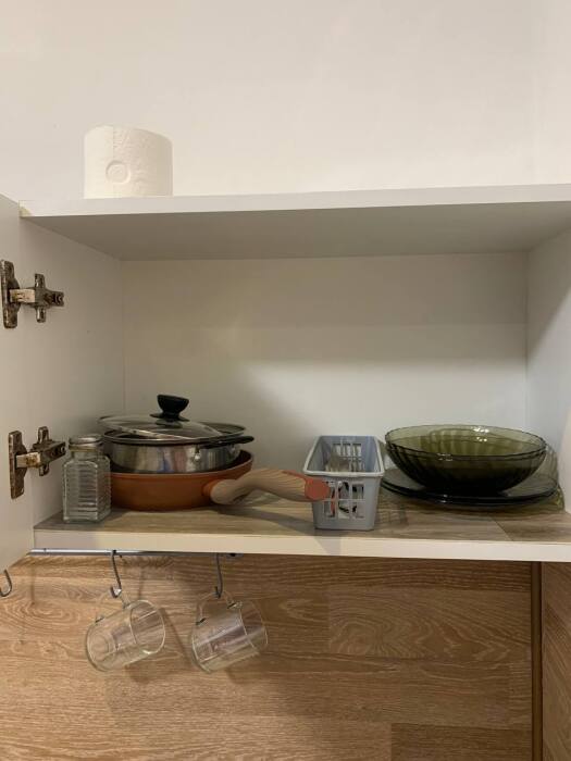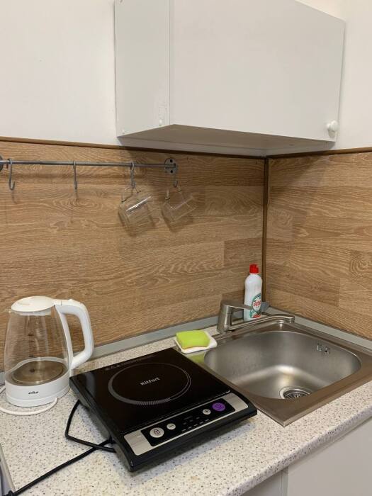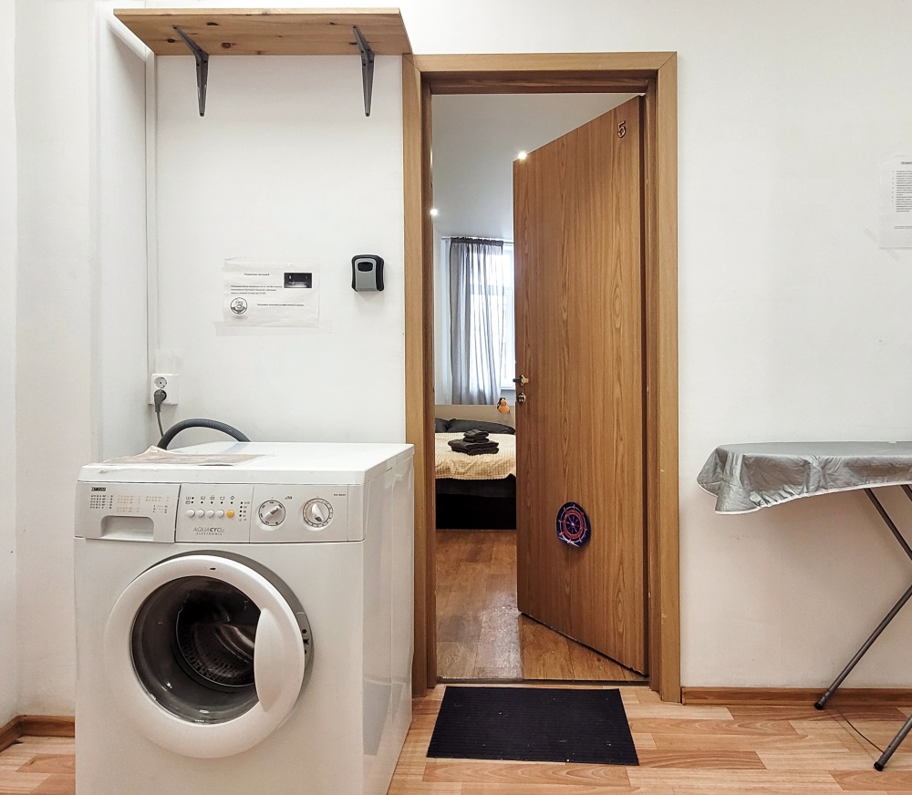 Есть всё необходимое в общем доступе вай-фай, холодильник, телевизор, плитка, посуда, постельное, микроволновка, утюг, стиральная машинка.