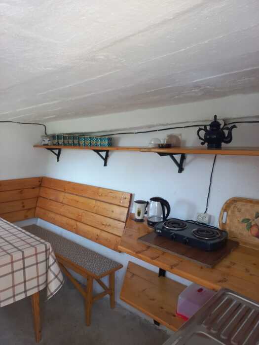 Удобное расположение, недалеко от берега черного моря (400 метров) и при этом всего в 5 минутах езды от центра курорта Новый Афон.
