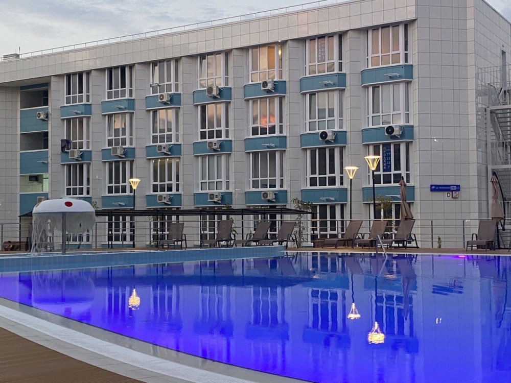 Современные апартаменты свободной планировки в комплексе «Адмиральская Лагуна» находящейся на первой линии от моря (20 м). На территории комплекса и пляжа имеются: спортивная площадка, тренажёрная зона, кафе, пляжные души и туалеты бесплатно, детская площадка, по выходным дням (суббота, воскресенье) с детьми работают аниматоры (бесплатно). Пляж состоит из двух зон галечная для купания и песчаная с теневыми завесами для комфортного отдыха с детьми. На территории пляжа работают кафетерии, фаст-фуд, столовая (в режиме завтрак-обед). Территория комплекса закрытая и охраняемая круглосуточно. Парковка на территории бесплатная. В пешей доступности соседние пляжи «Омега» и «Андрея Первозванного». Для пеших прогулок поблизости «Динопарк», парк Победы с цветными фонтанами, аквапарк, дельфинарий, променад по морской набережной двух бухт.