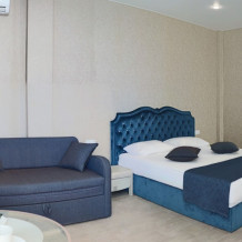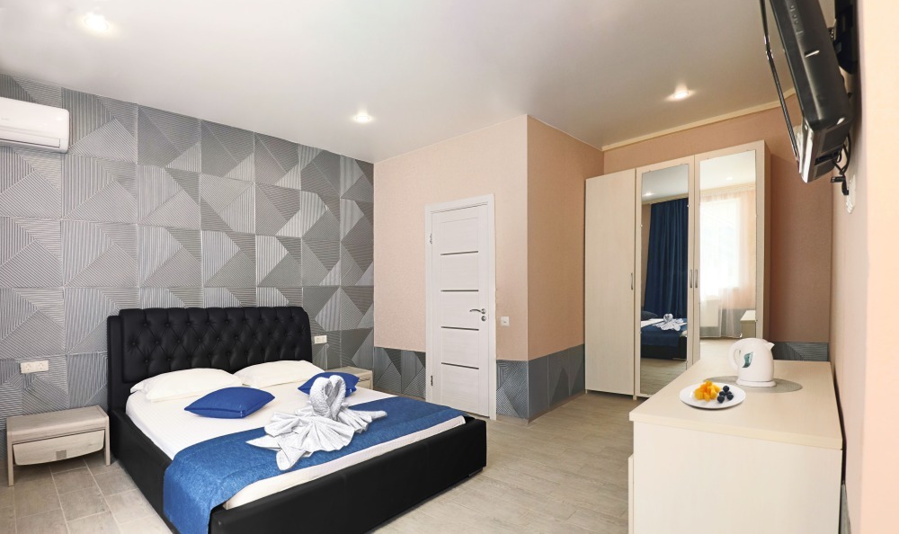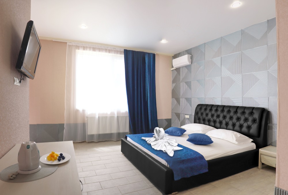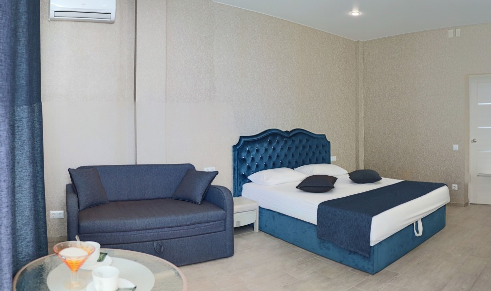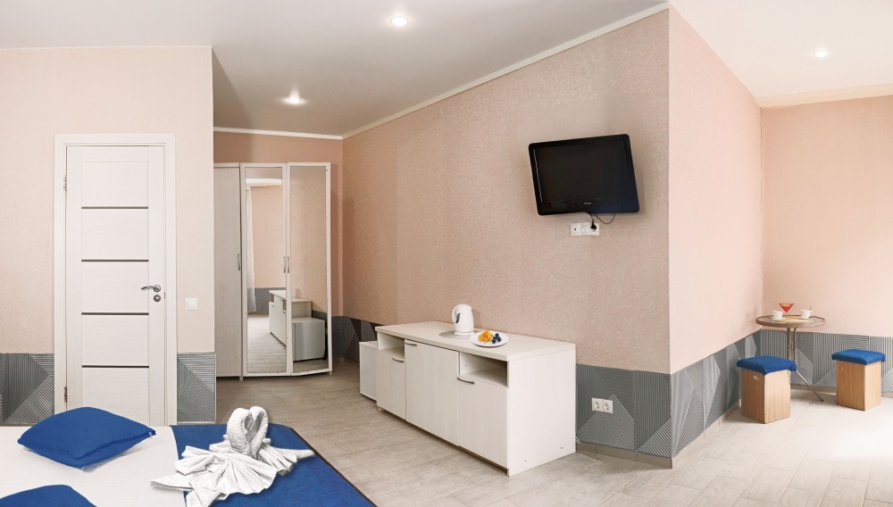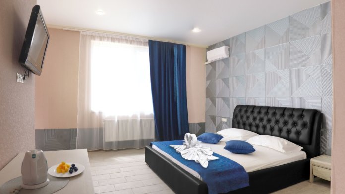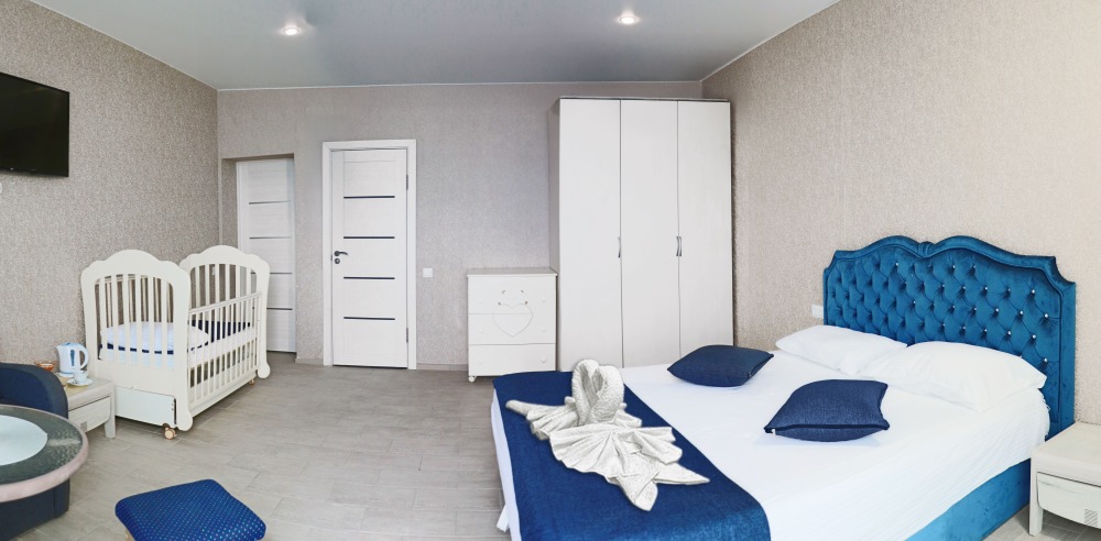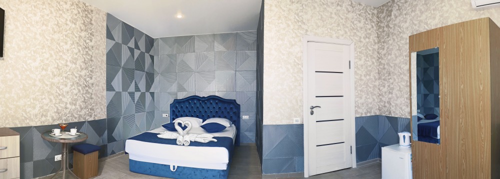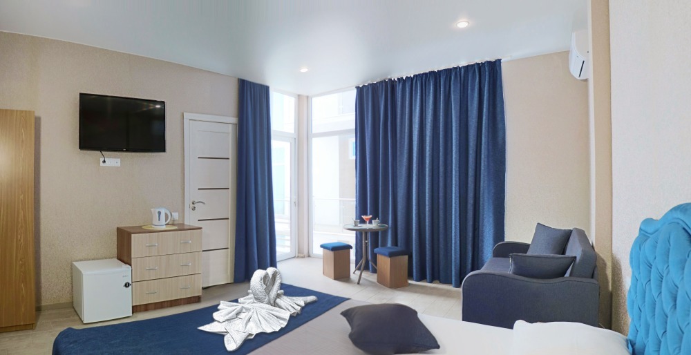 Номера оборудованы просторными кроватями King Size с ортопедическими матрасами Ormatek и люксовым постельным бельём, сейфами, плазменными телевизорами, кондиционерами, мини-холодильниками, чайными наборами, фенами, полотенцами, тапочками и туалетными принадлежностями. В семейных номерах - удобные диваны для дополнительных спальных мест.