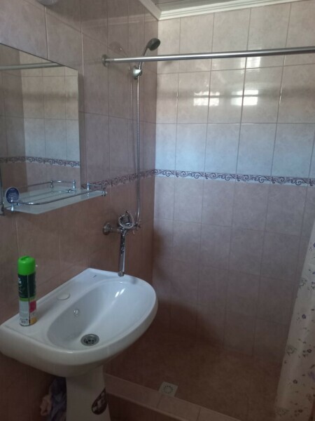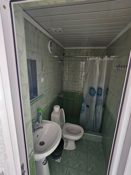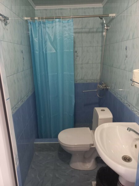 Общая ванная комната: душ, раковина, туалет.