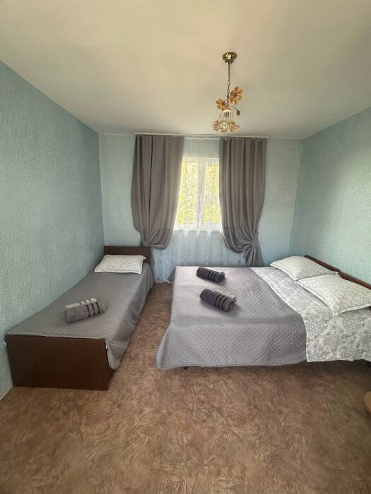 В номере: 1 двуспальная и 2 односпальные кровати.