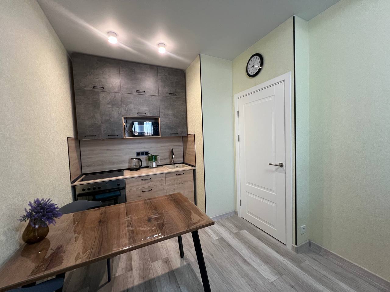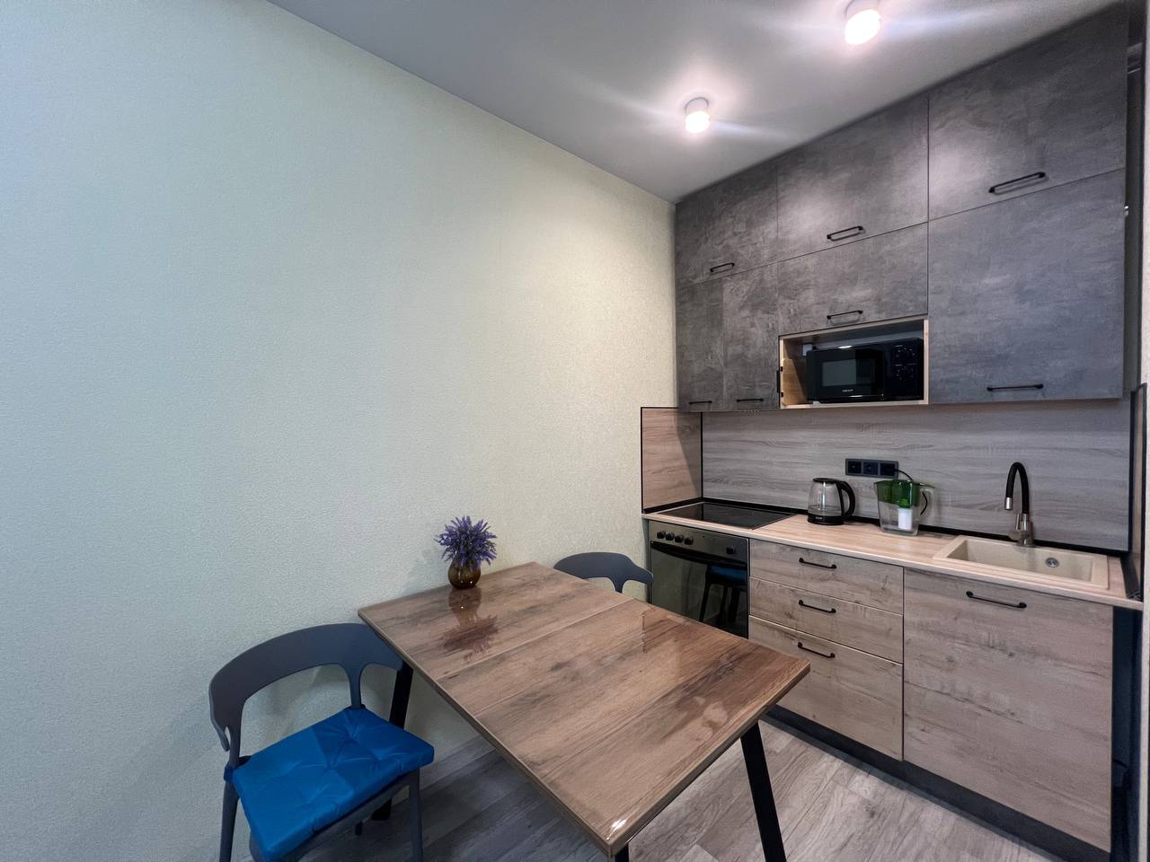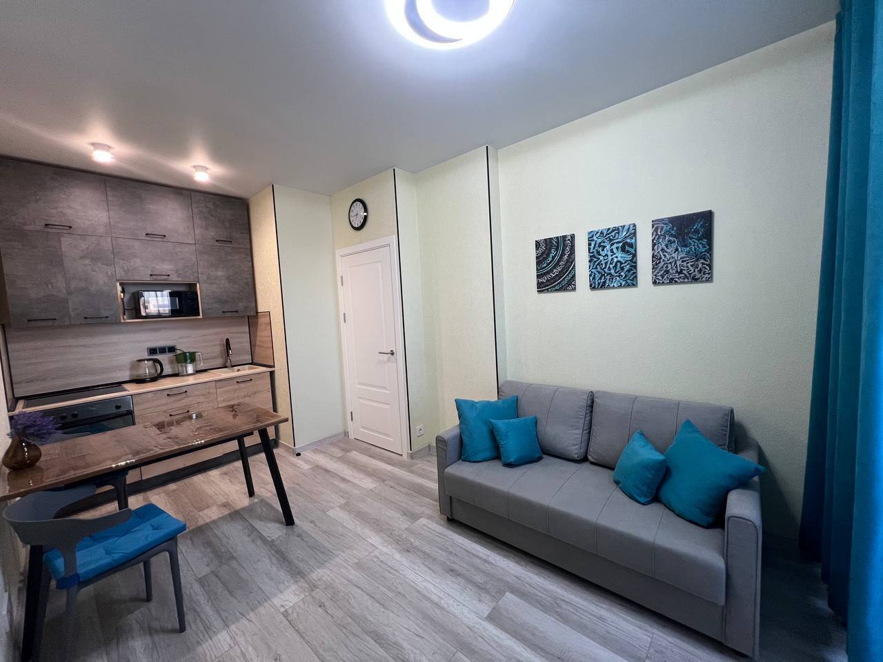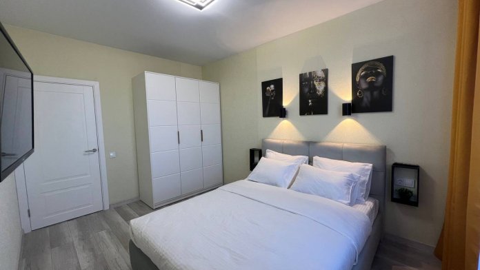 В квартире есть все необходимое: двухспальная кровать, диван, кухонный гарнитур, плита, микроволновка, чайник, стиральная машина, телевизор, шкаф, обеденная зона, гладильные принадлежности, Wi-Fi. Предоставляются туалетно-косметические принадлежности.